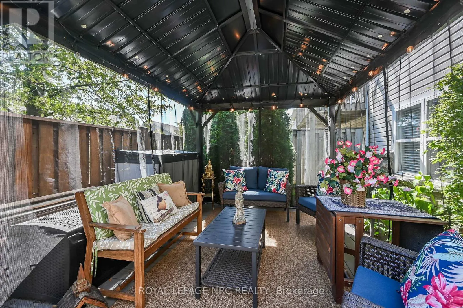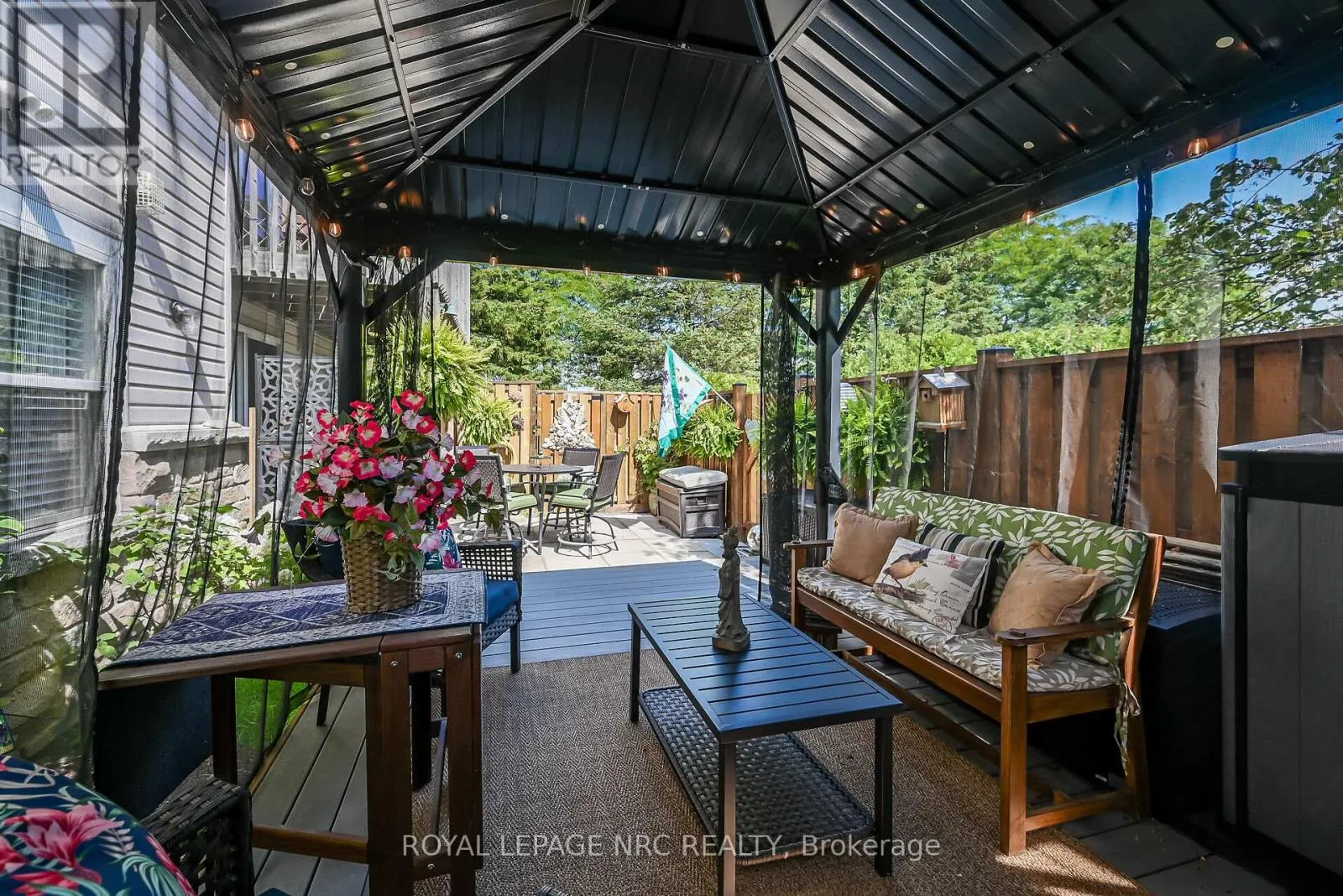 Cross Streets: Golf Links Road. ** Directions: South off of Golf Links Road. This pristine end-unit bungalow townhome with a fully finished walk-out lower level is located in the desirable Meadowlands community of Ancaster. The property offers about 2,000 sqft of meticulously finished living space across both levels. Recent upgrades total over $50,000. The main floor features 9-ft ceilings, refined crown molding, and an inviting open concept design. There are 3 bedrooms, 2 full bathrooms, and main floor laundry near the bedrooms. The modern kitchen is equipped with upgraded cabinetry, a double sink with garburator, luxury vinyl plank flooring, quartz countertops, premium stainless-steel appliances, and a comfortable breakfast nook. The spacious dining area seats six and transitions seamlessly into the living room with patio doors accessing a balcony. The primary bedroom features ensuite privileges and a walk-in closet. The professionally finished basement includes a generous family room with patio door access to a fenced rear yard featuring vibrant gardens, patio, deck and gazebo, plus there is a gas barbecue hook-up. An additional bonus room provides versatile space for a craft room, workout area, or has potential for a future 2nd kitchen. A 3rd bedroom, home office area, coffee bar, and 3-piece bathroom complete the lower level and offer excellent accommodations for guests. Additional amenities include a private driveway, an attached garage with interior access, and ample visitor parking. Extras include enhanced wood trim, hardwood flooring in the living and dining rooms and hallways, updated carpeting in bedrooms, premium California shutters, a new high-efficiency furnace and water heater, central air, and newly installed shower and bathroom fixtures. The Condo Fee covers road maintenance, lawn care, and snow removal. Situated close to highway access, a golf course, restaurants, and amenities such as Costco and the movie theatre. This home blends comfort, style, and convenience. Ideal for people seeking a low maintenance lifestyle. (id:27476)