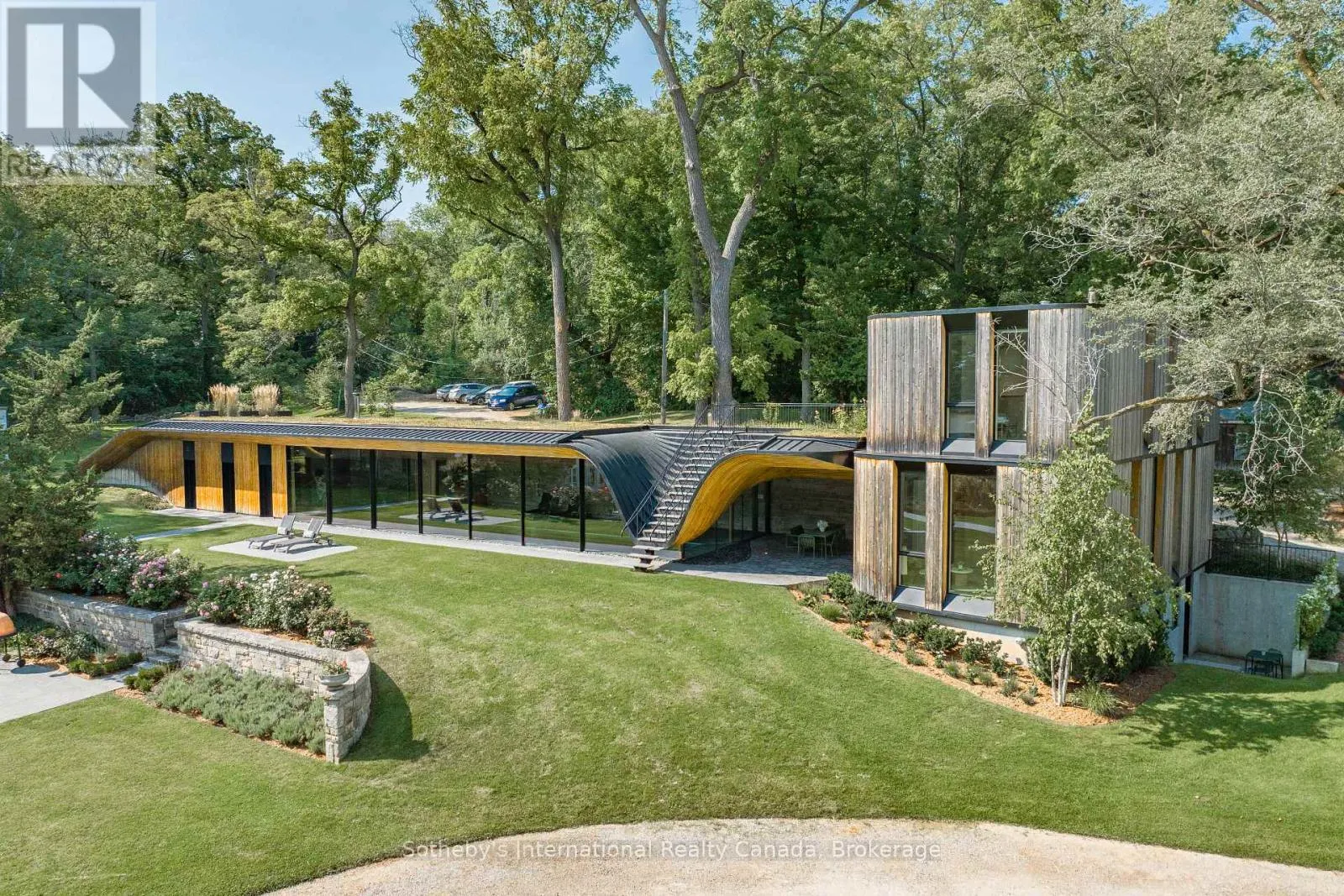 Cross Streets: Hwy 8 & Hillcrest Ave. ** Directions: From Hwy 5, S. on Brock Rd, E. at Springhill St. Nestled where history gracefully intertwines with modern elegance, this exceptional estate invites you to experience unparalleled luxury. Set against ancient trees & expansive views at nearly 2800 feet on the escarpment, this property transcends mere residence- it is a sanctuary. The main house, originally constructed C1830, boasts over 8,000 square feet of refined living space. A harmonious blend of history & contemporary design, it features a luxurious kitchen crafted by John Tong & a glass extension overlooking serene Zen gardens. Each grand principal room is bathed in natural light, offering breathtaking vistas, including a main floor bedroom & ensuite. Ascend to the second floor, where five elegantly appointed bedrooms & three exquisite baths await, along w/views from the iconic tower. The primary suite occupies its own wing, complete with a private sitting room, generous walk-in closet & lavish five-piece ensuite, all separated by custom solid wood sliding doors for ultimate privacy. The tower's third floor culminates in an unparalleled observation point with extraordinary views. Immerse yourself in the tranquility of the Japanese-inspired Zen garden, the restorative beauty of the escarpment & the calming presence of the spa & pool house, a state-of-the-art design, by Partisans, with sliding glass doors that open to bring nature in, a stunning state of the art 3 story guest house, complete with its own living/dining/kitchen, 3 bdrms, 4 baths & laundry. There's the historic barn, a four-car coach house with a charming one bedroom residence above, complete with full bath, kitchen & laundry, green house, gardens, Bunky & more. This estate is not just a home; it is an invitation to disconnect, reflect & rejuvenate in an exquisite setting where luxury & history converge. This property offers opportunities for a family retreat, rental investment, or filming income, as it is renowned in the film industry for its stunning backdrops. So many possibilities await you. (id:27476)