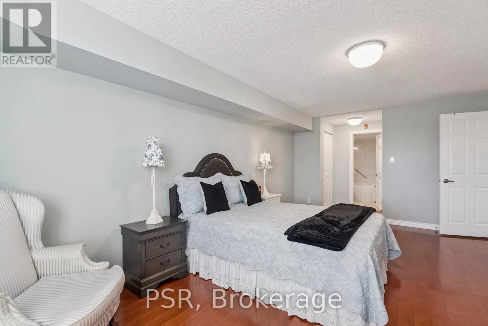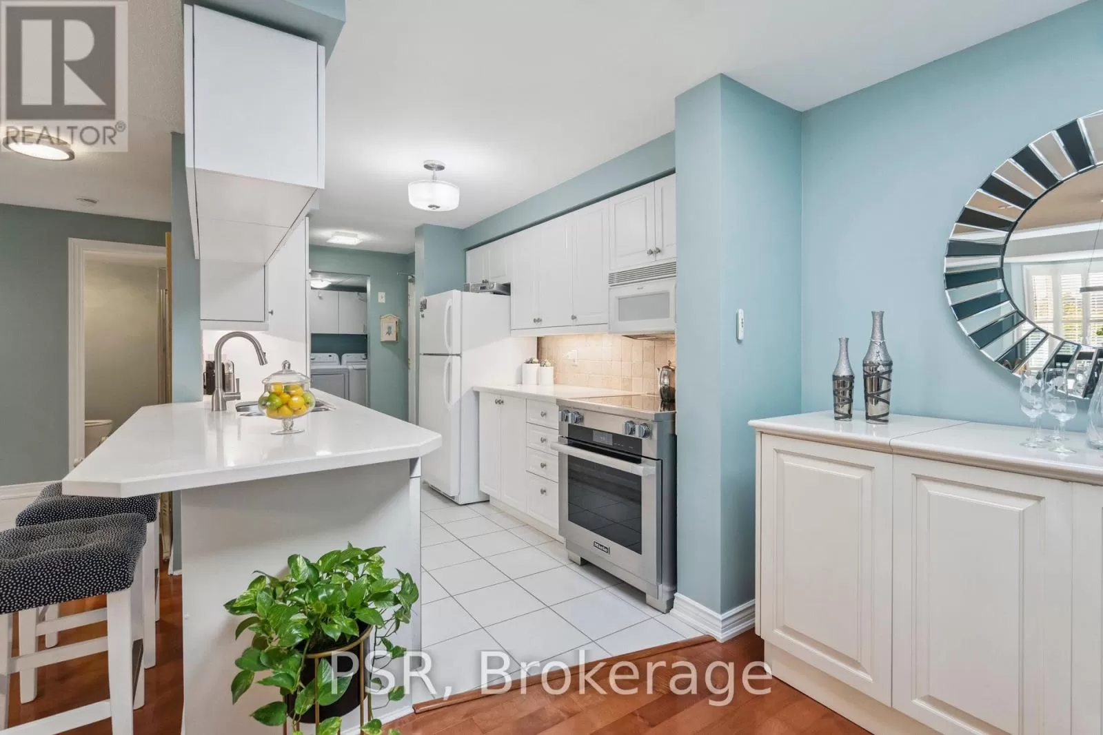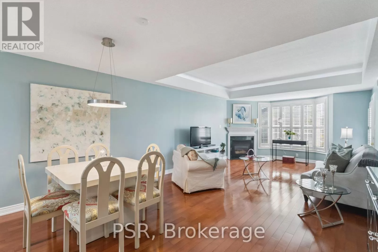 Cross Streets: Golf Links and Cloverleaf. ** Directions: Golf Links Blvd to Cloverleaf Dr, first right off Cloverleaf. Discover this beautifully maintained 2-bedroom, 2-bathroom condo in one of Ancasters most desirable communities. This top-floor suite is flooded with natural light and offers a bright, open-concept layout perfect for both everyday living and entertaining.The living and dining area features a cozy fireplace and coffered ceiling with hidden lighting, while the kitchen is enhanced with quartz countertops, refaced cabinetry, and a remote-controlled skylight. Newer hardwood flooring runs throughout the main spaces, complemented by ceramic tile in the foyer, kitchen, and bathrooms.The spacious primary suite boasts a large soaker tub and excellent storage. Additional highlights include in-suite laundry, ample closet space, a private balcony overlooking the courtyard, locker, and underground parking.Residents enjoy outstanding amenities: a library and meeting room, visitor and underground parking, car wash station, and workshop. All this just steps to shopping, dining, and entertainment, with easy access to the Linc and Highway 403. (id:27476)