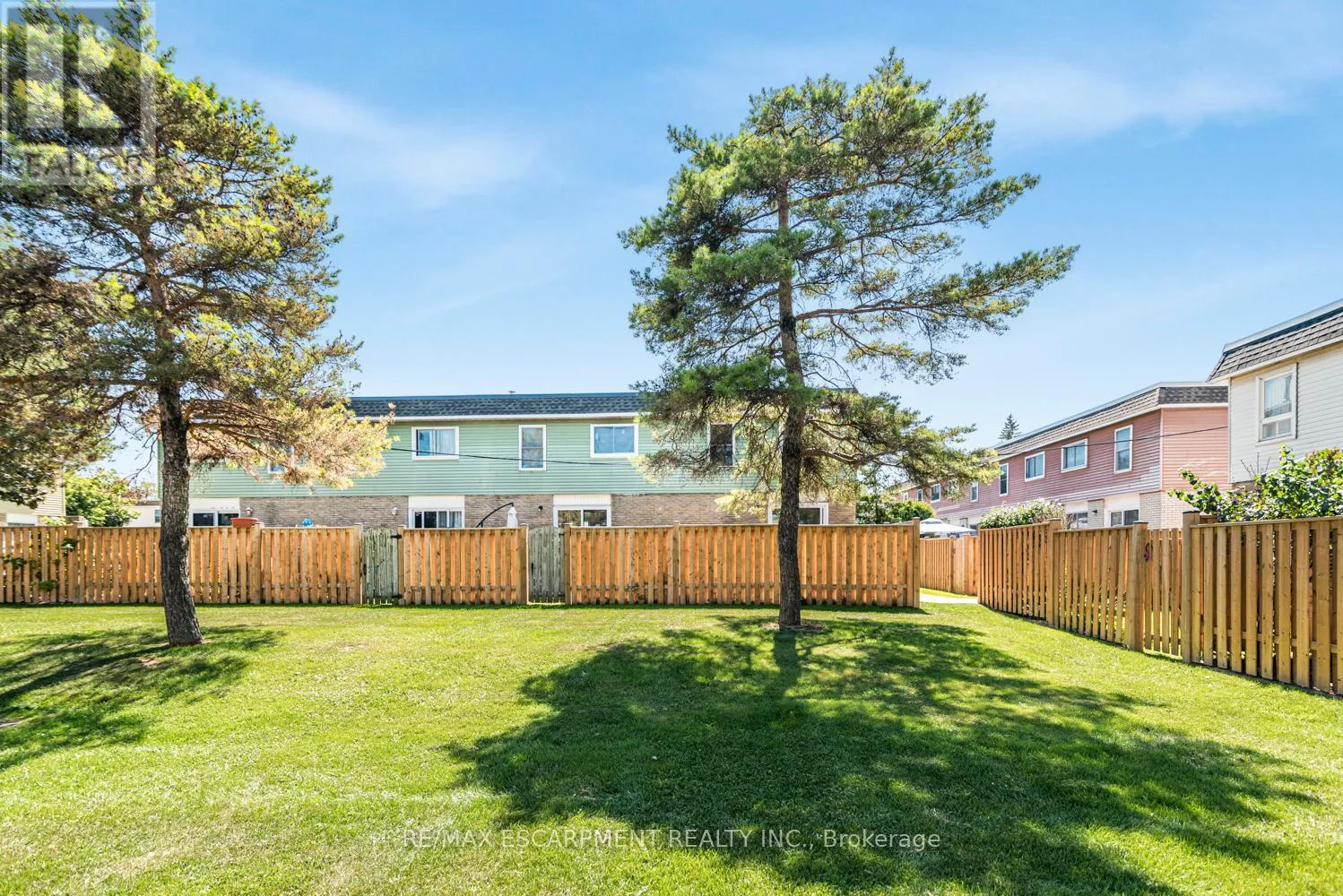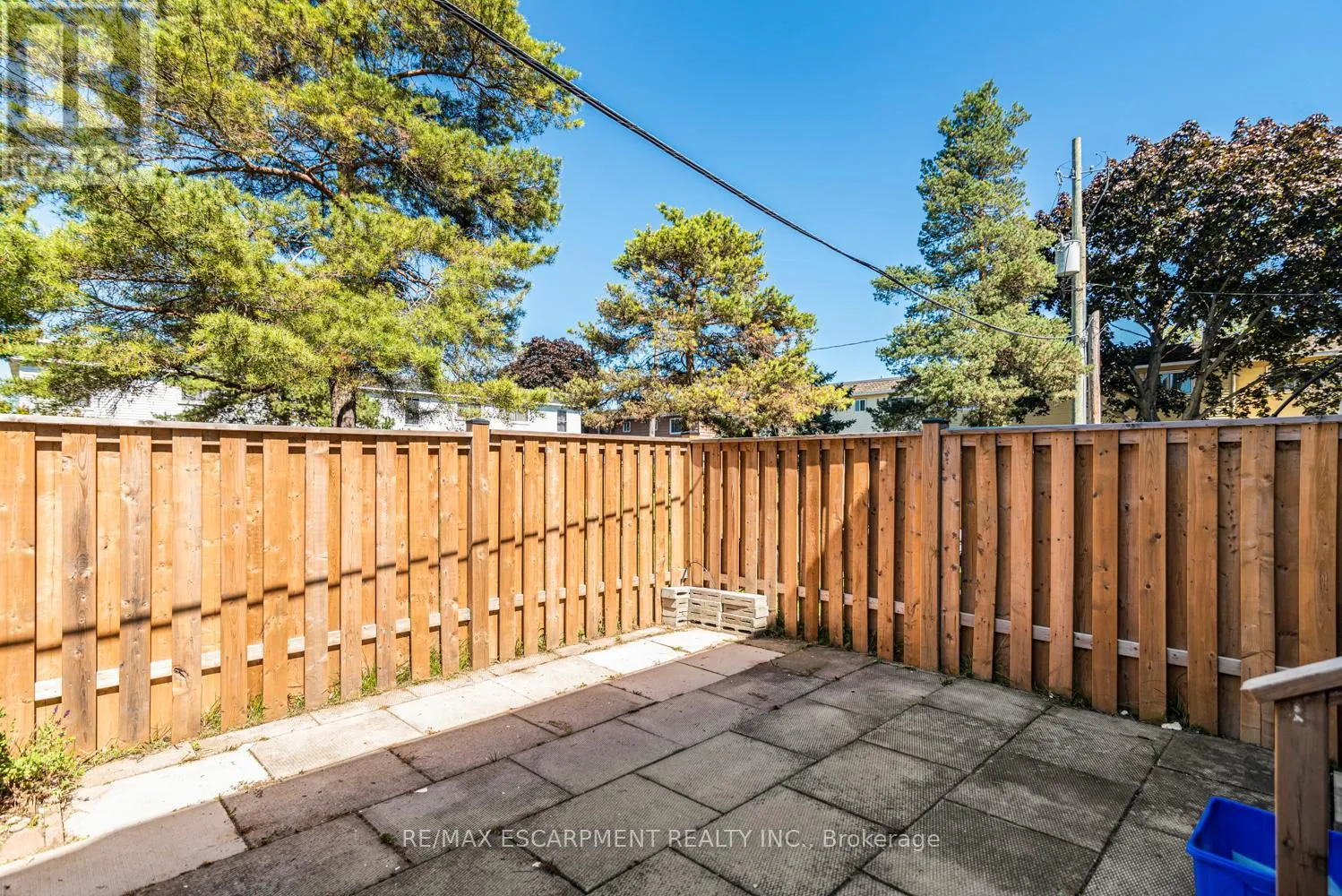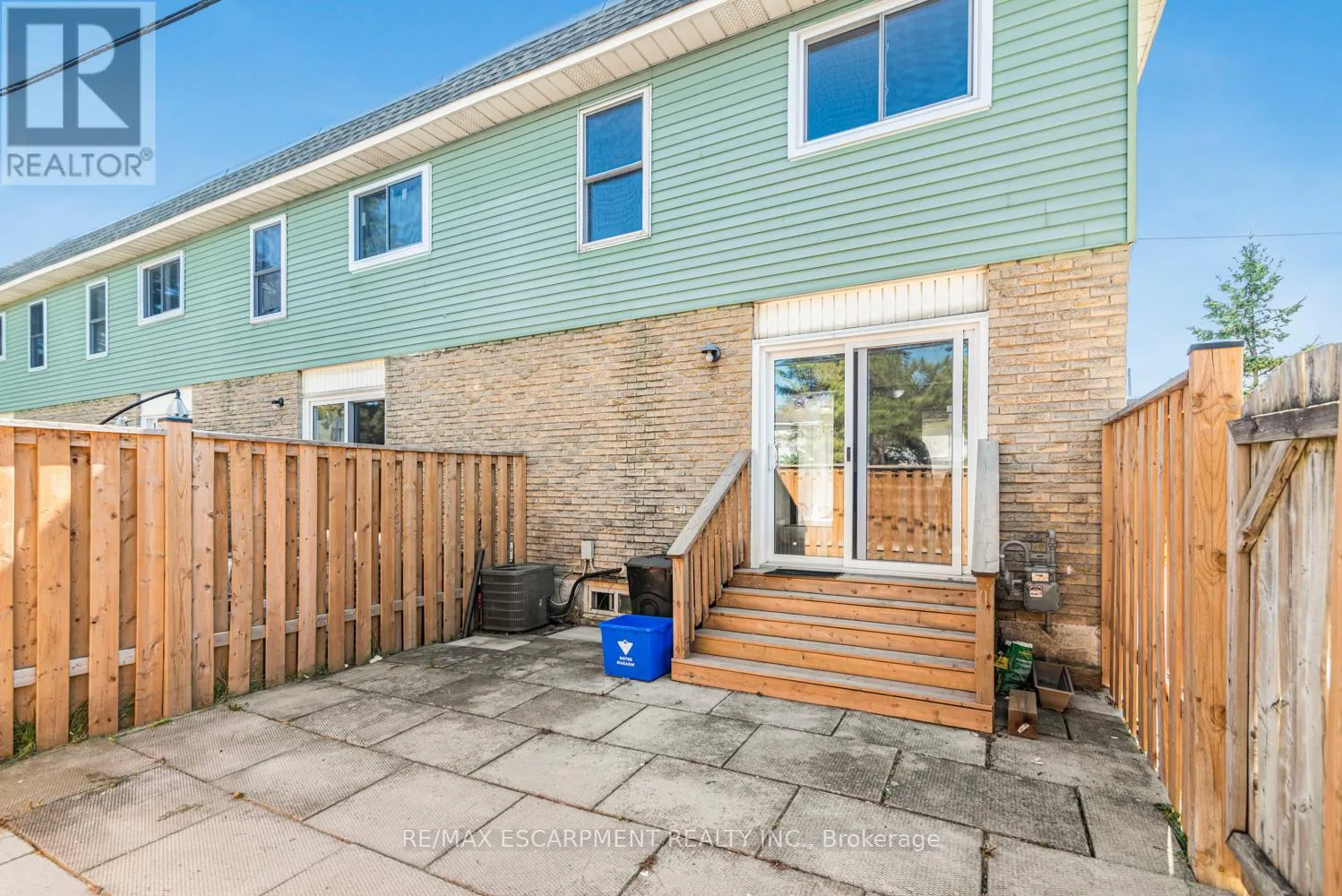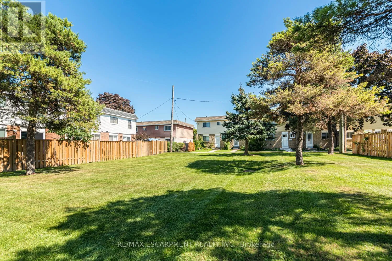 Upper Wellington St Affordable and ideally located, total 4 bedroom units (1 At basement), this central mountain townhome is tucked away from traffic and directly across from a large park - perfect for families! Enjoy low condo fees which includes water bills, in a quiet, family-friendly neighbourhood with convenient access to highways and public transit. Inside, youll find a spacious four-bedroom, 1.5-bath layout featuring a large, updated kitchen with plenty of cabinet storage and counter space. The separate dining room flows into a generous living room with sliding glass doors leading to a private, fenced backyard - ideal for relaxing or entertaining. Upstairs, you'll find a spotless full bathroom and three well-sized bedrooms, each with ample closet space. The finished basement offers great potential with, media room, or even a home office and a bedroom. Whether you're a first-time buyer, investor, or a family seeking a well-located home near great amenities, this property checks all the boxes. Ample parkings, few minutes to highway, Limeridge Mall Kitchen in 2022, backyard 2022, backyard fence 2024, main level floor 2022. (id:27476)