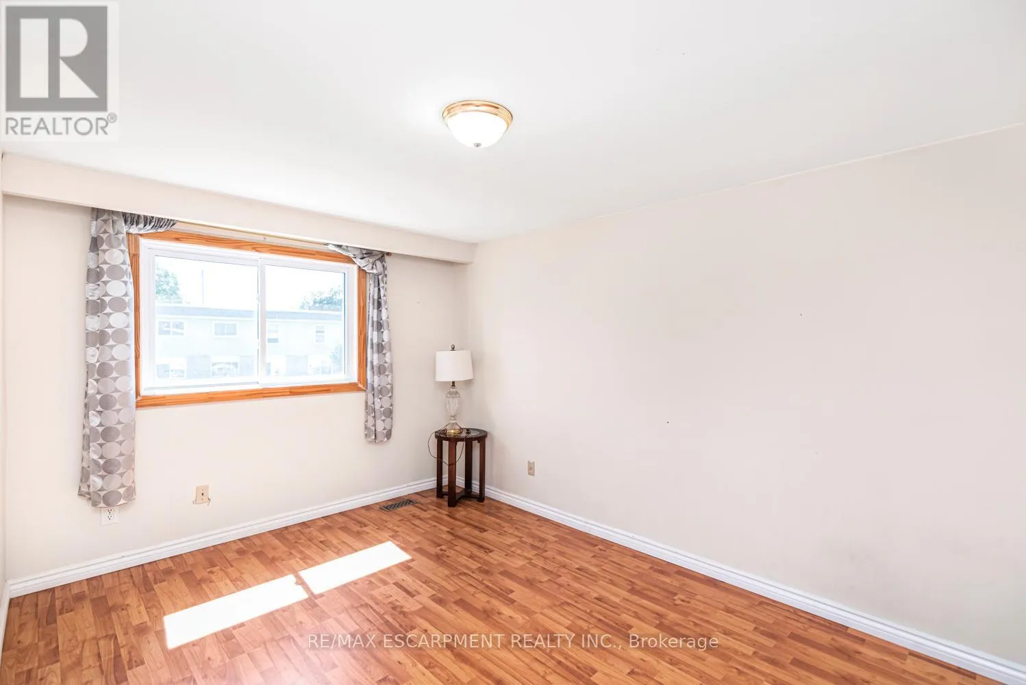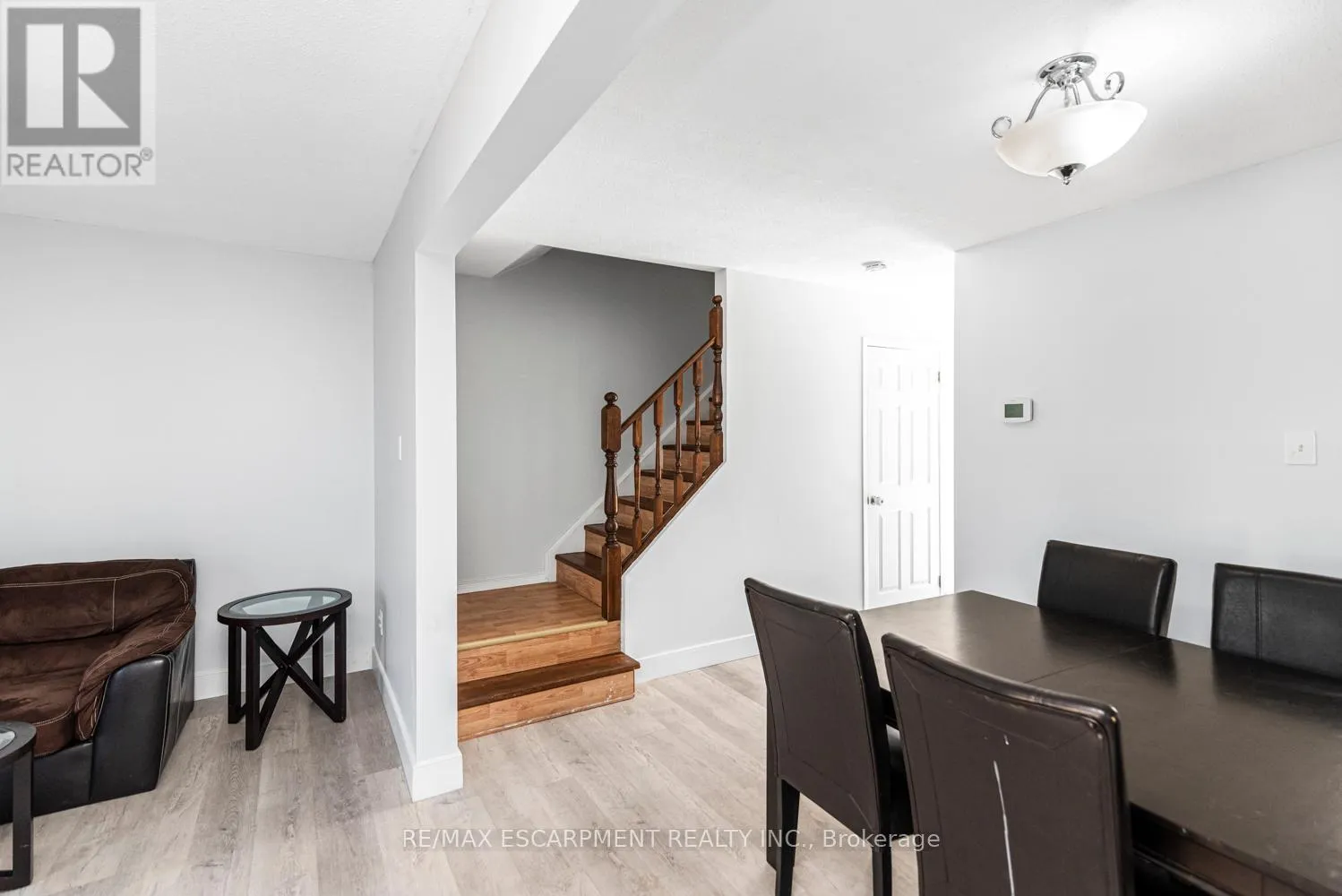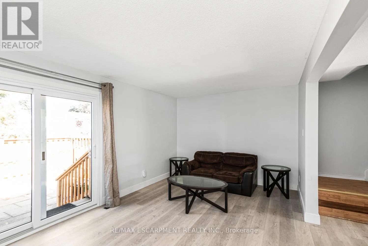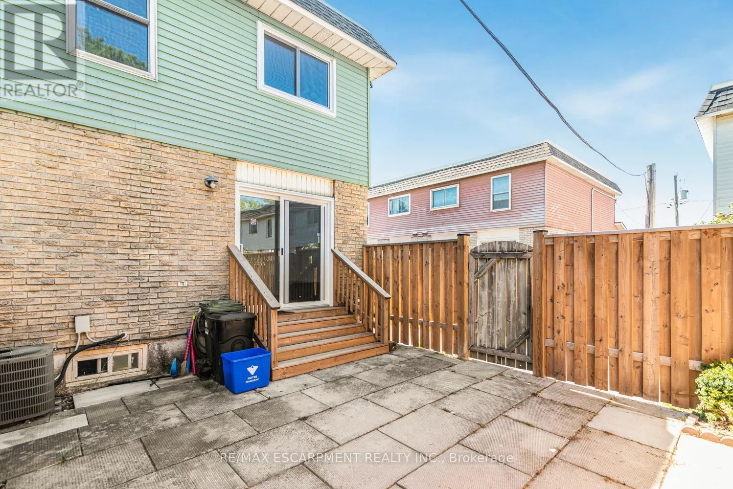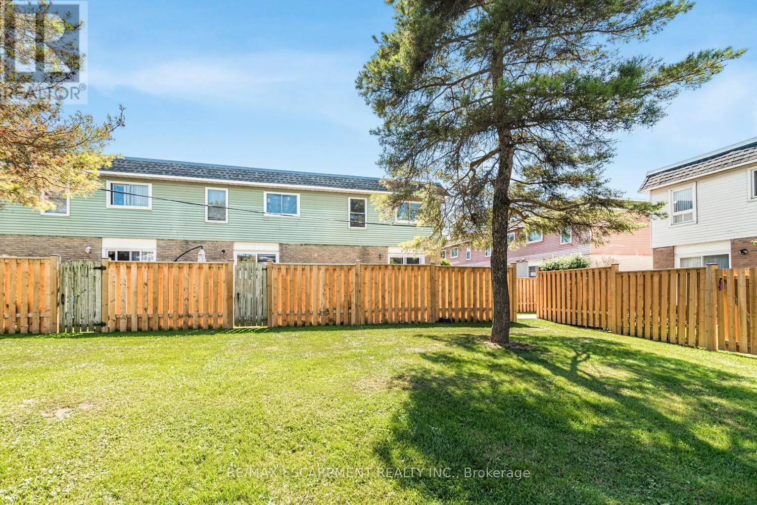 Upper Wellington St Affordable and ideally located, total 4 bedroom units (1 At basement), this central mountain townhome is tucked away from traffic and directly across from a large park - perfect for families! Enjoy low condo fees which includes water bills, in a quiet, family-friendly neighbourhood with convenient access to highways and public transit. Inside, youll find a spacious four-bedroom, 1.5-bath layout featuring a large, updated kitchen with plenty of cabinet storage and counter space. The separate dining room flows into a generous living room with sliding glass doors leading to a private, fenced backyard - ideal for relaxing or entertaining. Upstairs, you'll find a spotless full bathroom and three well-sized bedrooms, each with ample closet space. The finished basement offers great potential with, media room, or even a home office and a bedroom. Whether you're a first-time buyer, investor, or a family seeking a well-located home near great amenities, this property checks all the boxes. Ample parkings, few minutes to highway, Limeridge Mall Kitchen in 2022, backyard 2022, backyard fence 2024, main level floor 2022. (id:27476)