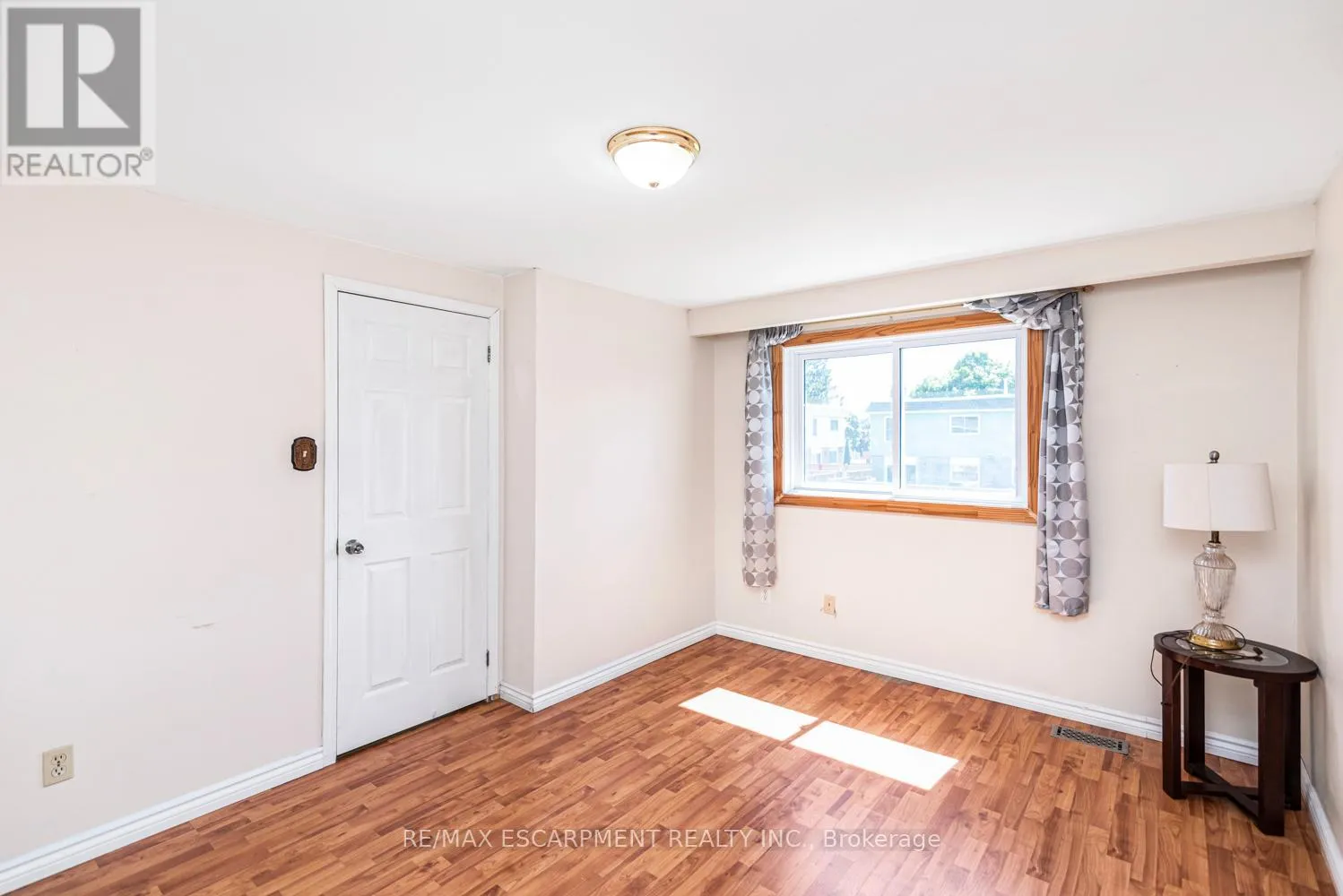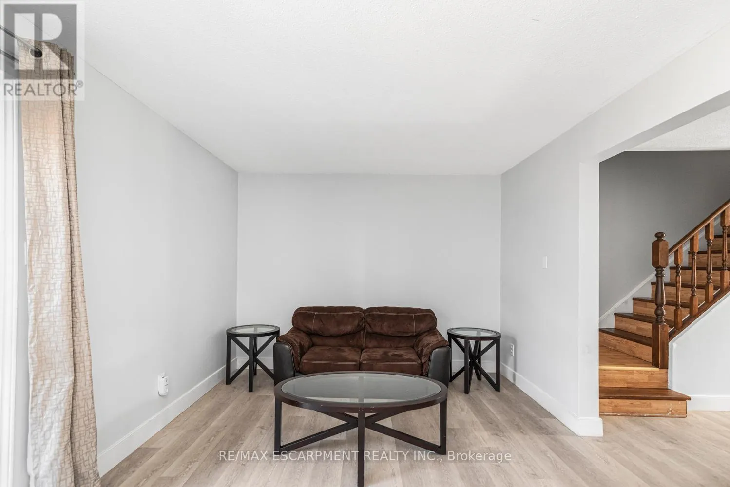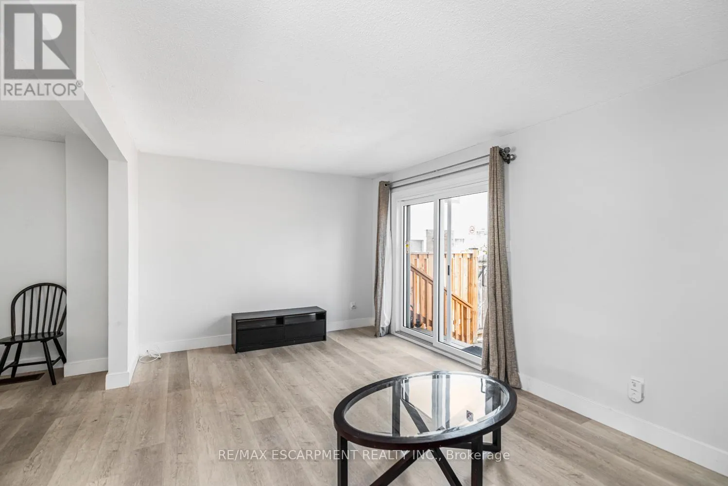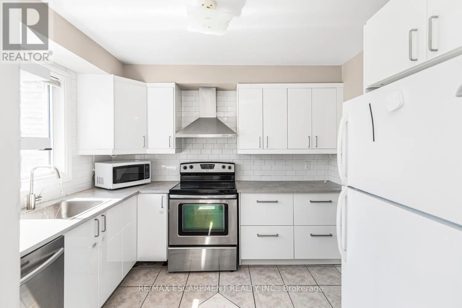 Upper Wellington St Affordable and ideally located, total 4 bedroom units (1 At basement), this central mountain townhome is tucked away from traffic and directly across from a large park - perfect for families! Enjoy low condo fees which includes water bills, in a quiet, family-friendly neighbourhood with convenient access to highways and public transit. Inside, youll find a spacious four-bedroom, 1.5-bath layout featuring a large, updated kitchen with plenty of cabinet storage and counter space. The separate dining room flows into a generous living room with sliding glass doors leading to a private, fenced backyard - ideal for relaxing or entertaining. Upstairs, you'll find a spotless full bathroom and three well-sized bedrooms, each with ample closet space. The finished basement offers great potential with, media room, or even a home office and a bedroom. Whether you're a first-time buyer, investor, or a family seeking a well-located home near great amenities, this property checks all the boxes. Ample parkings, few minutes to highway, Limeridge Mall Kitchen in 2022, backyard 2022, backyard fence 2024, main level floor 2022. (id:27476)