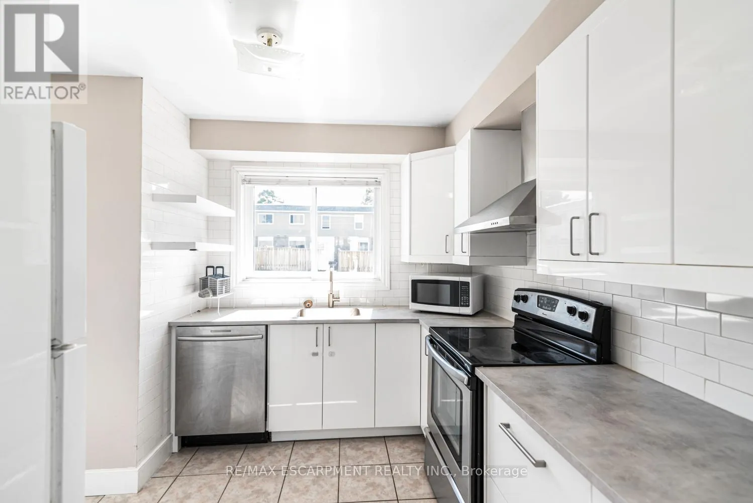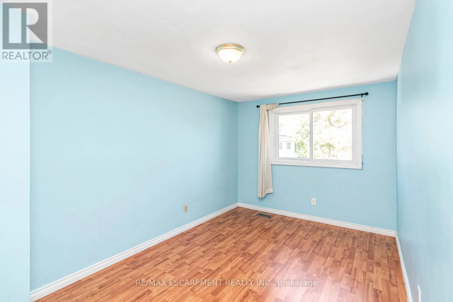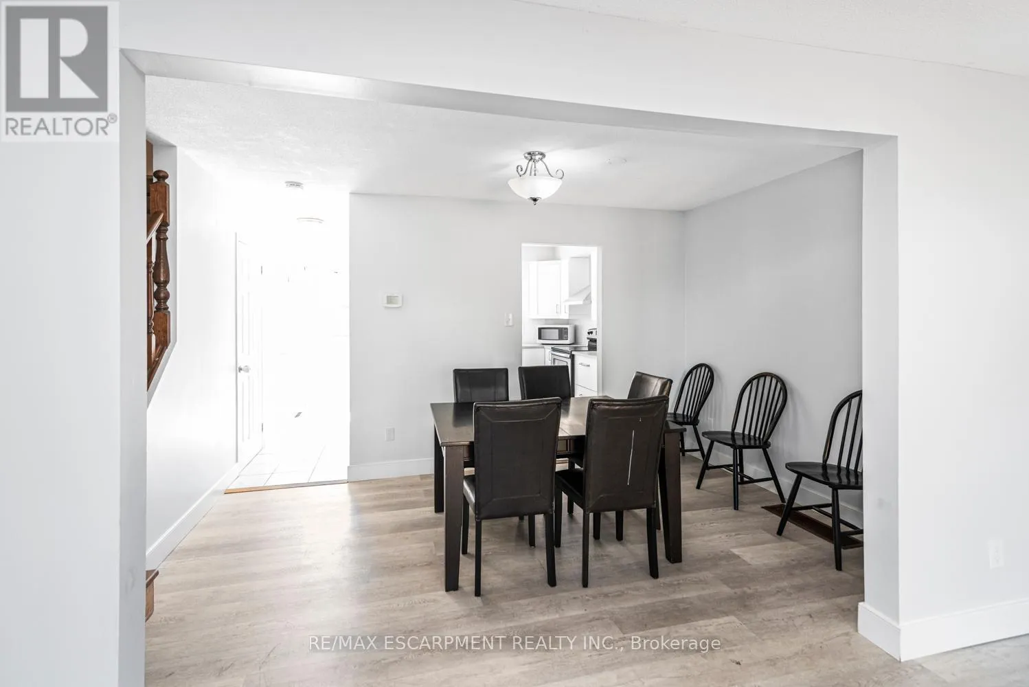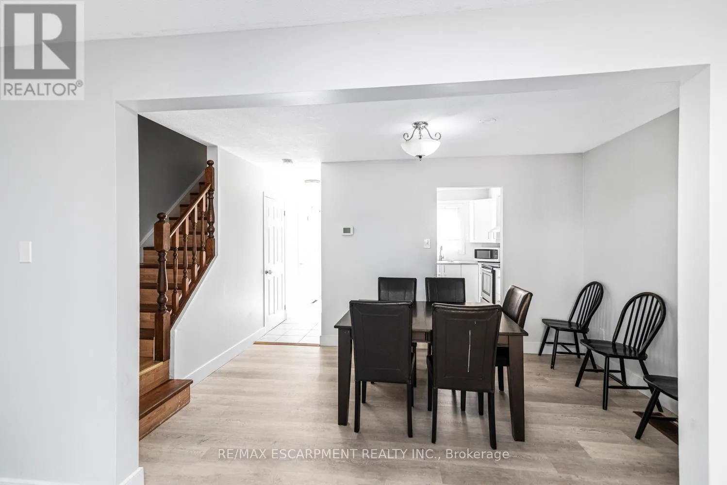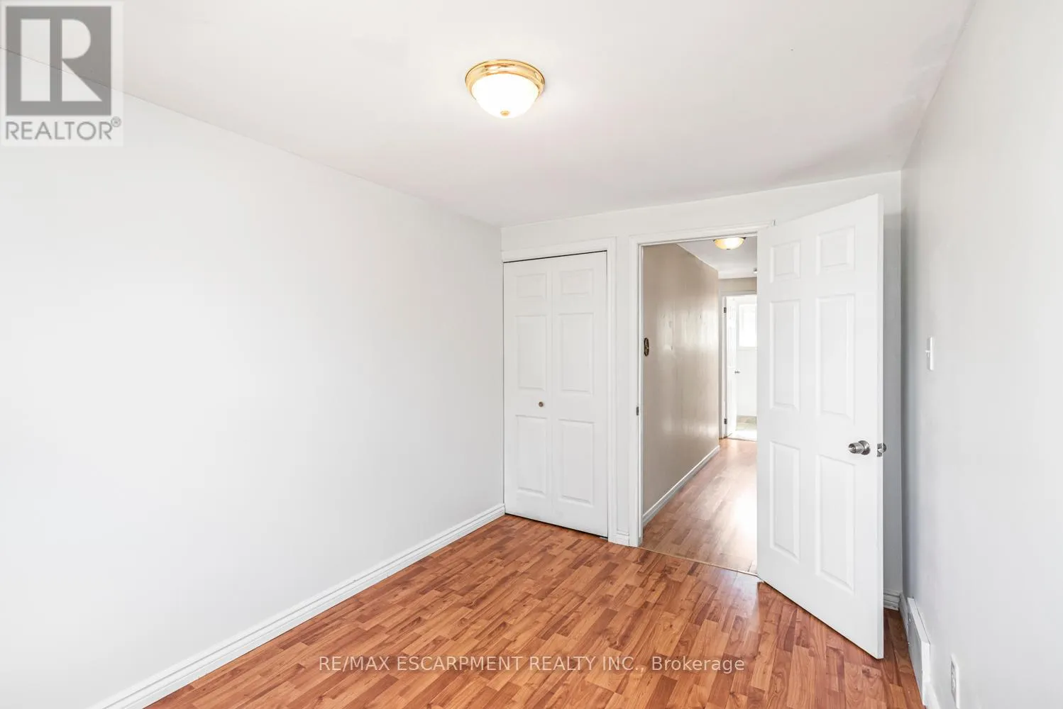 Upper Wellington St Affordable and ideally located, total 4 bedroom units (1 At basement), this central mountain townhome is tucked away from traffic and directly across from a large park - perfect for families! Enjoy low condo fees which includes water bills, in a quiet, family-friendly neighbourhood with convenient access to highways and public transit. Inside, youll find a spacious four-bedroom, 1.5-bath layout featuring a large, updated kitchen with plenty of cabinet storage and counter space. The separate dining room flows into a generous living room with sliding glass doors leading to a private, fenced backyard - ideal for relaxing or entertaining. Upstairs, you'll find a spotless full bathroom and three well-sized bedrooms, each with ample closet space. The finished basement offers great potential with, media room, or even a home office and a bedroom. Whether you're a first-time buyer, investor, or a family seeking a well-located home near great amenities, this property checks all the boxes. Ample parkings, few minutes to highway, Limeridge Mall Kitchen in 2022, backyard 2022, backyard fence 2024, main level floor 2022. (id:27476)