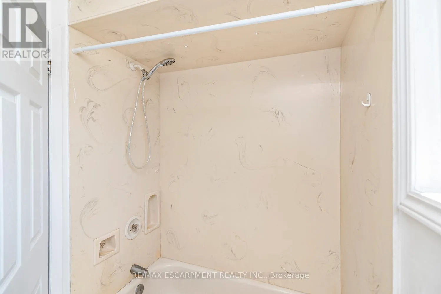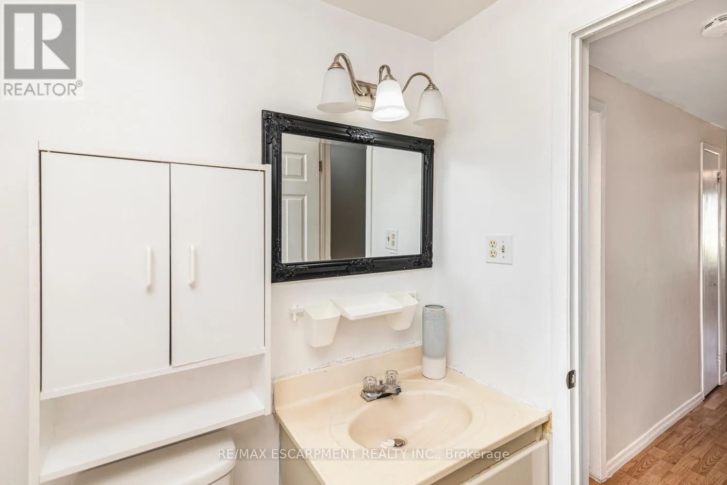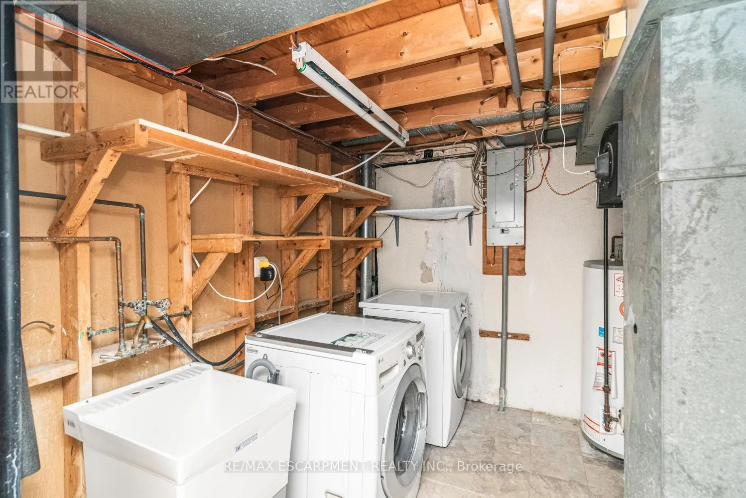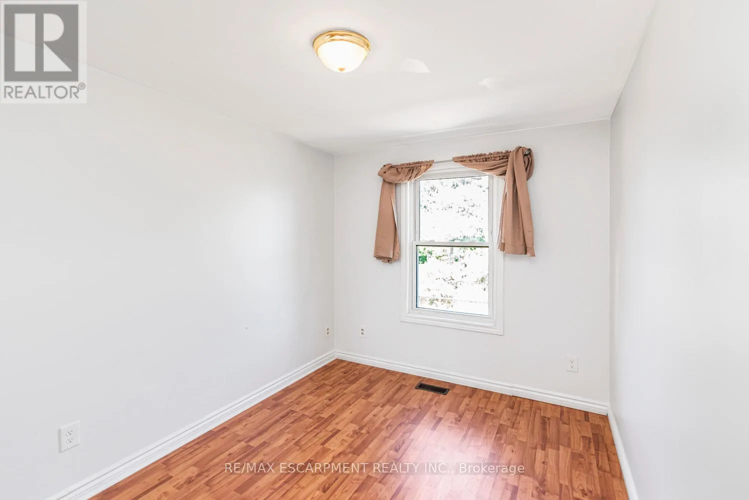 Upper Wellington St Affordable and ideally located, total 4 bedroom units (1 At basement), this central mountain townhome is tucked away from traffic and directly across from a large park - perfect for families! Enjoy low condo fees which includes water bills, in a quiet, family-friendly neighbourhood with convenient access to highways and public transit. Inside, youll find a spacious four-bedroom, 1.5-bath layout featuring a large, updated kitchen with plenty of cabinet storage and counter space. The separate dining room flows into a generous living room with sliding glass doors leading to a private, fenced backyard - ideal for relaxing or entertaining. Upstairs, you'll find a spotless full bathroom and three well-sized bedrooms, each with ample closet space. The finished basement offers great potential with, media room, or even a home office and a bedroom. Whether you're a first-time buyer, investor, or a family seeking a well-located home near great amenities, this property checks all the boxes. Ample parkings, few minutes to highway, Limeridge Mall Kitchen in 2022, backyard 2022, backyard fence 2024, main level floor 2022. (id:27476)