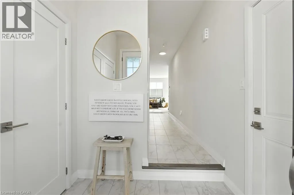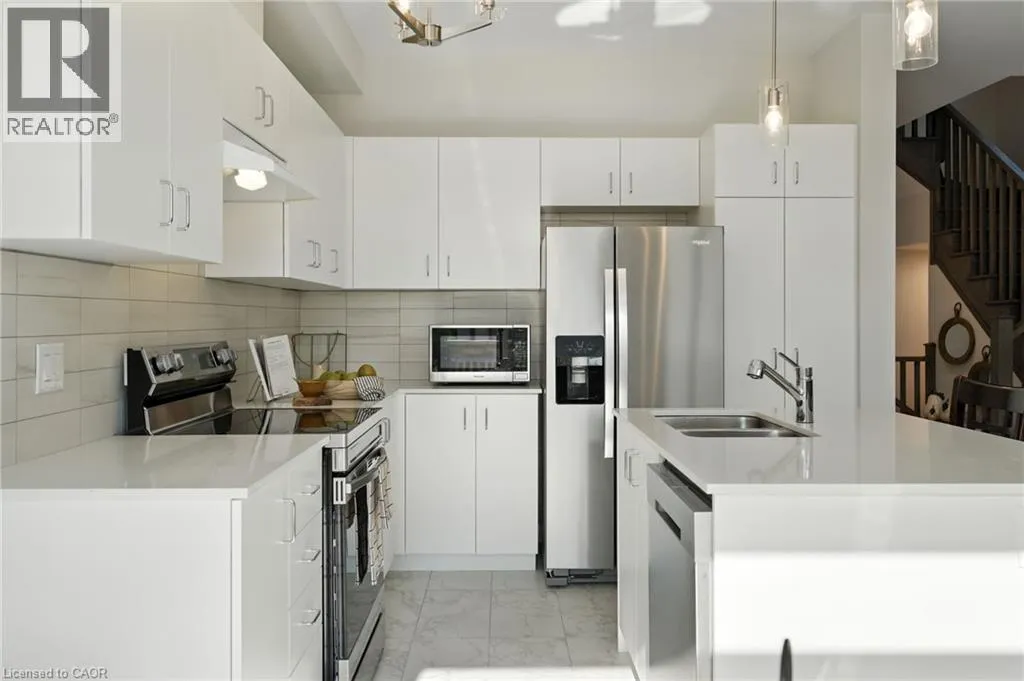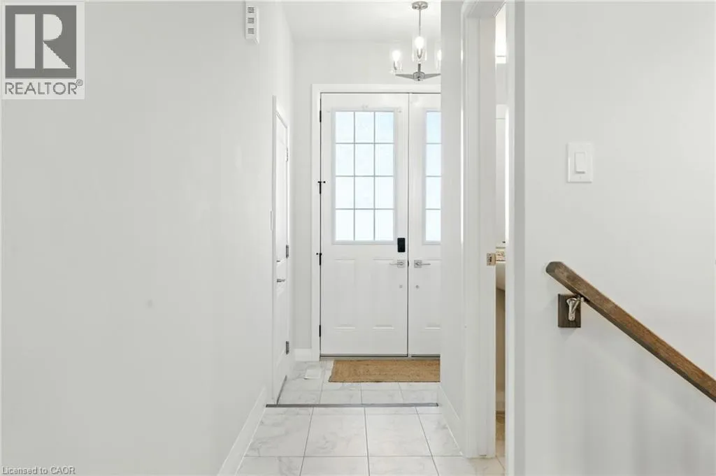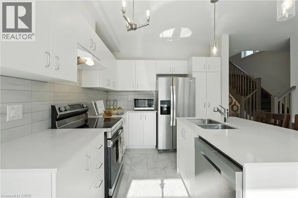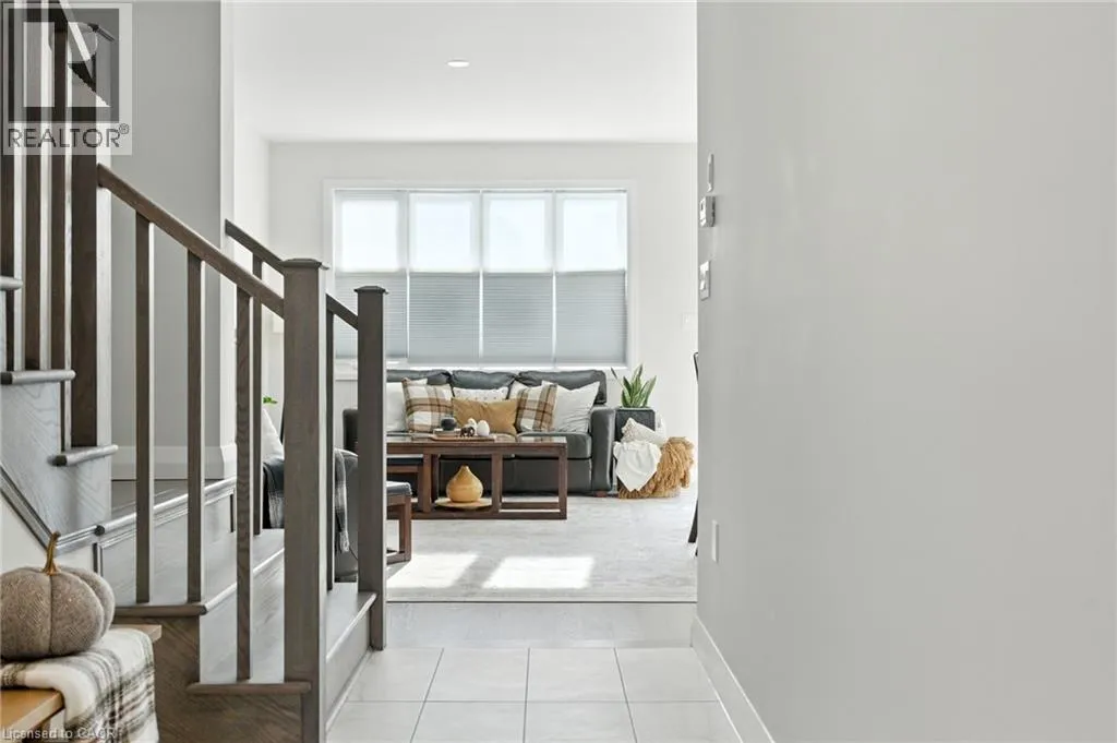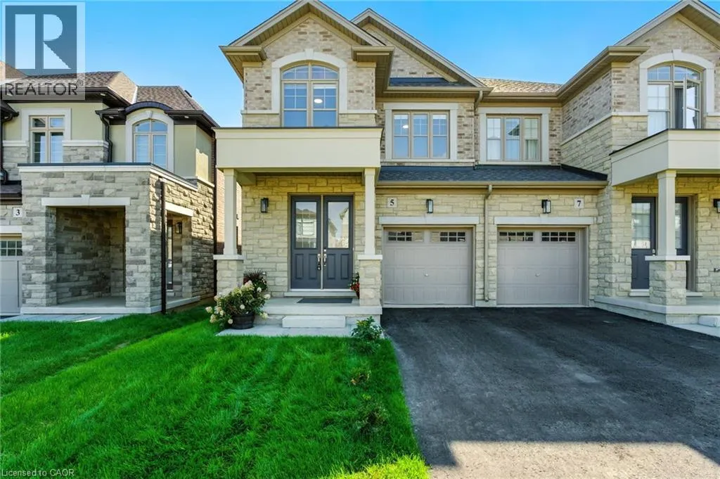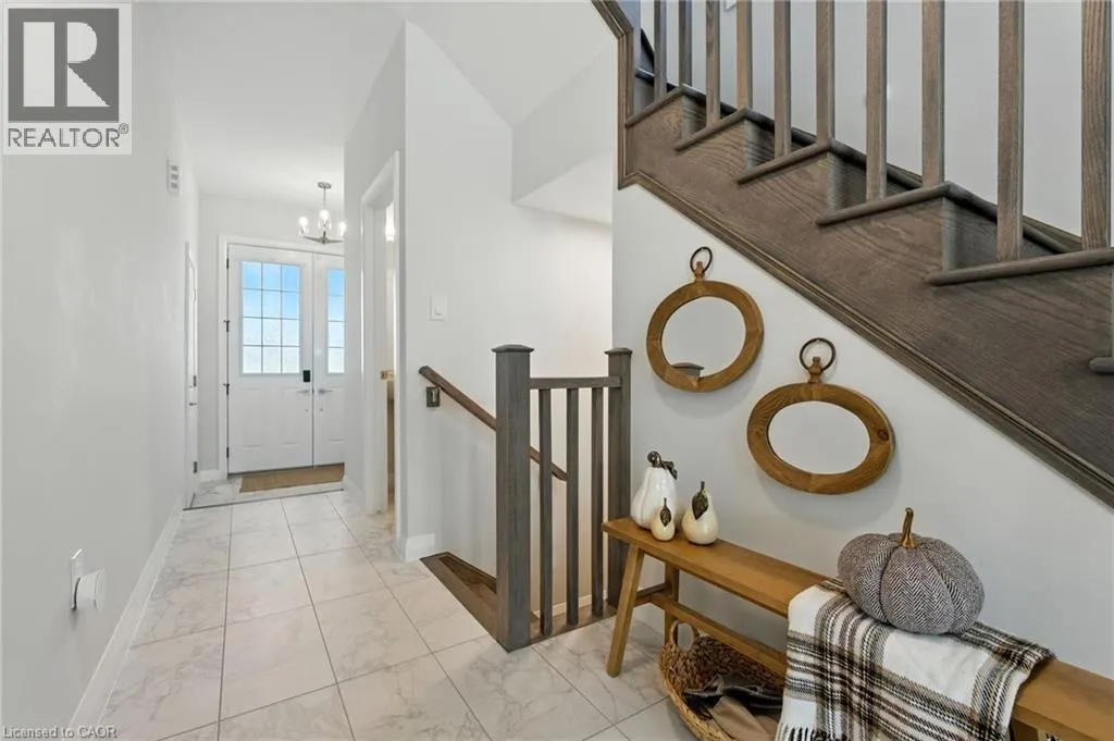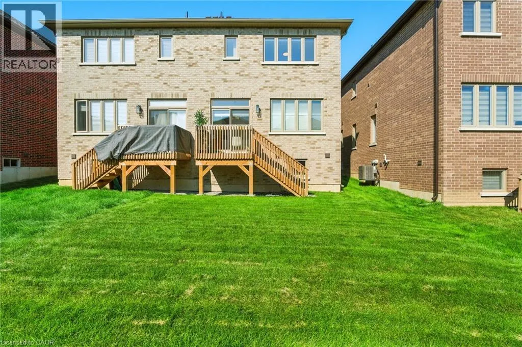 RYMAL RD W, HAZELTON, RIIGHT ON ALESSIO DR, RIGHT AT CHERRY BLOSSOM Absolutely Stunning!! One year NEW - 2 STOREY SEMI DETACHED. Nestled in the desirable, family friendly West Hamilton Mountain neighbourhood. This 3-bedroom, 3-bathroom home offers modern style, comfort, and convenience. The main floor boasts a bright open-concept layout. Picture yourself entertaining in this brand NEW dream kitchen with quartz countertops and brand new stainless-steel appliances, flowing seamlessly into the spacious family room. Hardwood floors and ceramics, 9-foot ceilings on the main level and oversized windows add both abundance of natural light and elegance. The oak staircase leads upstairs to well-proportioned bedrooms, including a primary bedroom with a large walk-in closet, spacious ensuite with oversized glass shower. New Sod and New Driveway, New AC (2025). The home also features a full unfinished basement with a proper egress window, offering plenty of potential for future living space. Rear deck. Conveniently located just minutes to Garth and Upper James St shopping strip, restaurants, parks, trails, schools and highway. This home has everything you need and more - nothing to do but move in and enjoy! (id:27476)
