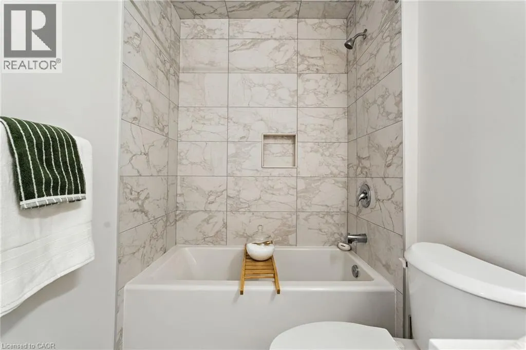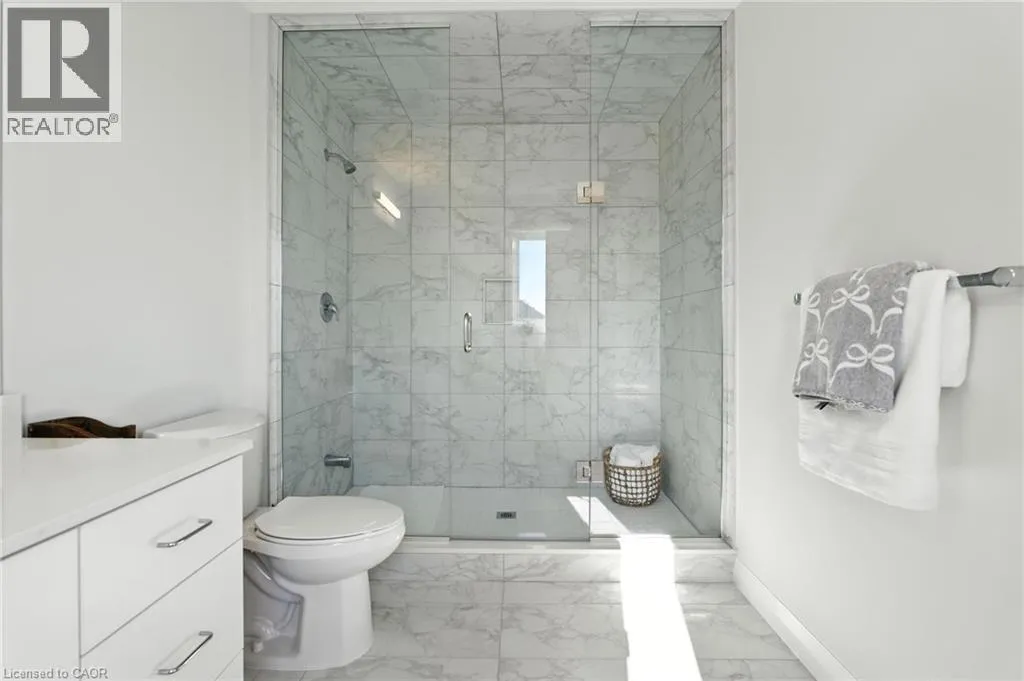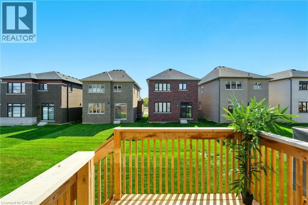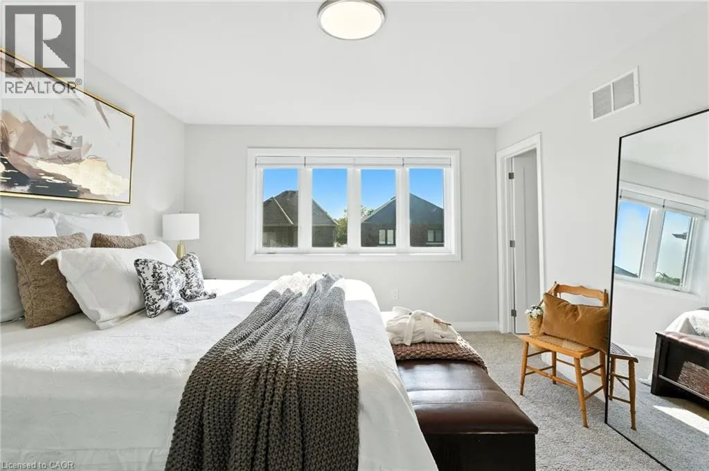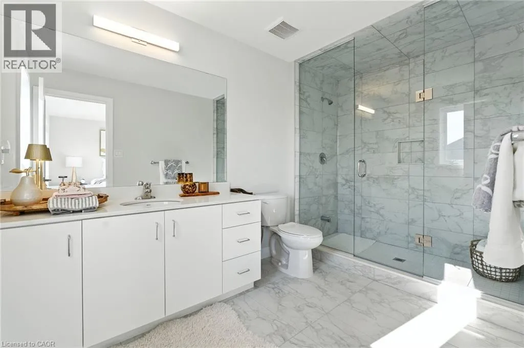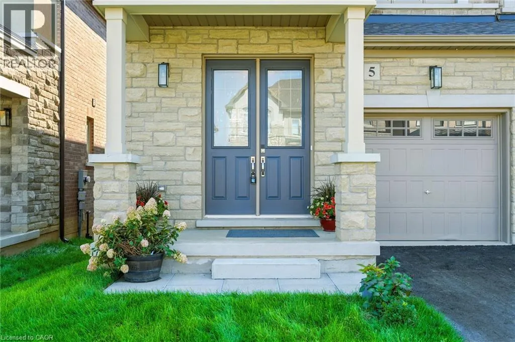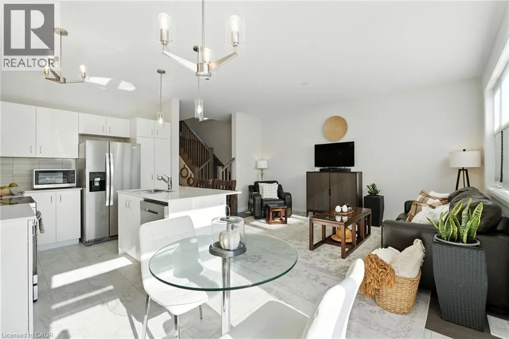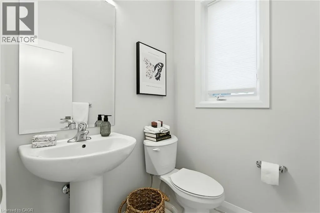 RYMAL RD W, HAZELTON, RIIGHT ON ALESSIO DR, RIGHT AT CHERRY BLOSSOM Absolutely Stunning!! One year NEW - 2 STOREY SEMI DETACHED. Nestled in the desirable, family friendly West Hamilton Mountain neighbourhood. This 3-bedroom, 3-bathroom home offers modern style, comfort, and convenience. The main floor boasts a bright open-concept layout. Picture yourself entertaining in this brand NEW dream kitchen with quartz countertops and brand new stainless-steel appliances, flowing seamlessly into the spacious family room. Hardwood floors and ceramics, 9-foot ceilings on the main level and oversized windows add both abundance of natural light and elegance. The oak staircase leads upstairs to well-proportioned bedrooms, including a primary bedroom with a large walk-in closet, spacious ensuite with oversized glass shower. New Sod and New Driveway, New AC (2025). The home also features a full unfinished basement with a proper egress window, offering plenty of potential for future living space. Rear deck. Conveniently located just minutes to Garth and Upper James St shopping strip, restaurants, parks, trails, schools and highway. This home has everything you need and more - nothing to do but move in and enjoy! (id:27476)