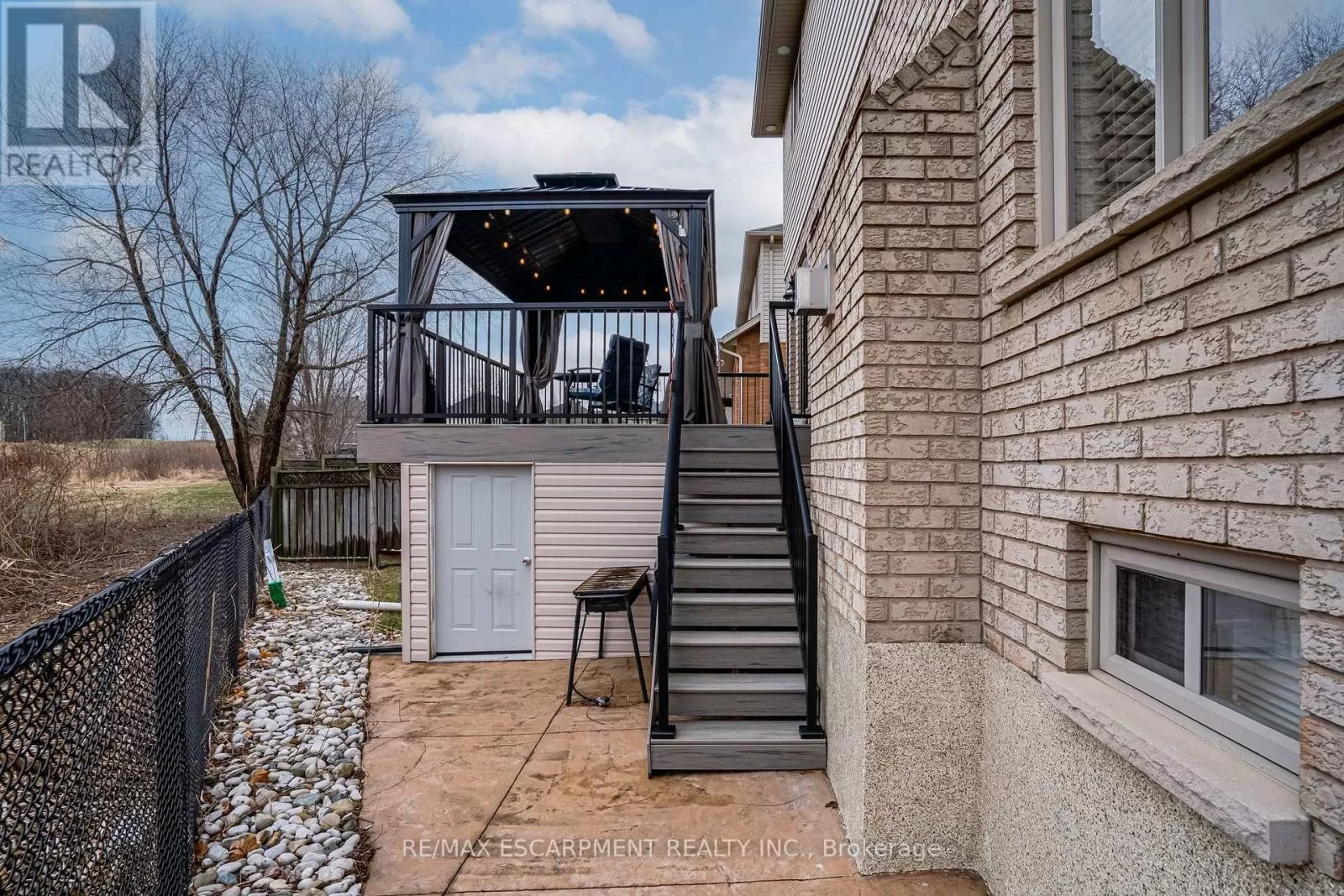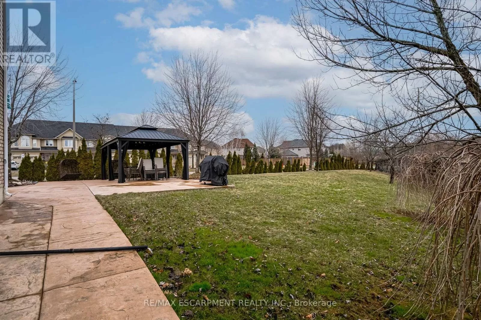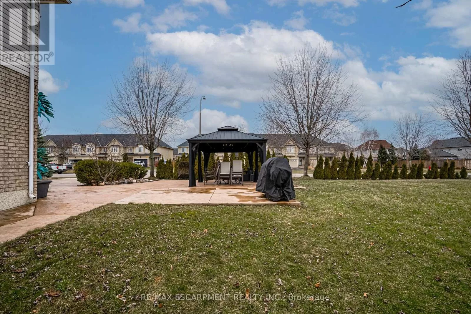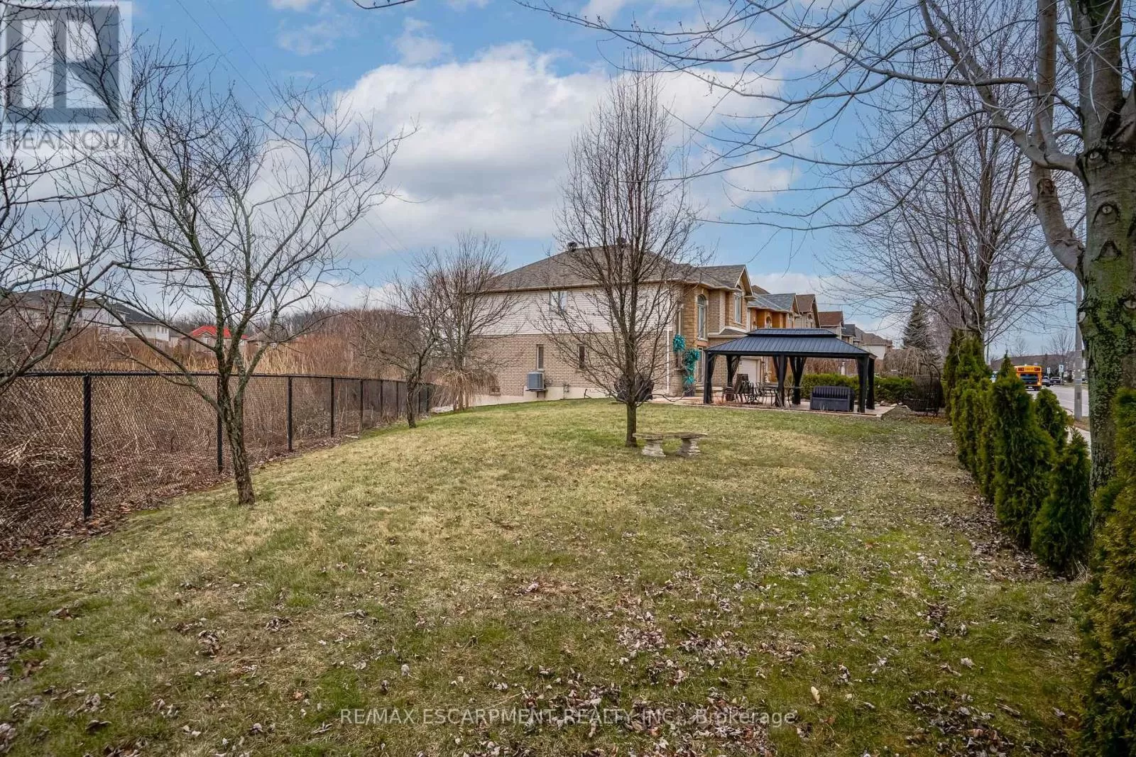 Cross Streets: Stonechurch & Stonehenge. ** Directions: Stonechurch Rd to Stonehenge Drive. Stunning Ancaster Meadowlands home on a rare double wide lot with no rear neighbours! Discover the perfect blend of space, privacy, and style in this all brick 4+1 bedroom, 3.5 bathroom home offering over 3,000 sq ft of finished living space. Situated on an extra wide lot, this property delivers the privacy and outdoor space families are searching for. The open concept main floor is designed for entertaining, featuring a gourmet eat in kitchen with stainless steel appliances, granite countertops, and direct sightlines into the oversized family room with cozy gas fireplace. A separate dining room, main floor mudroom/laundry, hardwood floors, pot lights, and inside access to the double car garage with epoxy flooring complete the level. Upstairs, unwind in the luxurious master retreat with walk-in closet and spa-like 5 piece ensuite bathroom. Three additional spacious bedrooms and a modern 4 piece bathroom provide plenty of room for the whole family. The fully finished basement offers incredible versatility with a large rec room, an extra bedroom, full bathroom, pantry, and ample storage. Step outside to your private backyard oasis - a generous double wide yard with no rear neighbours, a stylish composite deck (2019), stamped concrete patios, and a large double gazebo - perfect for relaxing or hosting friends. With a new roof (2021), upgraded attic insulation, and central vac, this home is move-in ready. Ideally located near schools, parks, shopping, and with excellent highway and transit access, this is a rare opportunity in the heart of Meadowlands. (id:27476)