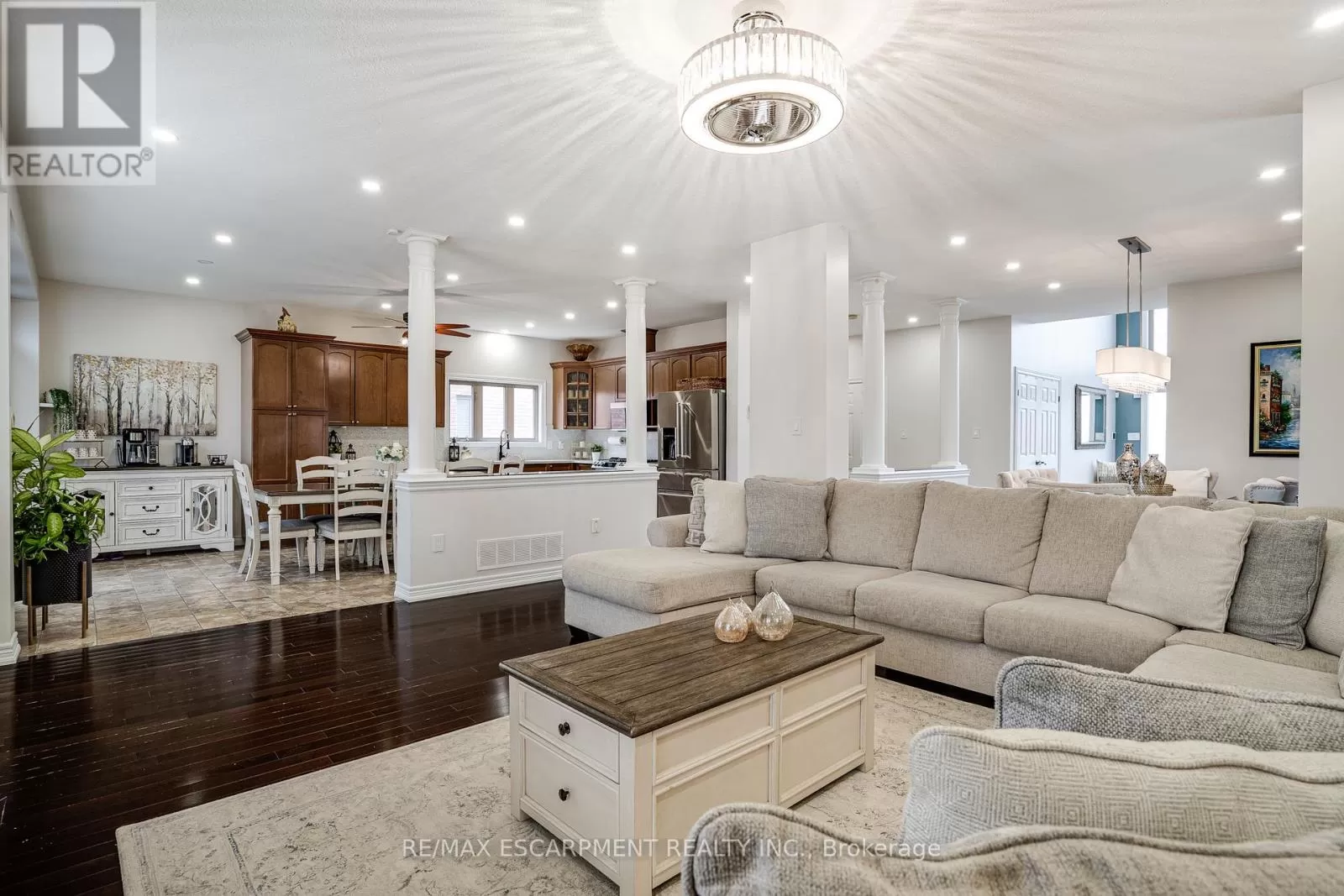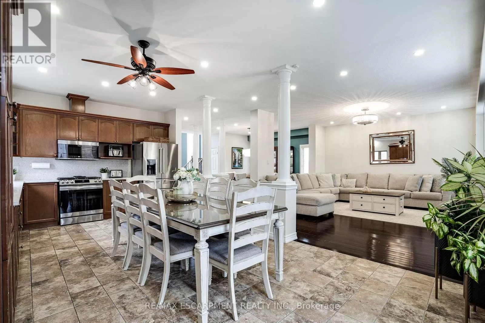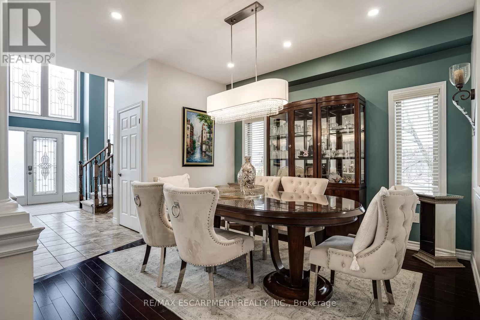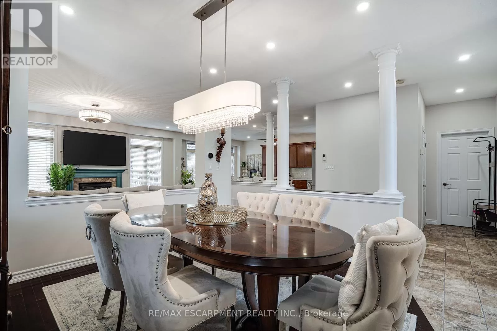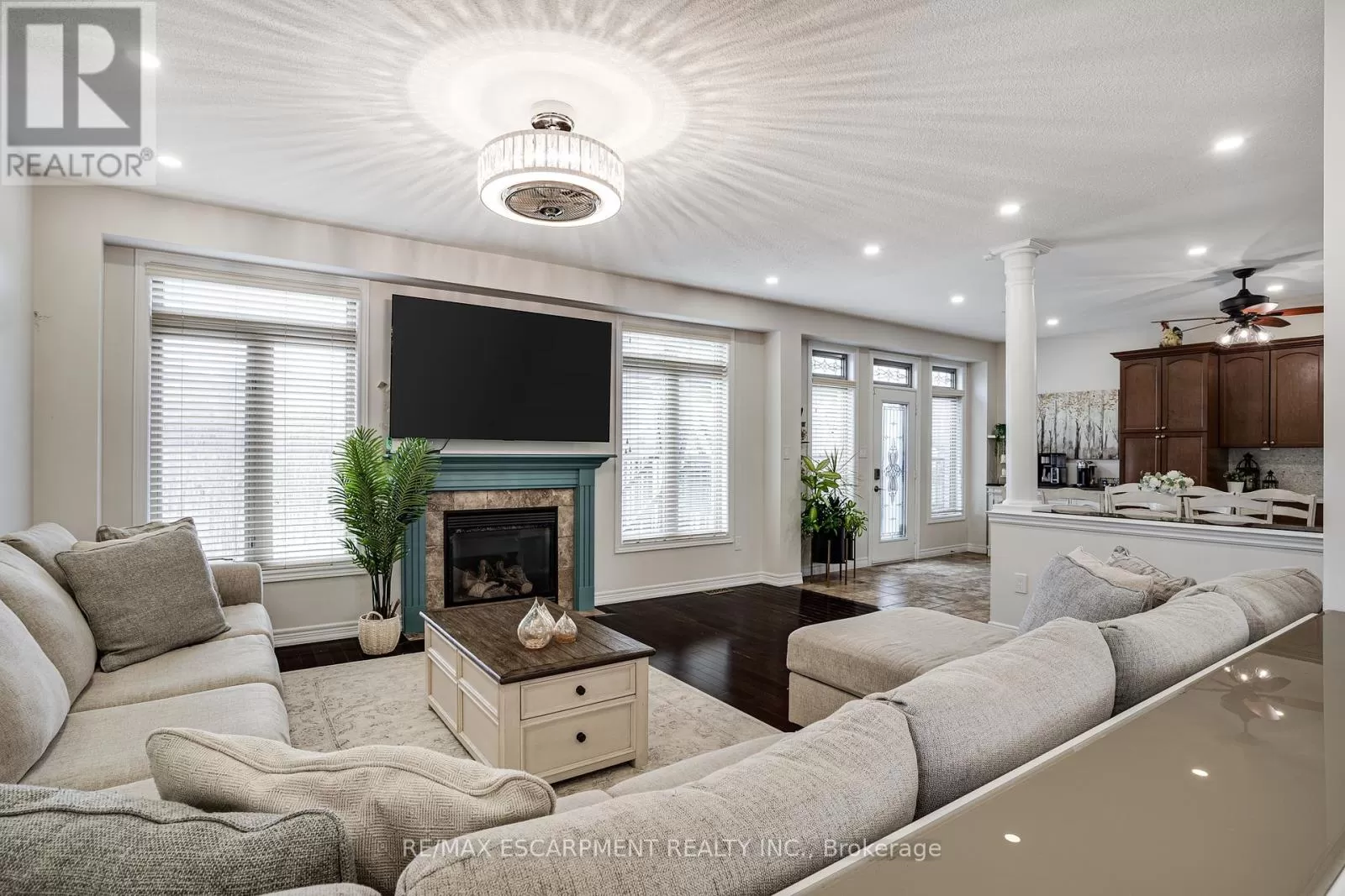 Cross Streets: Stonechurch & Stonehenge. ** Directions: Stonechurch Rd to Stonehenge Drive. Stunning Ancaster Meadowlands home on a rare double wide lot with no rear neighbours! Discover the perfect blend of space, privacy, and style in this all brick 4+1 bedroom, 3.5 bathroom home offering over 3,000 sq ft of finished living space. Situated on an extra wide lot, this property delivers the privacy and outdoor space families are searching for. The open concept main floor is designed for entertaining, featuring a gourmet eat in kitchen with stainless steel appliances, granite countertops, and direct sightlines into the oversized family room with cozy gas fireplace. A separate dining room, main floor mudroom/laundry, hardwood floors, pot lights, and inside access to the double car garage with epoxy flooring complete the level. Upstairs, unwind in the luxurious master retreat with walk-in closet and spa-like 5 piece ensuite bathroom. Three additional spacious bedrooms and a modern 4 piece bathroom provide plenty of room for the whole family. The fully finished basement offers incredible versatility with a large rec room, an extra bedroom, full bathroom, pantry, and ample storage. Step outside to your private backyard oasis - a generous double wide yard with no rear neighbours, a stylish composite deck (2019), stamped concrete patios, and a large double gazebo - perfect for relaxing or hosting friends. With a new roof (2021), upgraded attic insulation, and central vac, this home is move-in ready. Ideally located near schools, parks, shopping, and with excellent highway and transit access, this is a rare opportunity in the heart of Meadowlands. (id:27476)