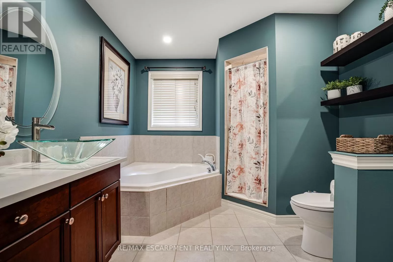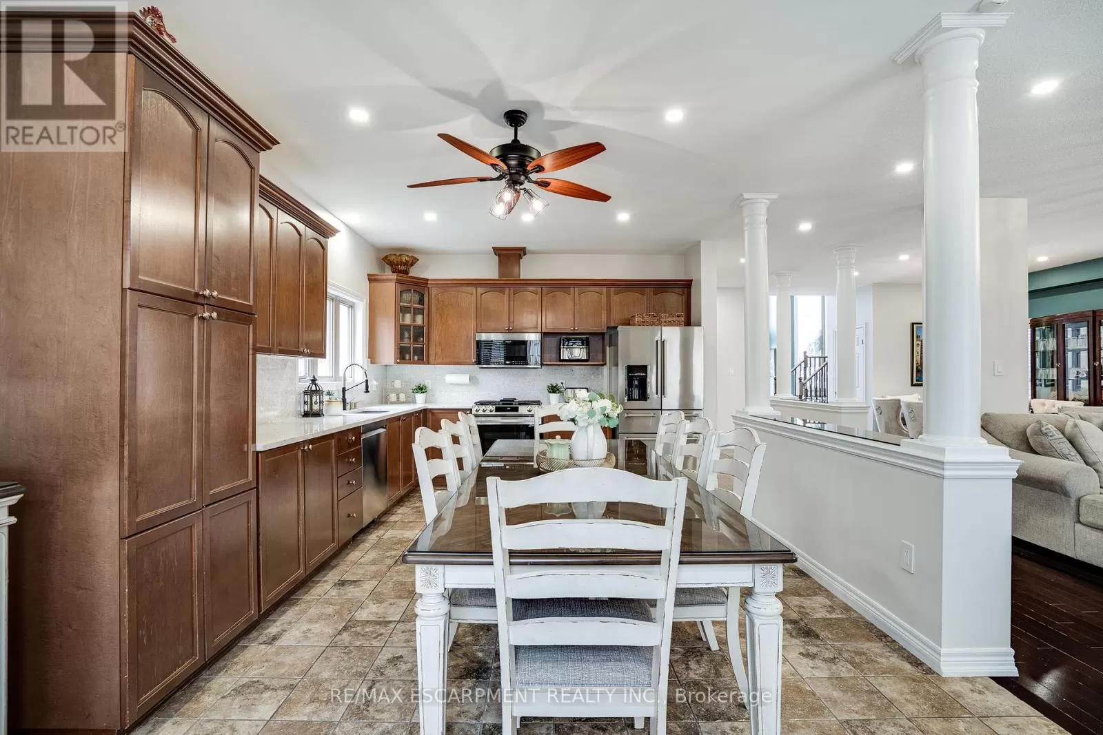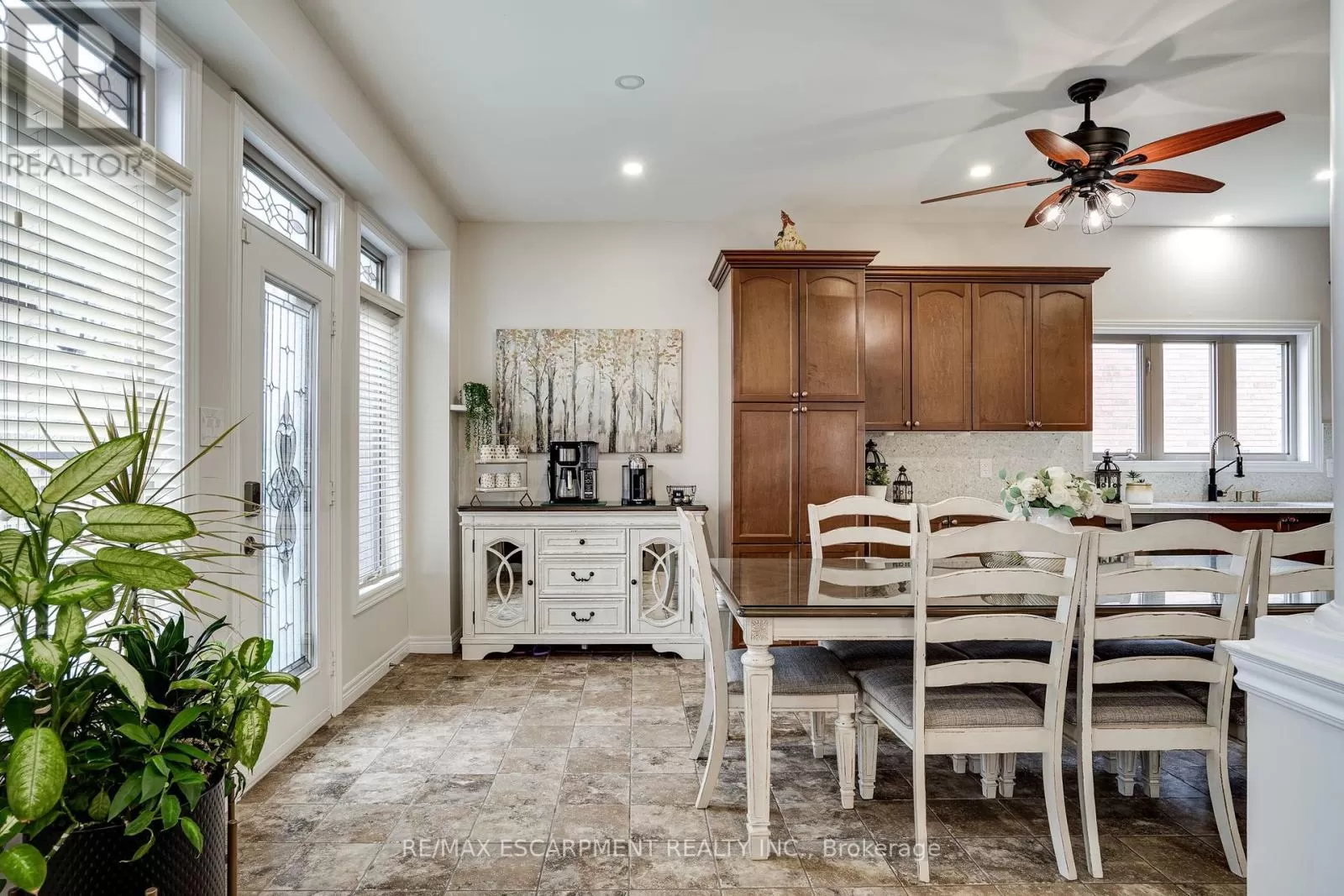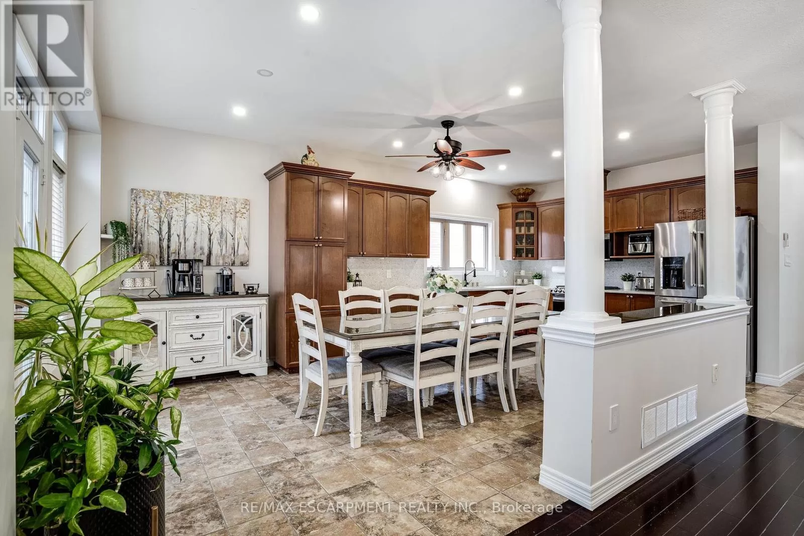 Cross Streets: Stonechurch & Stonehenge. ** Directions: Stonechurch Rd to Stonehenge Drive. Stunning Ancaster Meadowlands home on a rare double wide lot with no rear neighbours! Discover the perfect blend of space, privacy, and style in this all brick 4+1 bedroom, 3.5 bathroom home offering over 3,000 sq ft of finished living space. Situated on an extra wide lot, this property delivers the privacy and outdoor space families are searching for. The open concept main floor is designed for entertaining, featuring a gourmet eat in kitchen with stainless steel appliances, granite countertops, and direct sightlines into the oversized family room with cozy gas fireplace. A separate dining room, main floor mudroom/laundry, hardwood floors, pot lights, and inside access to the double car garage with epoxy flooring complete the level. Upstairs, unwind in the luxurious master retreat with walk-in closet and spa-like 5 piece ensuite bathroom. Three additional spacious bedrooms and a modern 4 piece bathroom provide plenty of room for the whole family. The fully finished basement offers incredible versatility with a large rec room, an extra bedroom, full bathroom, pantry, and ample storage. Step outside to your private backyard oasis - a generous double wide yard with no rear neighbours, a stylish composite deck (2019), stamped concrete patios, and a large double gazebo - perfect for relaxing or hosting friends. With a new roof (2021), upgraded attic insulation, and central vac, this home is move-in ready. Ideally located near schools, parks, shopping, and with excellent highway and transit access, this is a rare opportunity in the heart of Meadowlands. (id:27476)