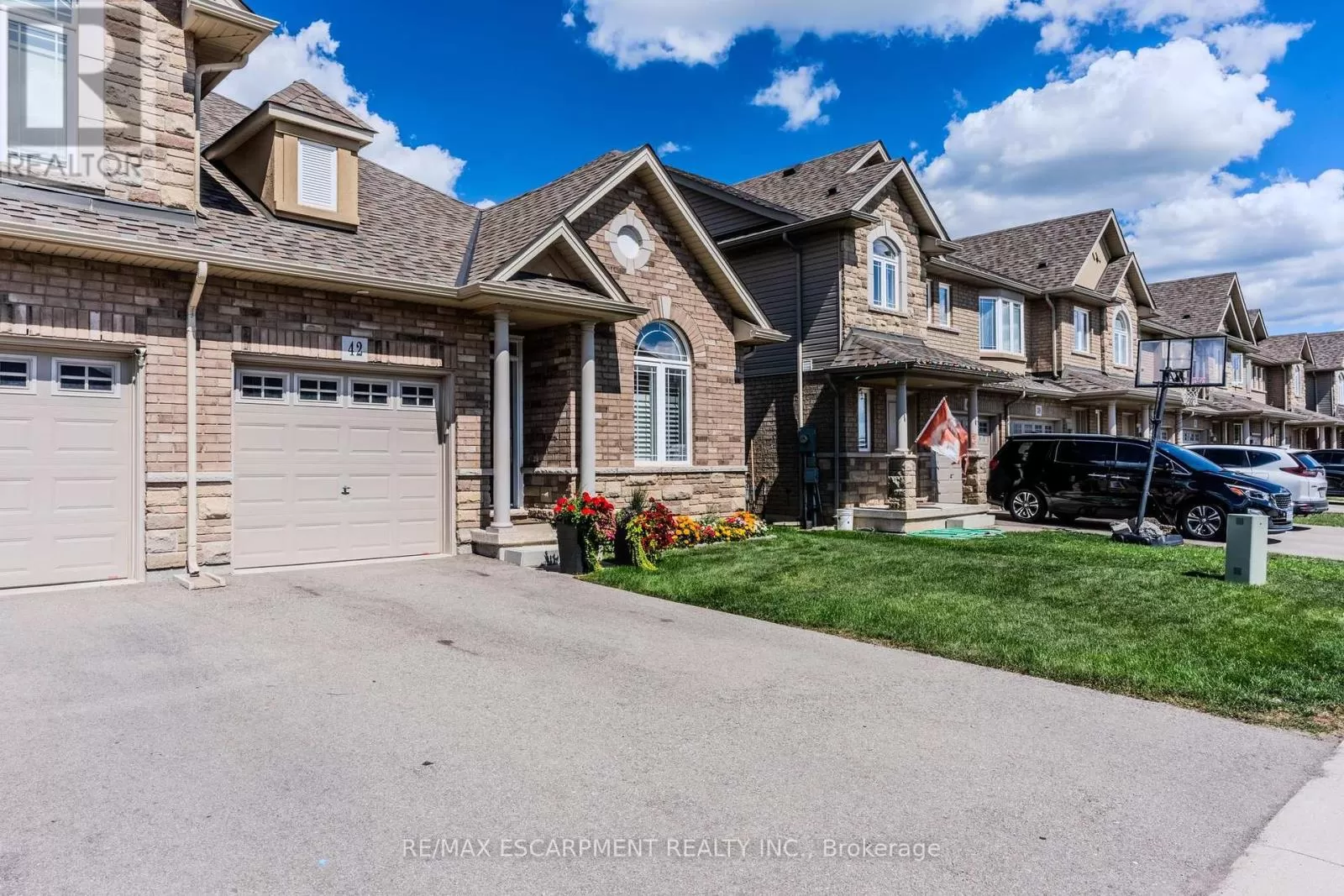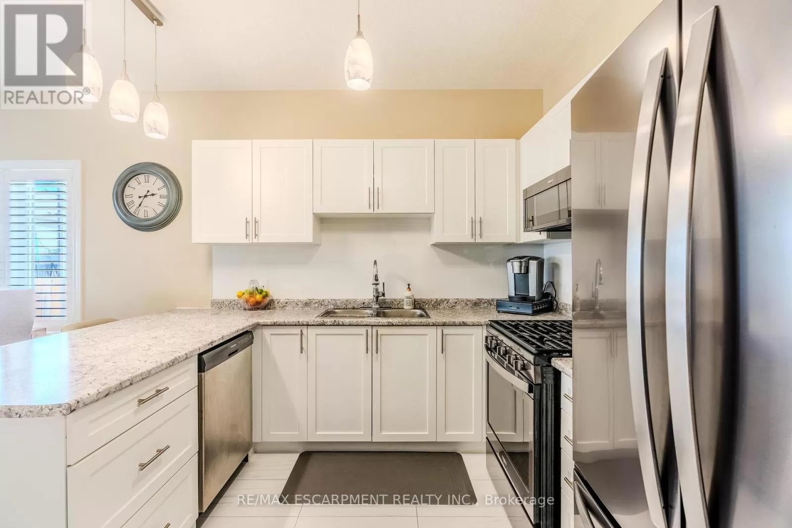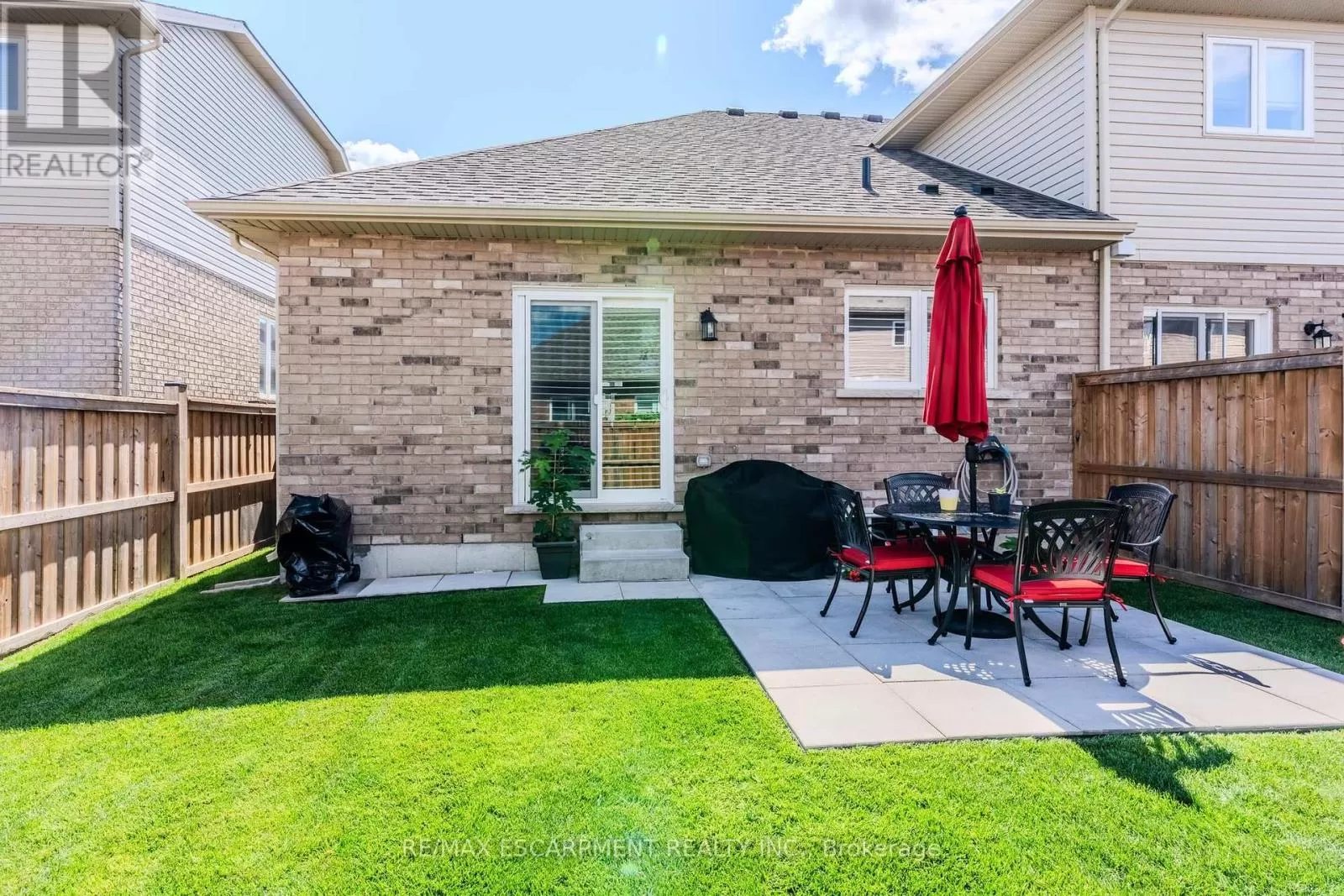 Cross Streets: Rymal Rd. ** Directions: Rymal & Upper Centennial - Turn right from Highway 56 into Dalgleigsh trl, left onto Cittadella Blvd. Beautiful Bungalow Living! This premium 6 year old end-unit freehold bungalow has it all - no condo fees and a fully fenced backyard to enjoy. Inside, you'll find a stunning, modern renovation with hardwood and ceramic throughout the main floor (that's right, no carpet!) The bright, open-concept layout offers a spacious living/dining area, complete with California Shutters for a sleek finish. The primary suite features a gorgeous ensuite, featuring a large tiled shower, built in seat, and heavy-duty glass. Other updates include stylish flooring, a split-finish staircase, and an upgraded front door that makes a great first impression. The lower level is untouched and ready for your ideas, already equipped with a bathroom rough in. Outside, relax or entertain in your fully fenced backyard with shed. This home is move-in ready - clean, bright, and waiting for you! (id:27476)