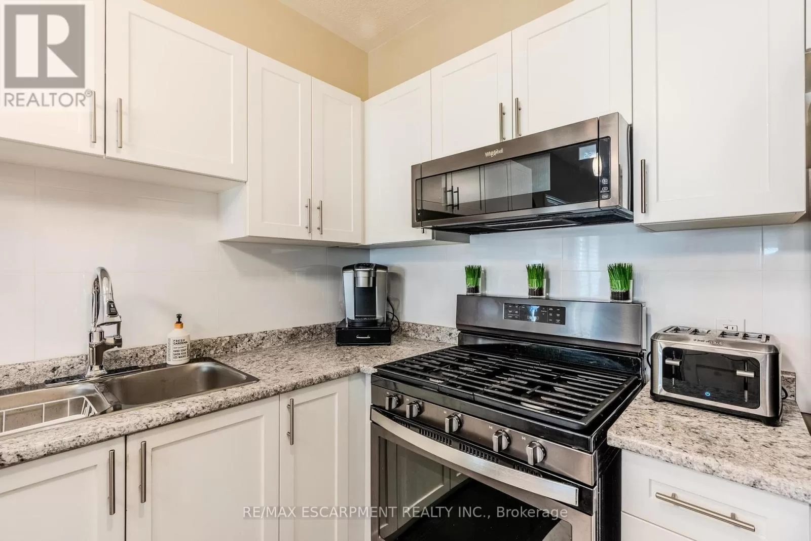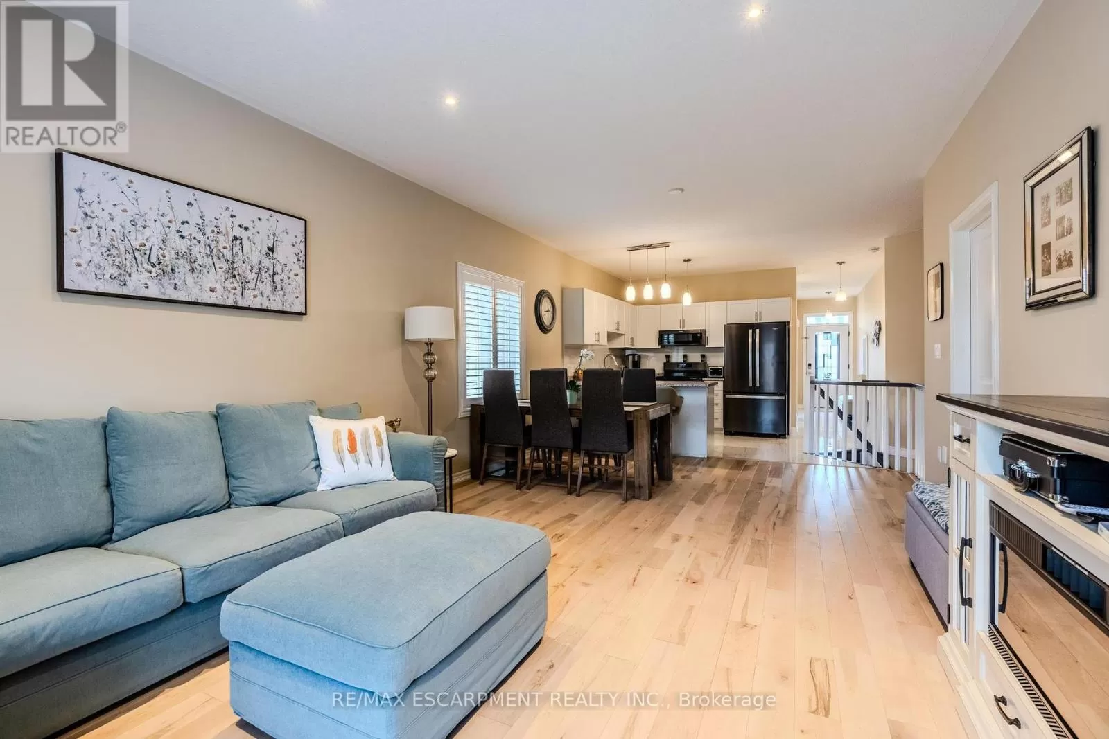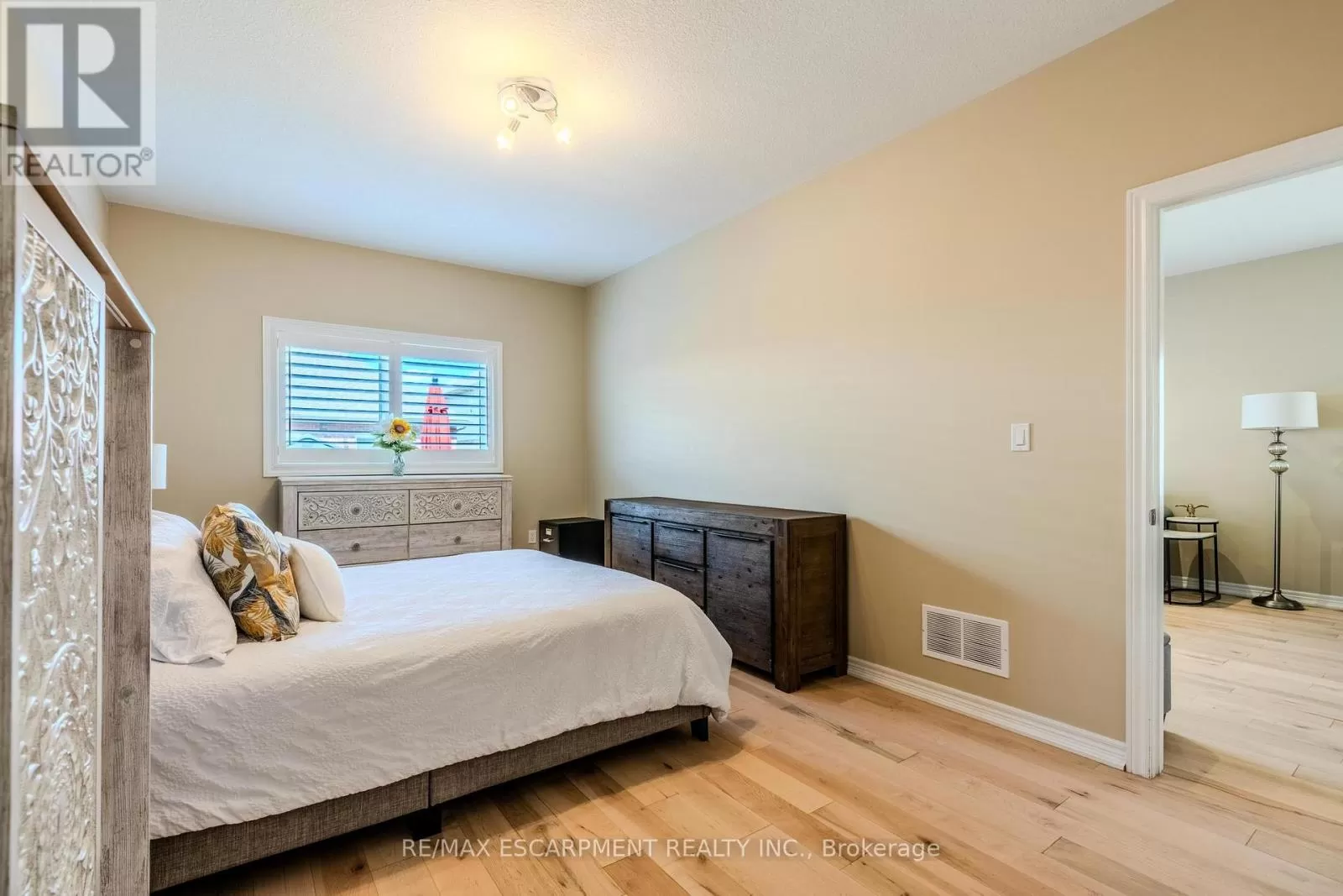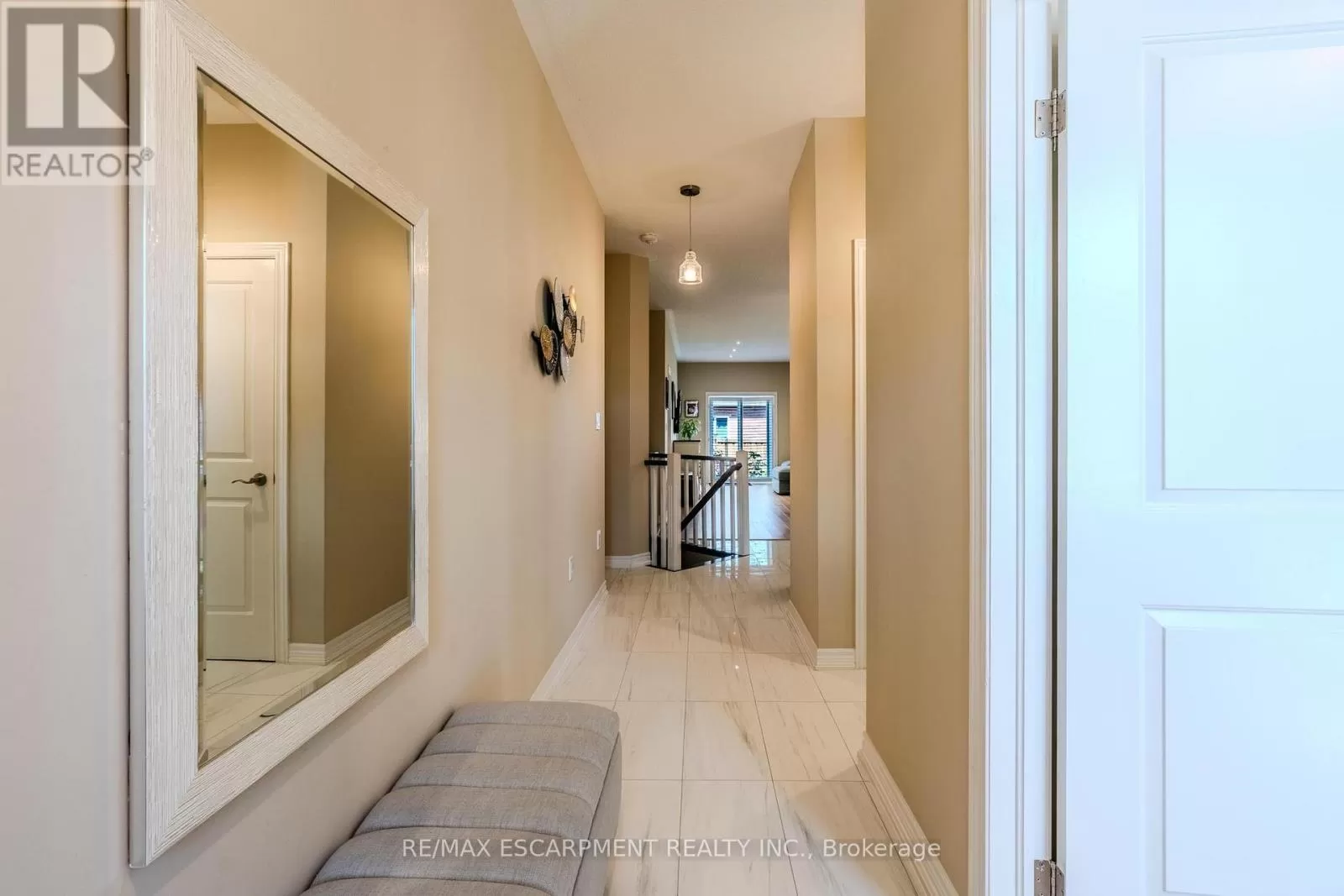 Cross Streets: Rymal Rd. ** Directions: Rymal & Upper Centennial - Turn right from Highway 56 into Dalgleigsh trl, left onto Cittadella Blvd. Beautiful Bungalow Living! This premium 6 year old end-unit freehold bungalow has it all - no condo fees and a fully fenced backyard to enjoy. Inside, you'll find a stunning, modern renovation with hardwood and ceramic throughout the main floor (that's right, no carpet!) The bright, open-concept layout offers a spacious living/dining area, complete with California Shutters for a sleek finish. The primary suite features a gorgeous ensuite, featuring a large tiled shower, built in seat, and heavy-duty glass. Other updates include stylish flooring, a split-finish staircase, and an upgraded front door that makes a great first impression. The lower level is untouched and ready for your ideas, already equipped with a bathroom rough in. Outside, relax or entertain in your fully fenced backyard with shed. This home is move-in ready - clean, bright, and waiting for you! (id:27476)