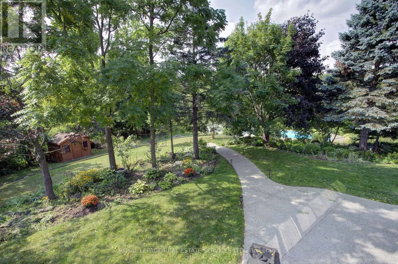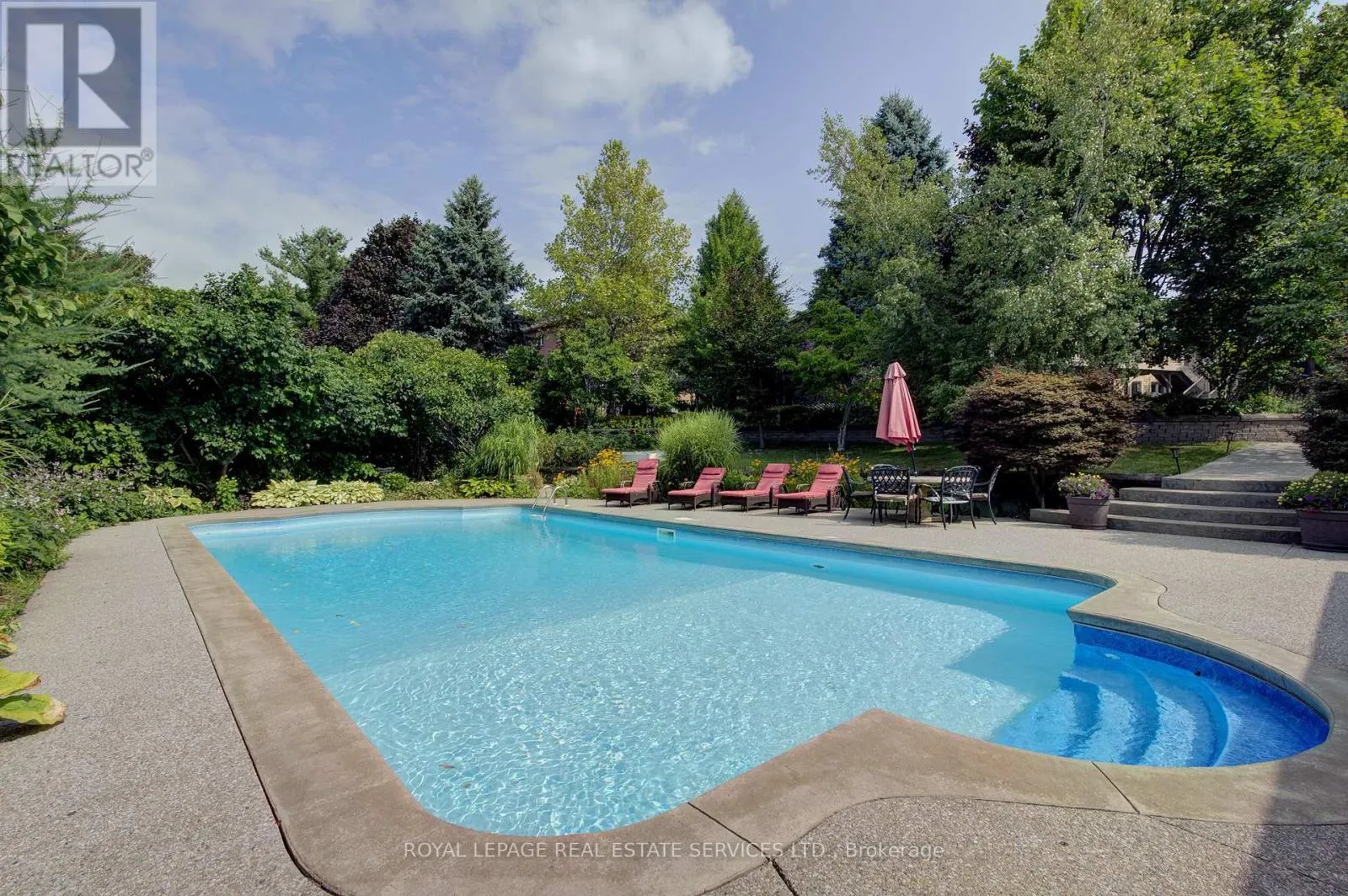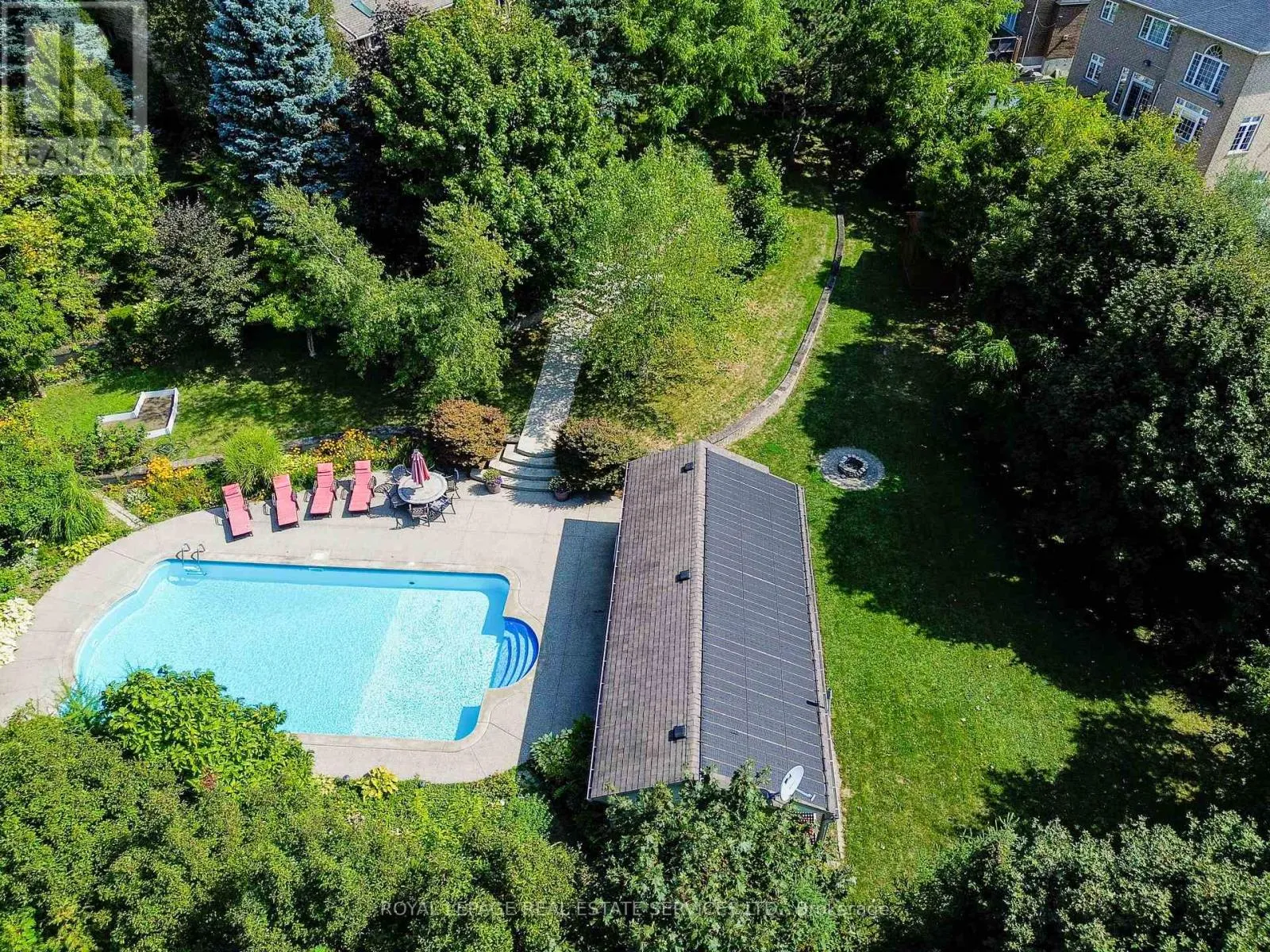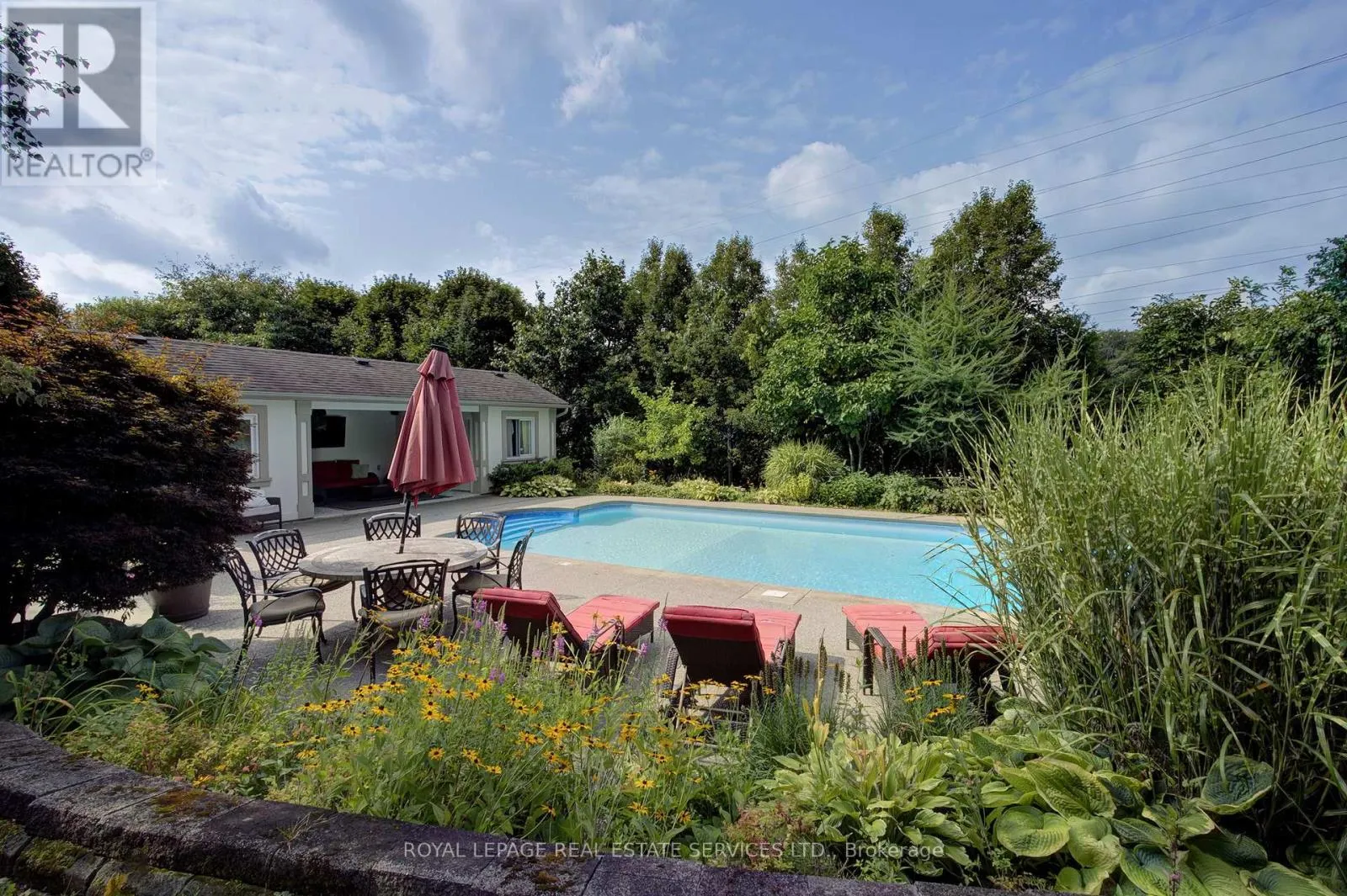 Cross Streets: Lincoln M. Alexander Pkwy / Stone Church Rd. ** Directions: Stone Church Rd. / Omni Blvd. / Upper Horning Rd. / Susan Dr. to Elodia Crt. Welcome to 59 Elodia Crt, a customized estate residence just steps from prestigious Meadowlands! This executive home is ideally located at the end of exclusive Elodia Court, nestled on a ravine-lined, 3-tiered, 0.7-acre Muskoka-like setting. The photos simply don't do this spectacular property justice! With commanding curb appeal and a circular driveway, this home exudes class and elegance. Offering approx. 7,600sf of refined living space across 3 levels, it is filled with natural light and boasts ravine views from every window. The main level features expansive principal rooms, both formal and open concept, along with an updated chef's kitchen outfitted with professional-grade built-in appliances & an oversized pantry wall in the breakfast area. Notable main floor highlights include richly stained hardwood floors, a grand oak staircase, imported solid surface counters & tiles, custom millwork, intricate trim & plaster detailing, skylights, and unique architectural accents. The 2nd level offers 4 oversized bedrooms, including a luxurious primary retreat with a spa-like ensuite and a walk-in dressing room. 3 fully remodeled bathrooms provide a fresh, contemporary feel. The recently renovated lower-level walkout presents a spacious rec room, games room with custom servery, 5th bedroom, a children's playroom, abundant storage & convenient service stairs to the garage. The one-of-a-kind, multi-tiered backyard must be seen to be truly appreciated, featuring a custom Trex deck, stamped concrete patios & walkways, a relaxing hot tub, and a Tuscan-inspired 20'x40' pool. The custom pool house cabana is complete with solar heating, a fire pit and a storage shed - all surrounded by manicured landscaping and total ravine privacy. Notable upgrades include furnace 2025, basement 2017, bathrooms 2020-2022 w/ heated floors, pool/cabana 2010 - updated 2022, roof 2016, windows 2010-2014. Minutes from Canadas top private schools, major highways and all the charm Ancaster has to offer! (id:27476)