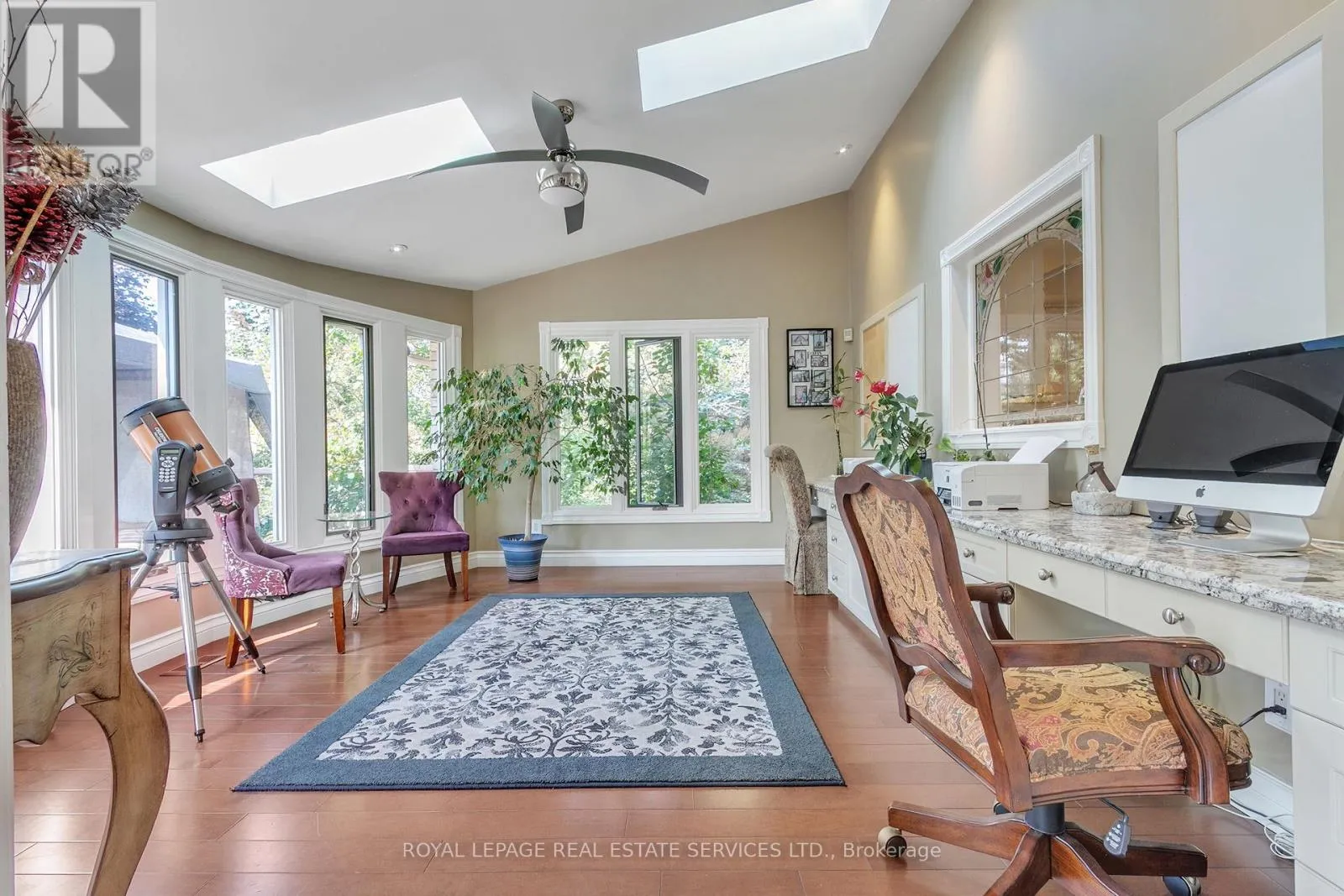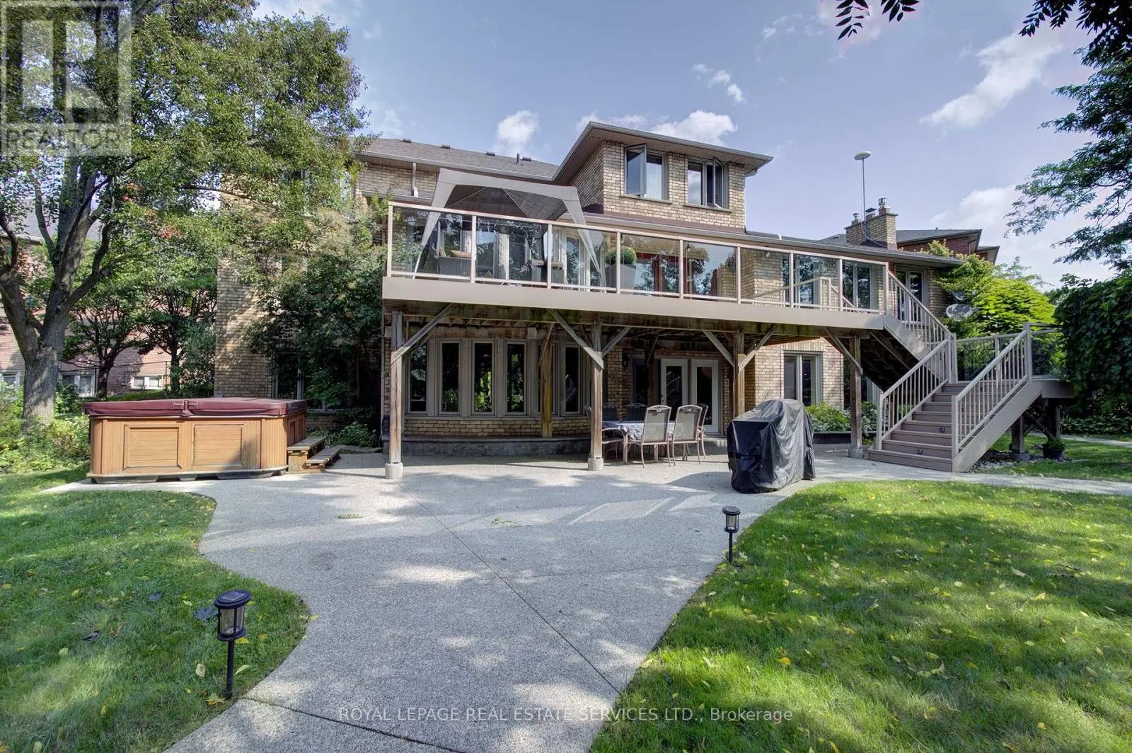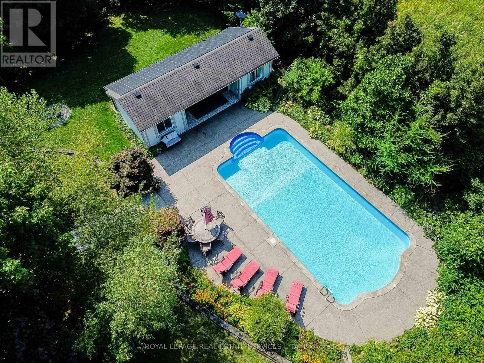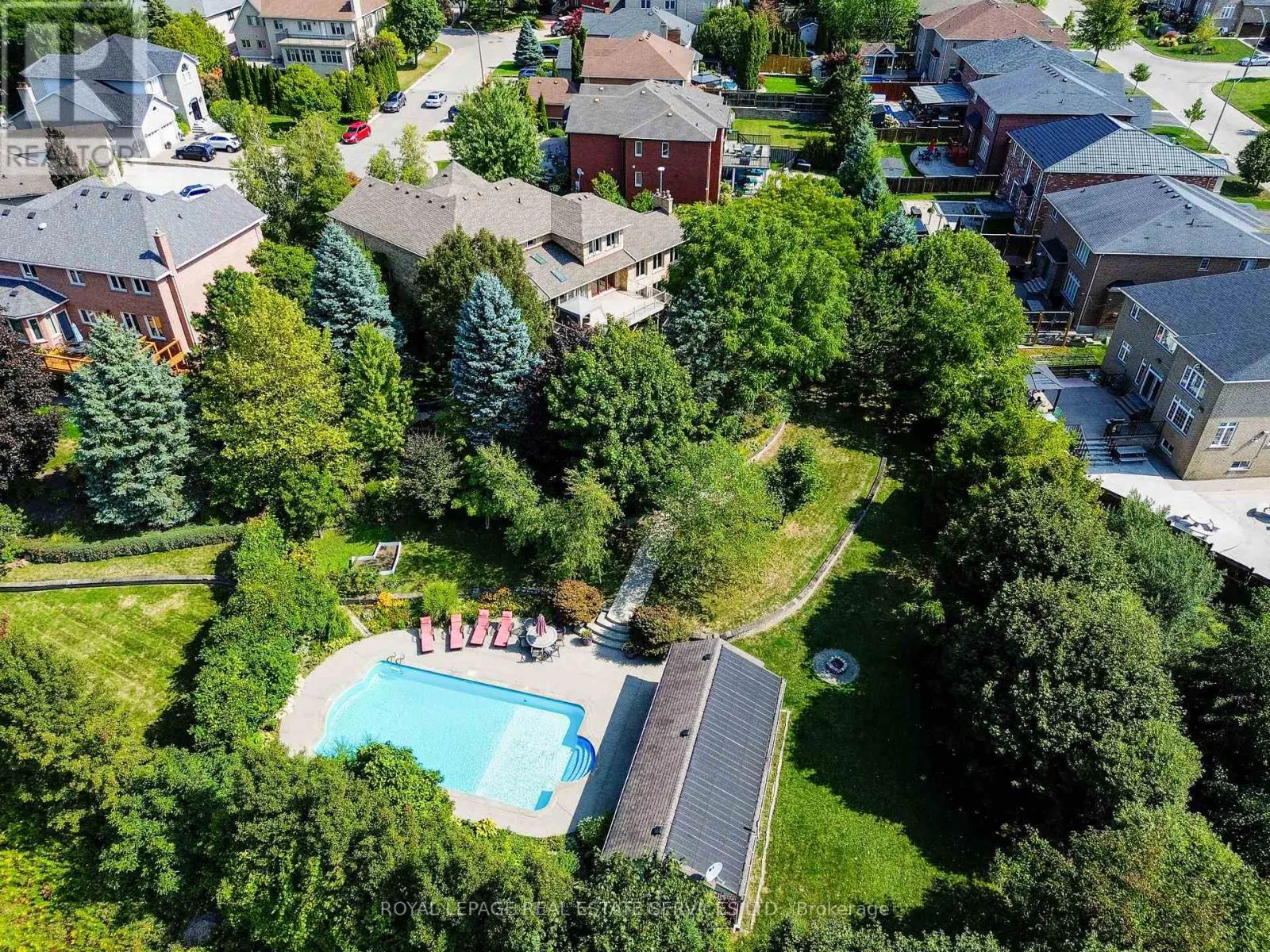Cross Streets: Lincoln M. Alexander Pkwy / Stone Church Rd. ** Directions: Stone Church Rd. / Omni Blvd. / Upper Horning Rd. / Susan Dr. to Elodia Crt. Welcome to 59 Elodia Crt, a customized estate residence just steps from prestigious Meadowlands! This executive home is ideally located at the end of exclusive Elodia Court, nestled on a ravine-lined, 3-tiered, 0.7-acre Muskoka-like setting. The photos simply don't do this spectacular property justice! With commanding curb appeal and a circular driveway, this home exudes class and elegance. Offering approx. 7,600sf of refined living space across 3 levels, it is filled with natural light and boasts ravine views from every window. The main level features expansive principal rooms, both formal and open concept, along with an updated chef's kitchen outfitted with professional-grade built-in appliances & an oversized pantry wall in the breakfast area. Notable main floor highlights include richly stained hardwood floors, a grand oak staircase, imported solid surface counters & tiles, custom millwork, intricate trim & plaster detailing, skylights, and unique architectural accents. The 2nd level offers 4 oversized bedrooms, including a luxurious primary retreat with a spa-like ensuite and a walk-in dressing room. 3 fully remodeled bathrooms provide a fresh, contemporary feel. The recently renovated lower-level walkout presents a spacious rec room, games room with custom servery, 5th bedroom, a children's playroom, abundant storage & convenient service stairs to the garage. The one-of-a-kind, multi-tiered backyard must be seen to be truly appreciated, featuring a custom Trex deck, stamped concrete patios & walkways, a relaxing hot tub, and a Tuscan-inspired 20'x40' pool. The custom pool house cabana is complete with solar heating, a fire pit and a storage shed - all surrounded by manicured landscaping and total ravine privacy. Notable upgrades include furnace 2025, basement 2017, bathrooms 2020-2022 w/ heated floors, pool/cabana 2010 - updated 2022, roof 2016, windows 2010-2014. Minutes from Canadas top private schools, major highways and all the charm Ancaster has to offer! (id:27476)