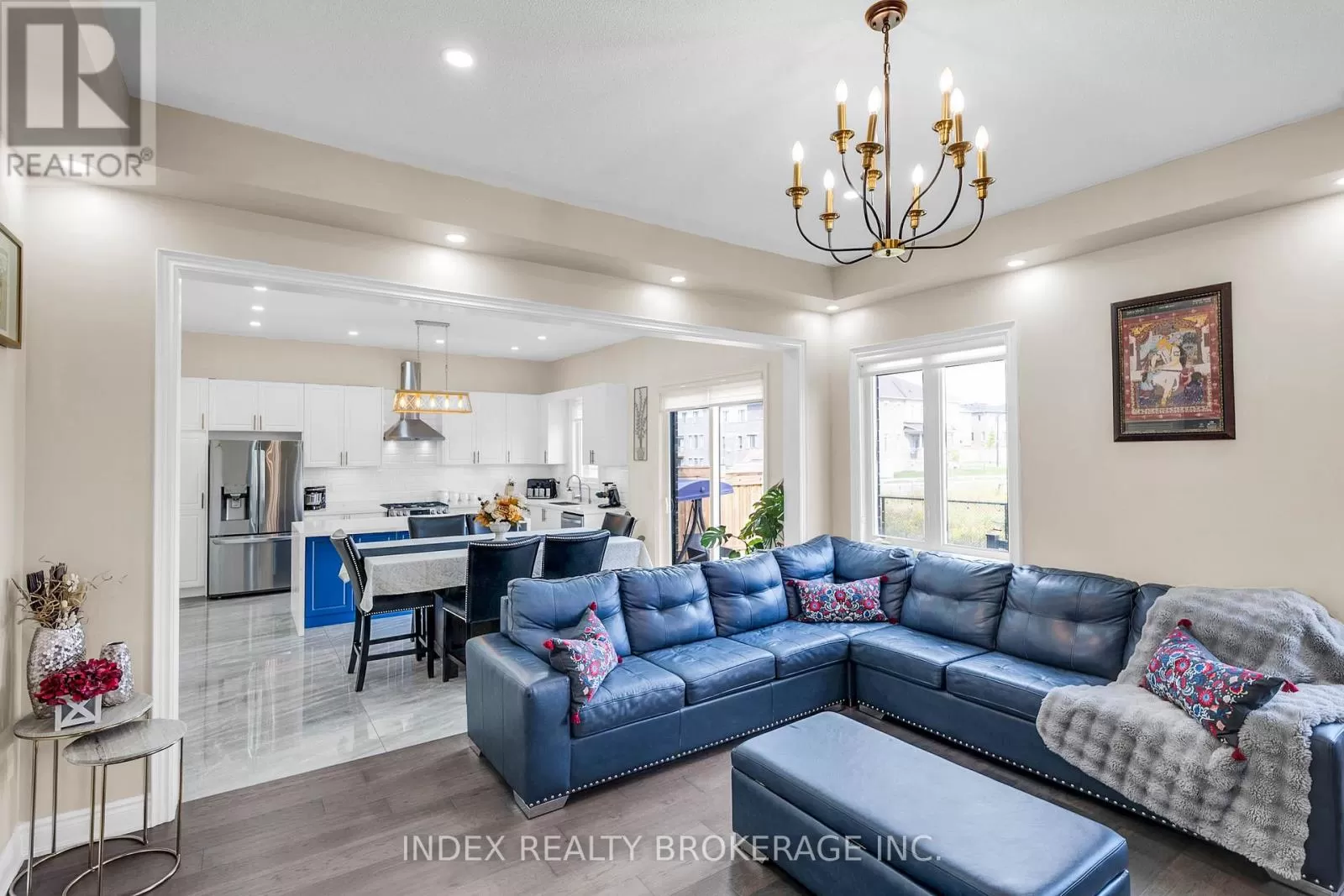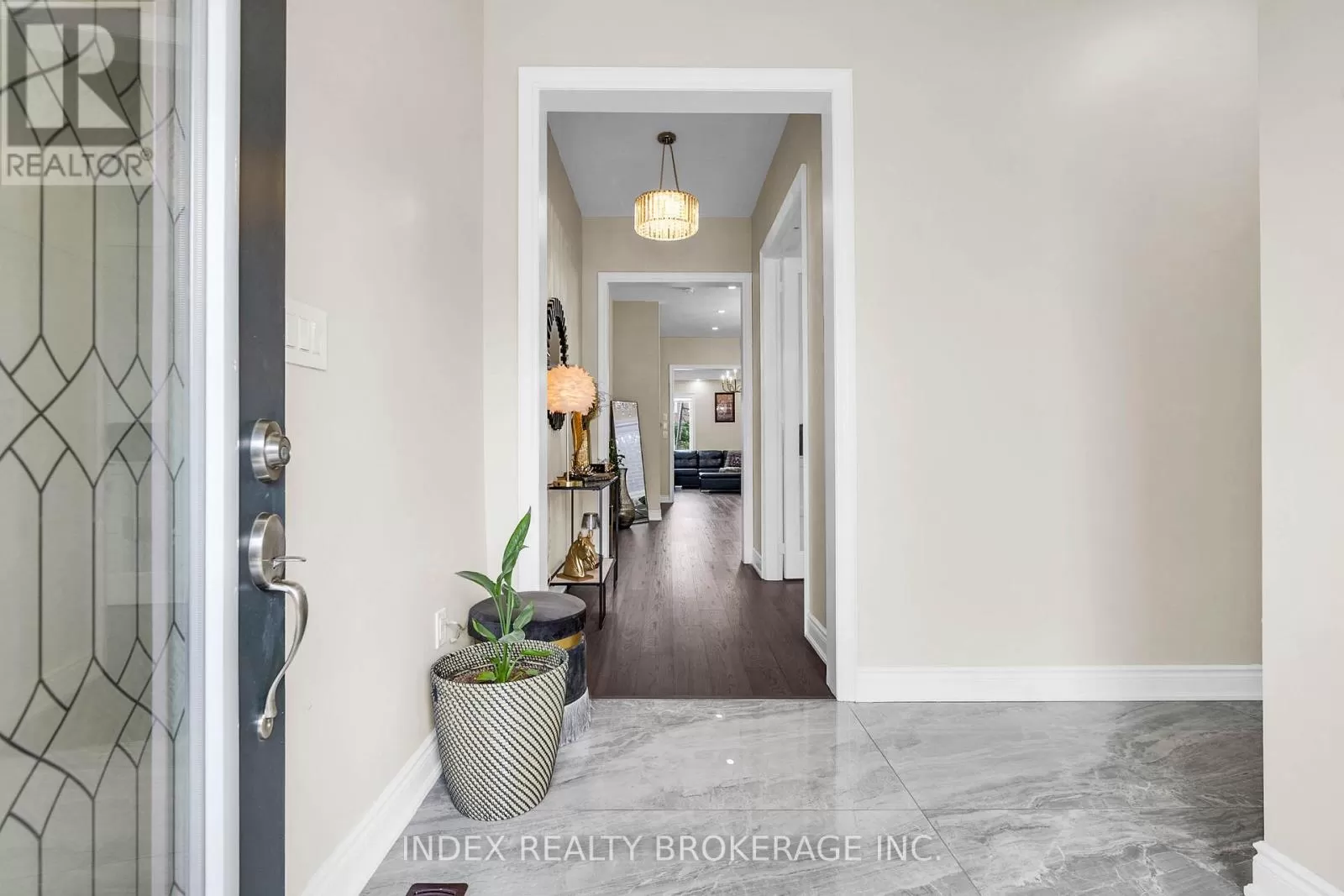 Great Falls Blvd & Granite Ridge Trail Welcome to this stunning modern elevation Greenpark built detached home in the desirable Waterdown community! This beautifully maintained 5-bedroom, 4-Bathroom home features a modern open-concept main floor with 10-ft ceilings, 60*60 tiles and 6 1/2 inch engineered hardwood flooring alongside 9-ftceiling on the 2nd floor that created an airy and spacious atmosphere throughout. Enjoy a large family and living area perfect for entertaining anda open-concept kitchen concept that has stainless steel appliances, quartz countertop, a large centre island with breakfast area and direct access to a private backyard. A elegant oak stained staircase leads to the carpet free second floor offering a luxurious primary bedroom with his and her spacious walk-in closets and 5-piece ensuite, while the other 4 bedrooms are generously sized with walk-in closets and access to astylish common bath. Additional highlights include bedroom-level laundry, an unfinished basement with 9-ft ceiling offers endless potential andproximity to top-rated schools, parks, shopping and transit. A must see family home in a vibrant, growing neighborhood! (id:27476)
