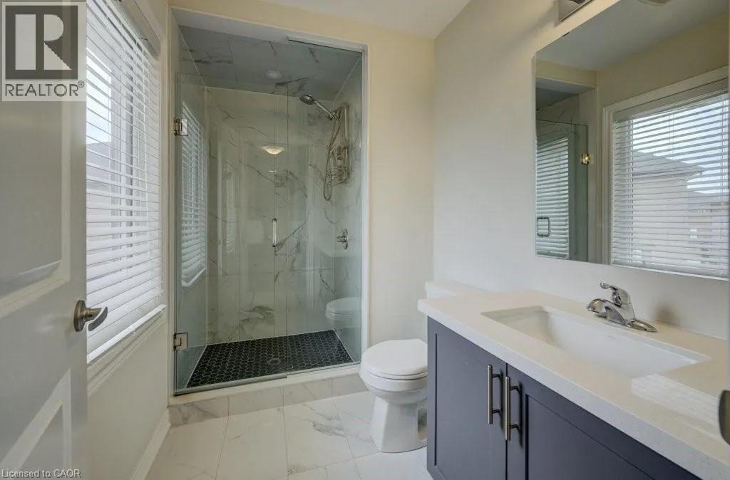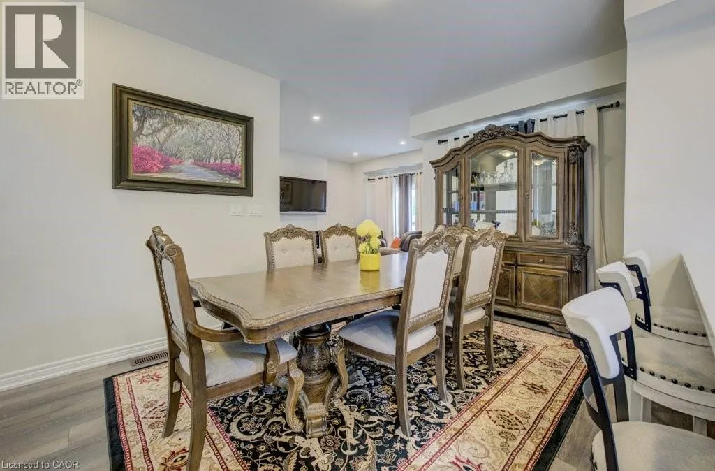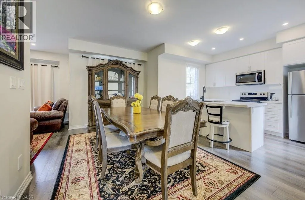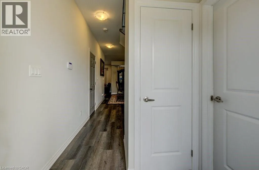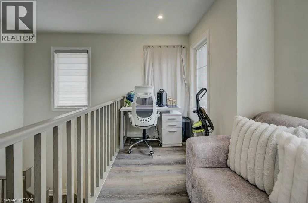 Upper James St to Regina Dr to DiCenzo Dr to 43 Genoa Dr OR from Stone Church Rd E, South on DiCenzo Dr., East on Genoa Dr to 43 Genoa Dr Beautiful end unit freehold townhome, new in 2024, NO condo fees. Custom townhome on extra large pie shape lot in Stonegate Community. Features magnificent stone and stucco architecture with beautiful front elevation with covered porch and faux balcony. Interior features soaring 9 foot ceilings on main level. Custom end unit floor plan with extra windows and bump out on all 3 levels for extra square footage made possible by wide and private pie shape lot. Open concept kitchen, large living room, chef's kitchen with cabints made wider and deeper for larger fridge, taller uppers cabinets, lower pots & pans drawers, peninsula with breakfast bar, Quorastone quartz countertops. This home is carpet free with beauiful and durable,modern vinyl plank floors. Bright upper level features 3 spacious bedrooms with larger windows, including primary bedroom with ensuite bath, walk-in closet plus bonus loft/office area. New owners get balance of Ontario New Home Warranty. Large basement with endless possibilites including rough-in extra bathroom plumbing and energy efficient features. Don't miss this fantastic home. (id:27476)