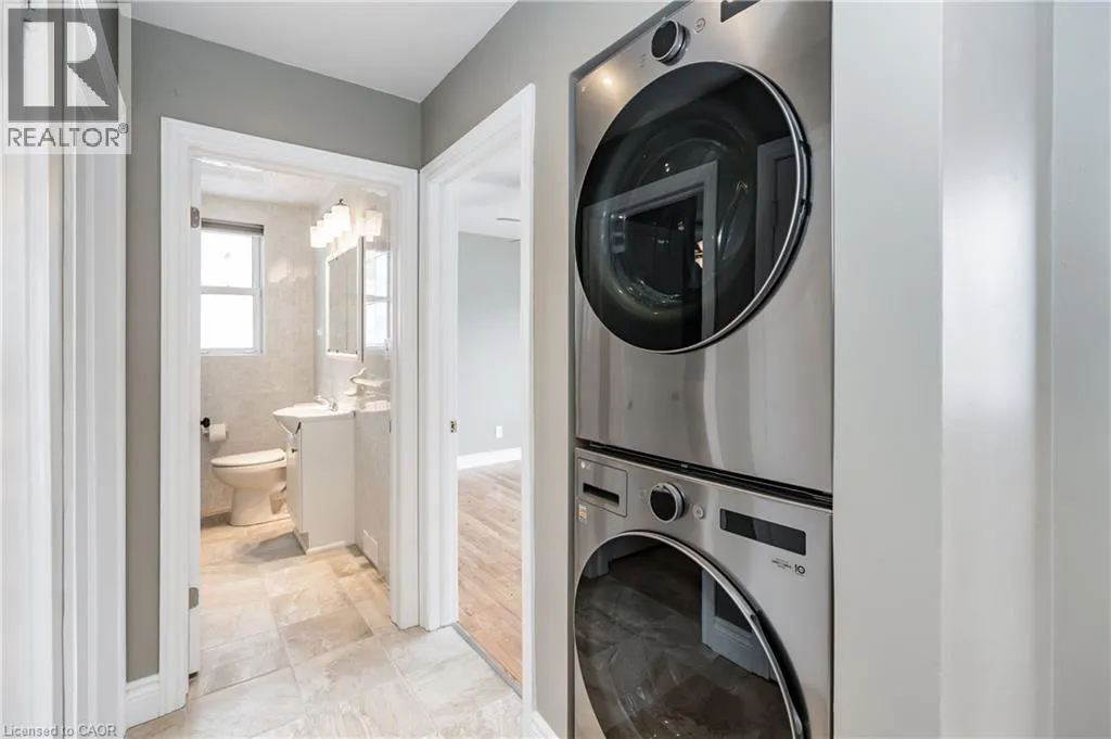 HWY 8 to King Street East Welcome home to King Street East! This updated 2 bed, 1 bath upper unit is located in Stoney Creek, Hamilton. Situated on a tremendously large lot, parking will never be an issue. This cozy main floor unit is bright and spacious with brand new in-suite laundry. Close to everything including shopping, schools, parks and more! Book your showing today. Upper tenant responsible for 60% of the Utilities. (id:27476)