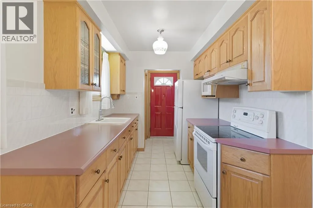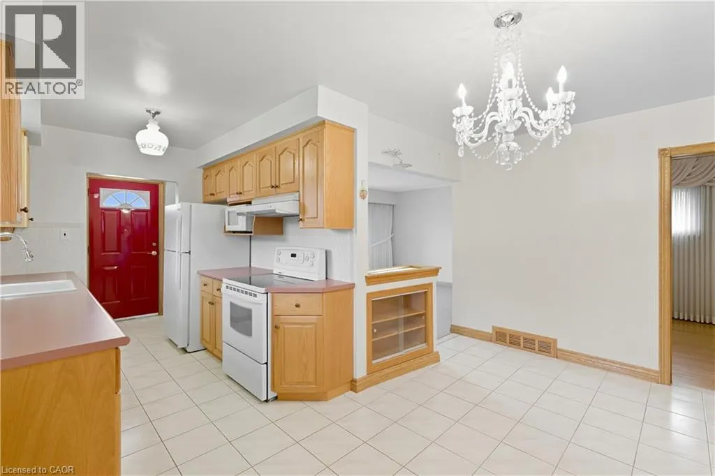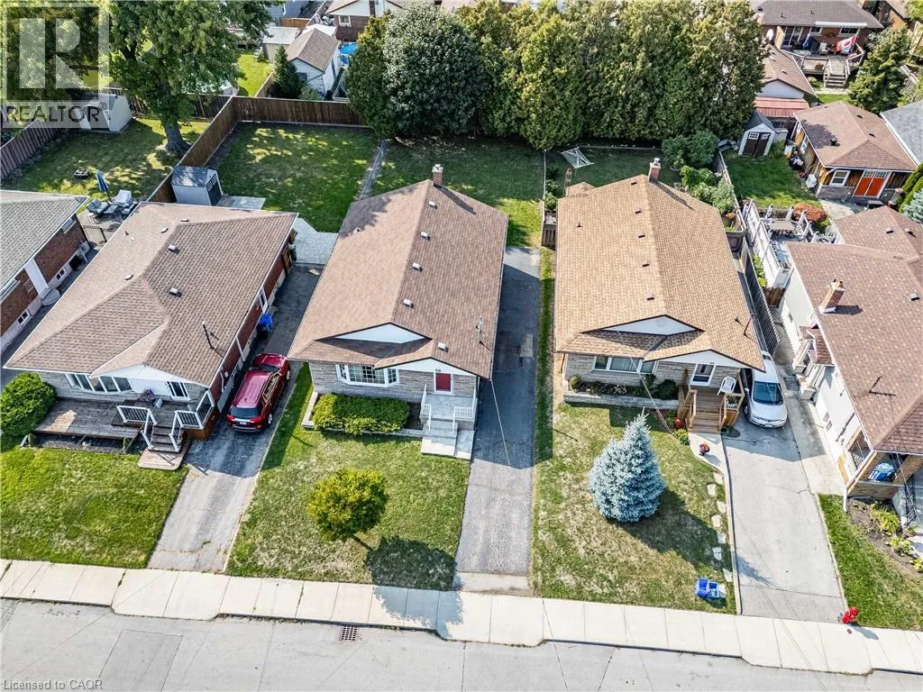 From Concession/Upper Wellington, S on Upper Wellington, E on Inverness Ave E, N on East 16th Welcome to this charming 3-bdrm, 2-bath bungalow in Hamiltonâs highly sought-after Inch Park neighbourhood. Situated on a 40' x 113' lot on the Hamilton Mountain, this home offers curb appeal with its mainly all-brick exterior, surfaced driveway for 3+ vehicles, & a welcoming front porch. Built in '58 and lovingly maintained by the same family for over 6 decades, it is a rare opportunity to own a property with both character and pride of ownership. Step inside to find a bright and inviting main level. The foyer, complete with a storage closet, leads into a spacious living room with a sun-filled oversized bay window and recently installed broadloom. A galley-style kitchen pairs functionality with charm, while the separate dining area provides the perfect setting for family meals and gatherings. The bedroom wing offers a generous primary bedroom and two additional bedrooms, each finished with hardwood flooring. A well-appointed 4-pc bath completes this level. A bonus side exterior door provides convenient access to the lower level, offering excellent potential for a variety of purposes. The partially finished lower level features an oversized recreation room highlighted by a cozy corner gas fireplace, a den, a 3-piece bathroom with an oversized shower, a utility space, and an additional unspoiled utility room awaiting your personal touch. Notable updates include roof shingles, windows (both approx 15 years ago), and more, ensuring peace of mind for years to come. Located in Inch Park, this home enjoys one of Hamiltonâs most desirable and family-friendly communities. Known for its tree-lined streets, well-kept parks, and welcoming atmosphere, Inch Park offers excellent schools, quick access to the LINC and major highways, and is just minutes to downtown Hamilton, the Juravinski Hospital, and trendy shops and dining along Concession Street. With public transit and every convenience close by, this location truly balances urban accessibility with suburban charm. (id:27476)