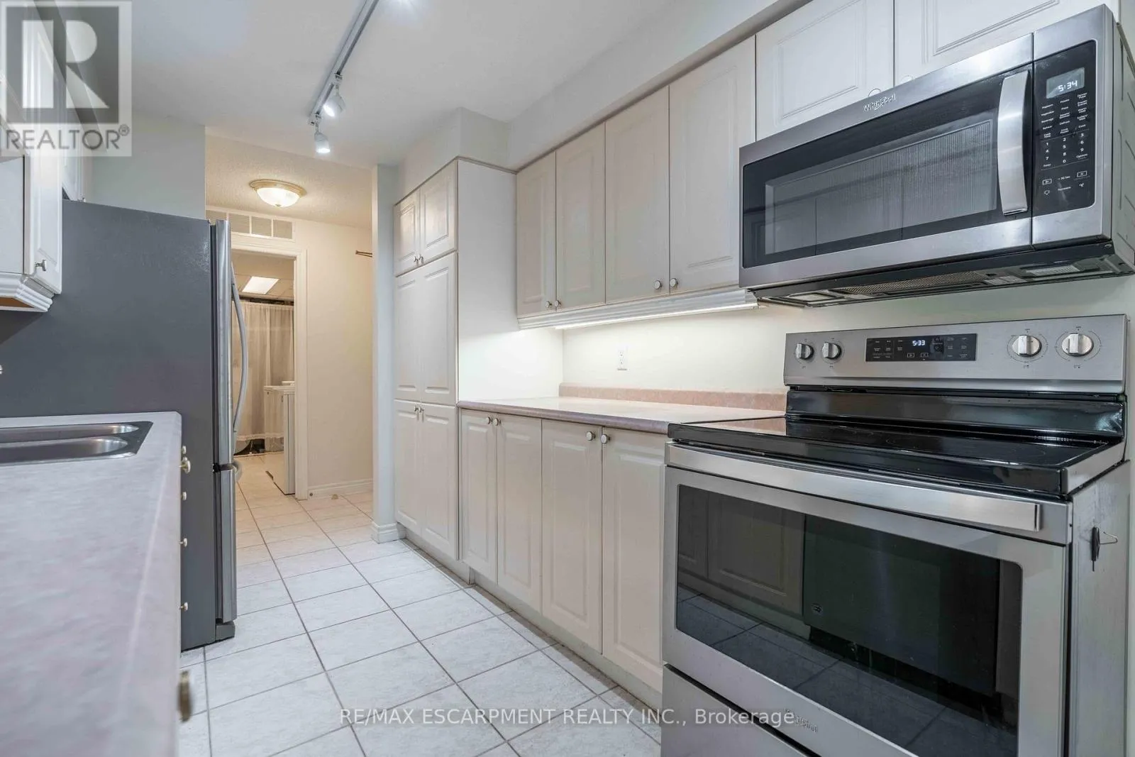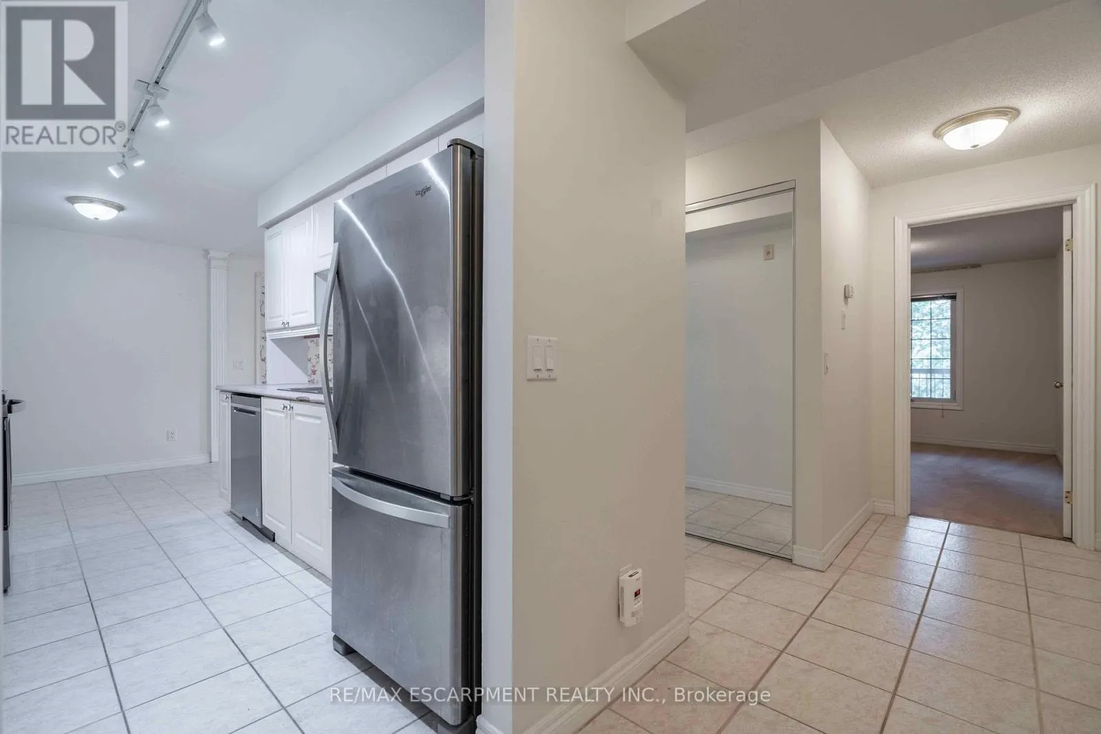 Golf Links Rd to Cloverleaf Spacious and bright, this 2-bedroom, 2-bath condo in the heart of Ancasters Meadowlands offers over 1,150 sq ft of comfortable living with a smart layout and plenty of natural light. The living room features a cozy gas fireplace and opens to a private balcony with a quiet treed view a rare, calming backdrop in the community. The primary bedroom includes a full ensuite with a soaker tub, while the second bathroom is finished with a walk-in shower. Freshly painted walls add a modern touch, with plenty of room to personalize. Set on the preferred second floor, this home provides a safe and accessible option for downsizers and retirees alike. The well-managed building includes an underground parking space with a private storage locker located directly behind, as well as amenities such as a car wash bay, workshop, seasonal storage, party room, gazebo, and ample visitor parking. A walking path just steps from the property leads to a landscaped reservoir area with trails and greenery, perfect for a morning walk or evening stroll. Condo fees conveniently include water, building insurance, and all exterior maintenance. Located just steps from shops, restaurants, Costco, Shoppers Drug Mart, and more, this condo combines everyday convenience with peace and quiet an excellent opportunity in a highly sought-after Ancaster location. (id:27476)