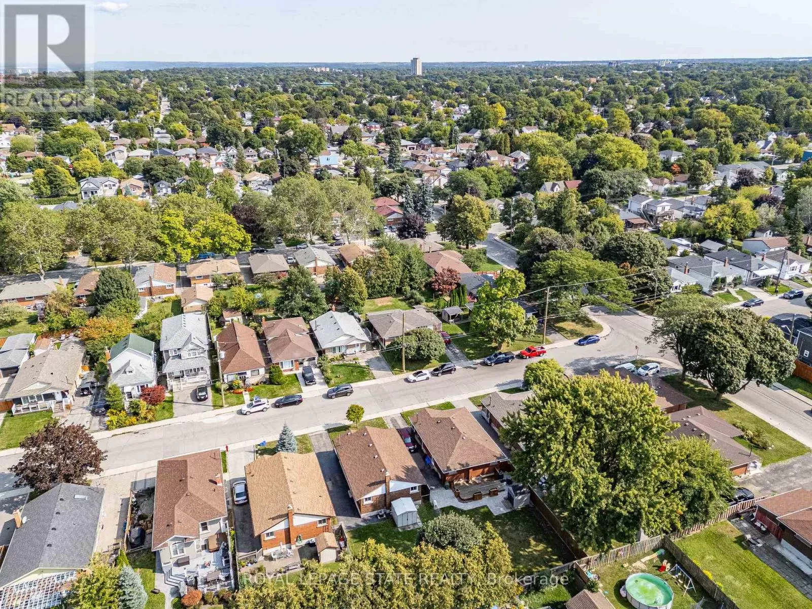 Cross Streets: Inverness Avenue East. ** Directions: From Concession/Upper Wellington, S on Upper Wellington, E on Inverness Ave E, N on East 16th. Welcome to this charming 3-bdrm, 2-bath bungalow in Hamiltons highly sought-after Inch Park neighbourhood. Situated on a 40' x 113' lot on the Hamilton Mountain, this home offers curb appeal with its mainly all-brick exterior, surfaced driveway for 3+ vehicles, & a welcoming front porch. Built in '58 and lovingly maintained by the same family for over 6 decades, it is a rare opportunity to own a property with both character and pride of ownership. Step inside to find a bright and inviting main level. The foyer, complete with a storage closet, leads into a spacious living room with a sun-filled oversized bay window and recently installed broadloom. A galley-style kitchen pairs functionality with charm, while the separate dining area provides the perfect setting for family meals and gatherings. The bedroom wing offers a generous primary bedroom and two additional bedrooms, each finished with hardwood flooring. A well-appointed 4-pc bath completes this level. A bonus side exterior door provides convenient access to the lower level, offering excellent potential for a variety of purposes. The partially finished lower level features an oversized recreation room highlighted by a cozy corner gas fireplace, a den, a 3-piece bathroom with an oversized shower, a utility space, and an additional unspoiled utility room awaiting your personal touch. Notable updates include roof shingles, windows (both approx 15 years ago), and more, ensuring peace of mind for years to come. Located in Inch Park, this home enjoys one of Hamiltons most desirable and family-friendly communities. Known for its tree-lined streets, well-kept parks, and welcoming atmosphere, Inch Park offers excellent schools, quick access to the LINC and major highways, and is just minutes to downtown Hamilton, the Juravinski Hospital, and trendy shops and dining along Concession Street. With public transit and every convenience close by, this location truly balances urban accessibility with suburban charm. (id:27476)