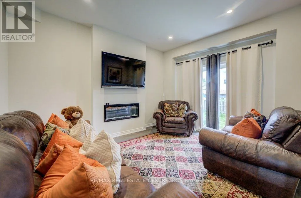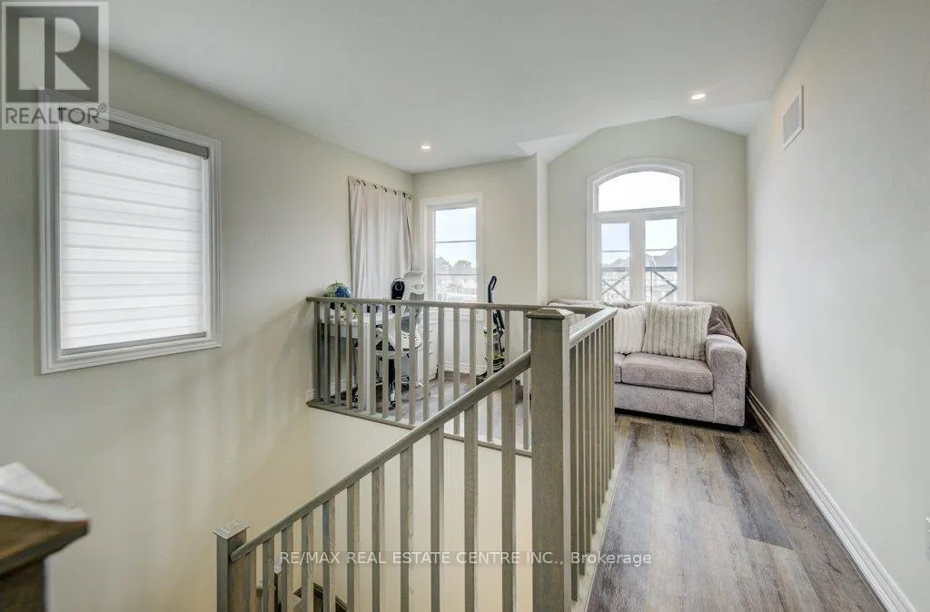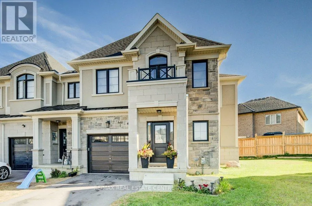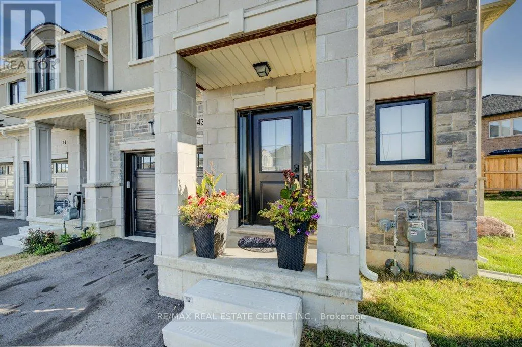 Cross Streets: DiCenzo Dr & Aquasanta. ** Directions: Upper James St to Regina Dr to DiCenzo Dr to 43 Genoa Dr OR from Stone Church Rd E, South on DiCenzo Dr., East on Genoa Dr to 43 Genoa Dr. Beautiful end unit freehold townhome, new in 2024, NO condo fees. Custom townhome on extra large pie shape lot in Stonegate Community. Features magnificent stone and stucco architecture with beautiful front elevation with covered porch and faux balcony. Interior features soaring 9 foot ceilings on main level. Custom end unit floor plan with extra windows and bump out on all 3 levels for extra square footage made possible by wide and private pie shape lot. Open concept kitchen, large living room, chef's kitchen with cabints made wider and deeper for larger fridge, taller uppers cabinets, lower pots & pans drawers, peninsula with breakfast bar, "Quorastone" quartz countertops. This home is carpet free with beauiful and durable,modern vinyl plank floors. Bright upper level features 3 spacious bedrooms with larger windows, including primary bedroom with ensuite bath, walk-in closet plus bonus loft/office area. New owners get balance of Ontario New Home Warranty. Large basement with endless possibilites including rough-in extra bathroom plumbing and energy efficient features. Don't miss this fantastic home. (id:27476)