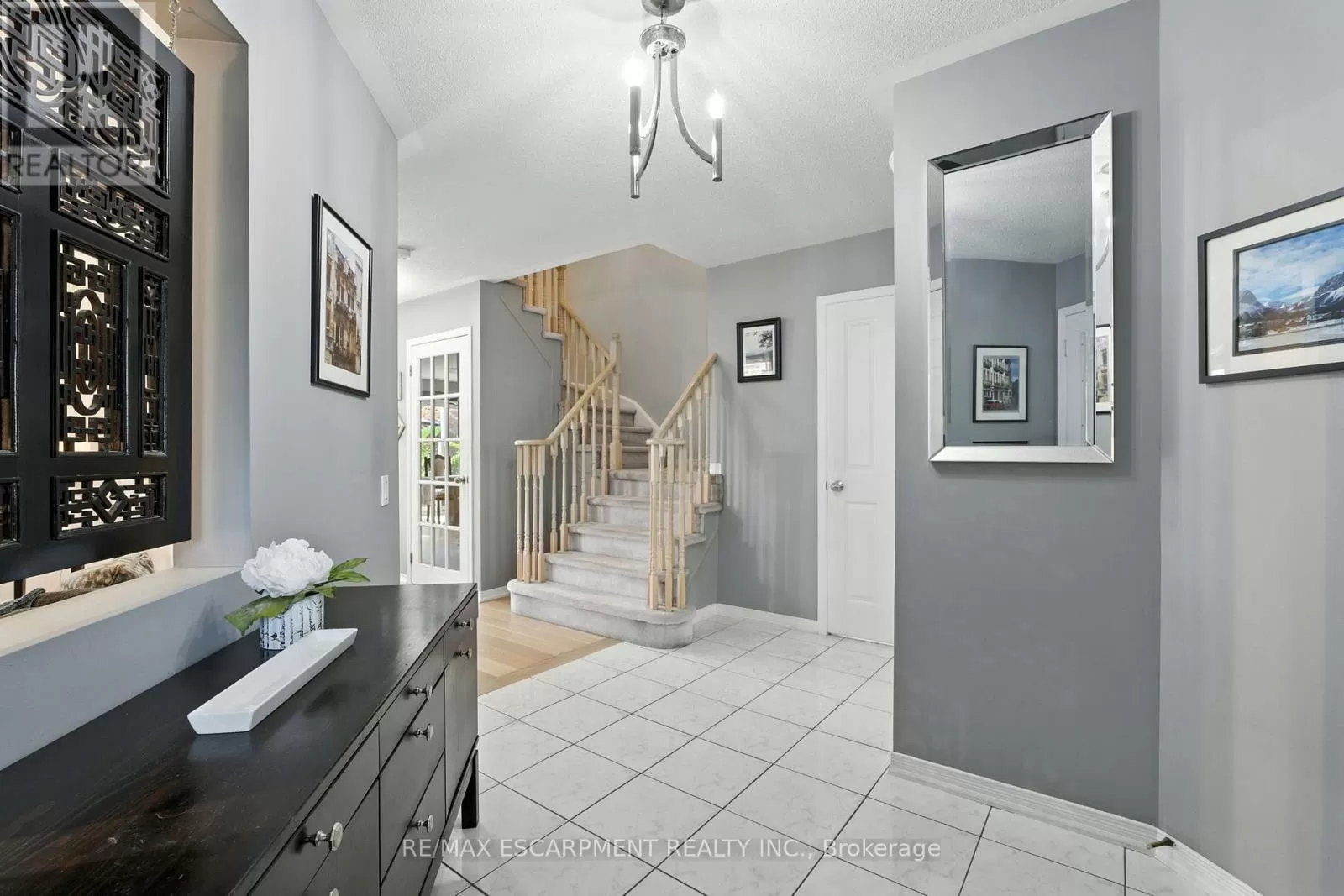 Cross Streets: Howlandmills Dr. ** Directions: Dundas St E to Howlandmills Dr to Grindstone Way. Experience tranquil living in this serene four-bedroom home in Waterdown, nestled near the escarpment and surrounded by peaceful nature. This home has been lovingly maintained by the same owners since being constructed. The modern, updated kitchen is equipped with stainless steel appliances and sleek black granite countertops. You'll love the built-in pantry with pull-out drawers and a convenient broom closet! Upstairs you'll find a generous primary suite with a four-piece ensuite, three additional bedrooms and a full guest bathroom. The property features a spacious, finished basement perfect for family fun or extra storage. Enjoy the fully fenced backyard which includes a composite deck, large pergola and no rear neighbours! With no carpets, the home boasts a clean, easy-to-maintain interior, blending comfort and style in a desirable family neighbourhood! (id:27476)
