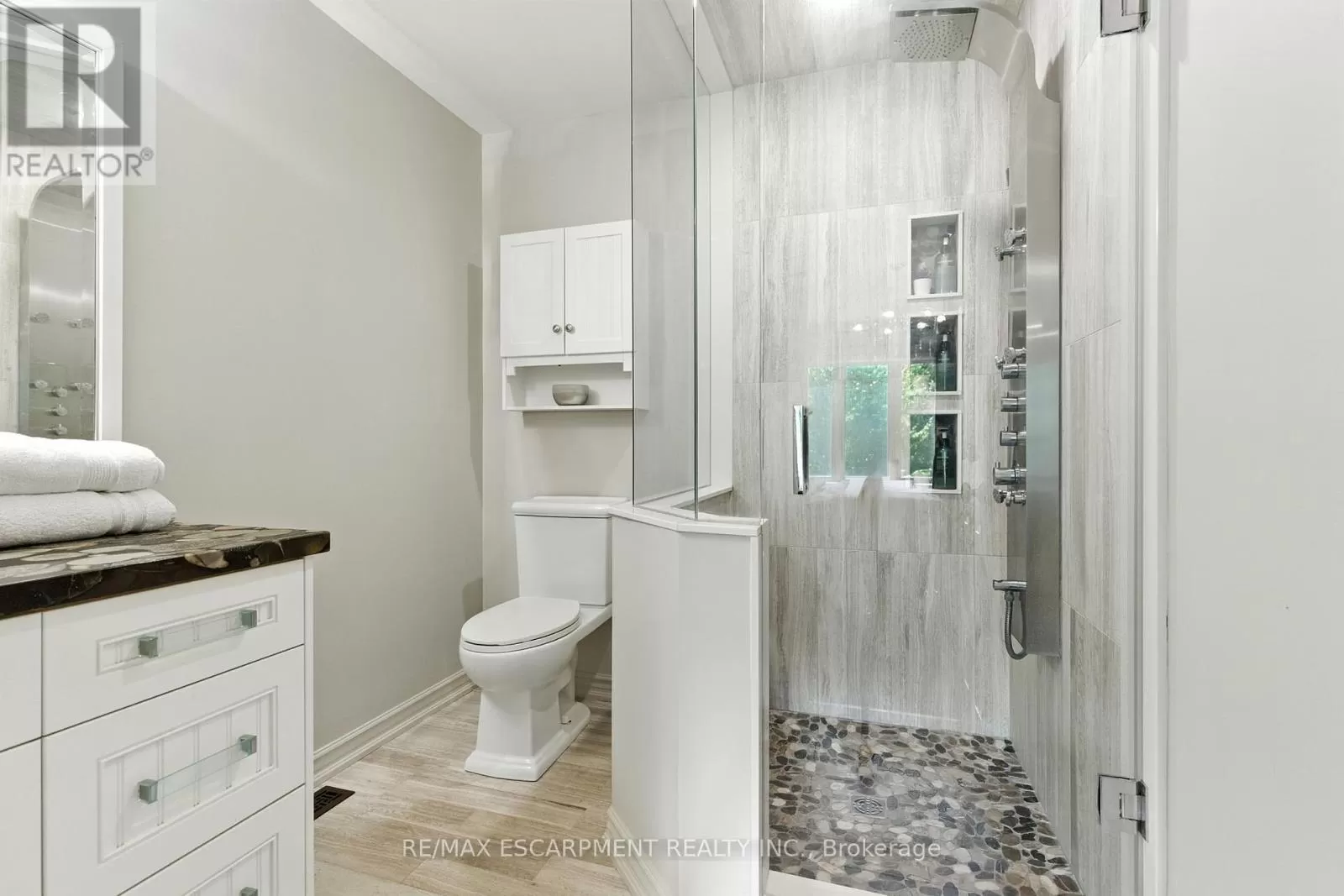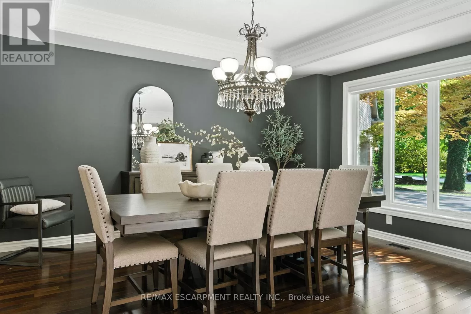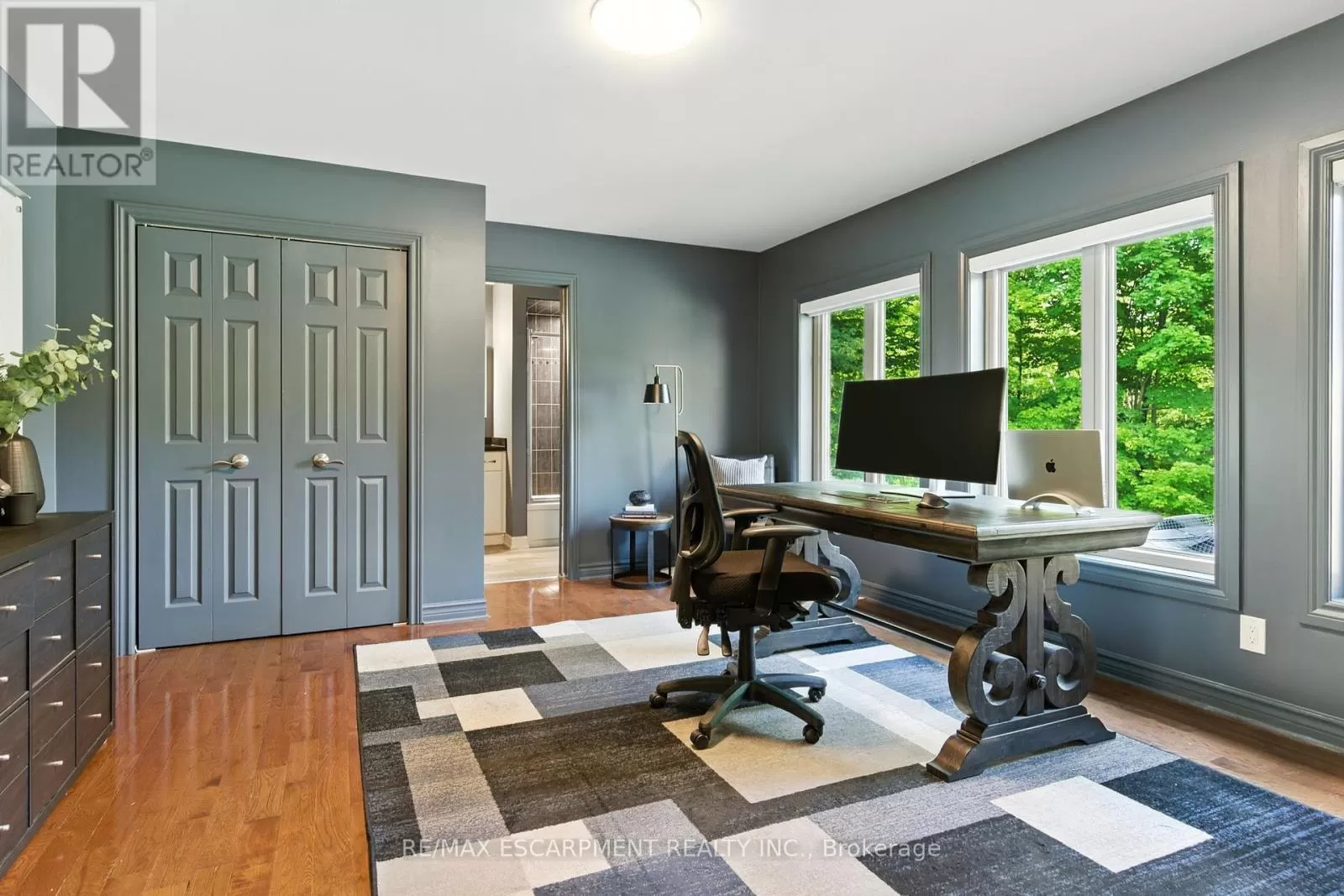Cross Streets: CARLISLE RD & CENTRE RD. ** Directions: Carlisle Rd and Centre Rd. Timeless elegance awaits in the heart of Carlisle. This extraordinary estate blends refined sophistication with European charm, offering a lifestyle defined by comfort, craftsmanship, and distinction. From the moment you enter, you're greeted by soaring ceilings, rich stone accents, and a stunning great room with intricate beamed detailing. The chefs kitchen exudes traditional warmth, featuring top-of-the-line built-in appliances and thoughtful design for both everyday living and entertaining. At the heart of the home lies a vast Betz indoor pool and spa, framed by expansive windows that invite natural light and showcase serene views. The main floor also includes a tranquil primary suite oasis, designed for ultimate relaxation. Upstairs, four generously sized bedrooms are complemented by three full ensuites and a convenient laundry room, offering space and privacy for family and guests alike. The grand custom staircase leads to a fully finished lower level, complete with a kitchenette, wine tasting room, spacious recreation area, a fabulous gym, a three-piece bath, and an additional bedroom or flexible living space. Set on a breathtaking two-acre property surrounded by mature trees, this home offers a private composite deck perfect for enjoying morning coffee or evening cocktails in peaceful seclusion. A heated four-car garage adds practicality and luxury to the package. This is more than a home - its a true cottage alternative, combining rural tranquility with refined living. Lets get you home! (id:27476)