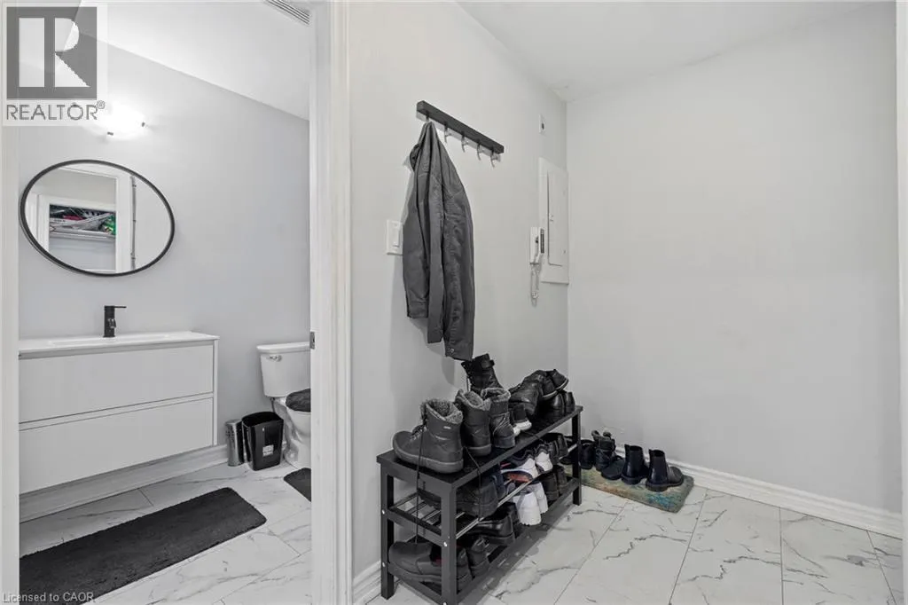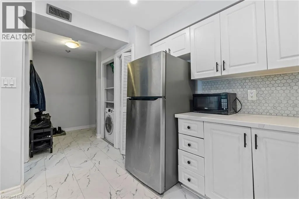 King Street E, left on Victoria Ave N. The main floor condo is all about simplicity, comfort, and connection. The bright, open layout with large windows and pot lights gives the space a welcoming, modern vibe , the kind you'll actually look forward to coming home to. The kitchen balances style and practicality with stainless steel appliances, a tile backsplash, and an undermount sink, while in-suite laundry, parking and a storage locker keep life running smoothly. The building itself is secure and well cared for, with monitored cameras, a new fence and a refreshed entrance. Efficient heating and cooling means you'll stay comfortable year-round without fuss. And when you step outside, everything you need is at your doorstep - Hamilton General, West Harbour GO, restaurants, shops and daily conveniences are all within walking distance. It's the kind of place where you can trade long commutes and high maintenance for more time enjoying the city around you. Whether you're a first time buyer, an investor, or just ready for easy living in a central, walkable neighbourhood, this condo is a smart move. (id:27476)