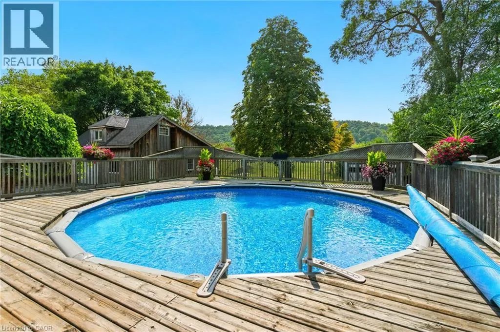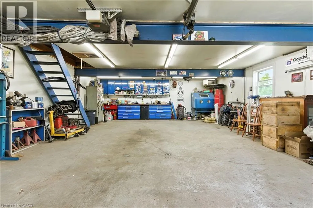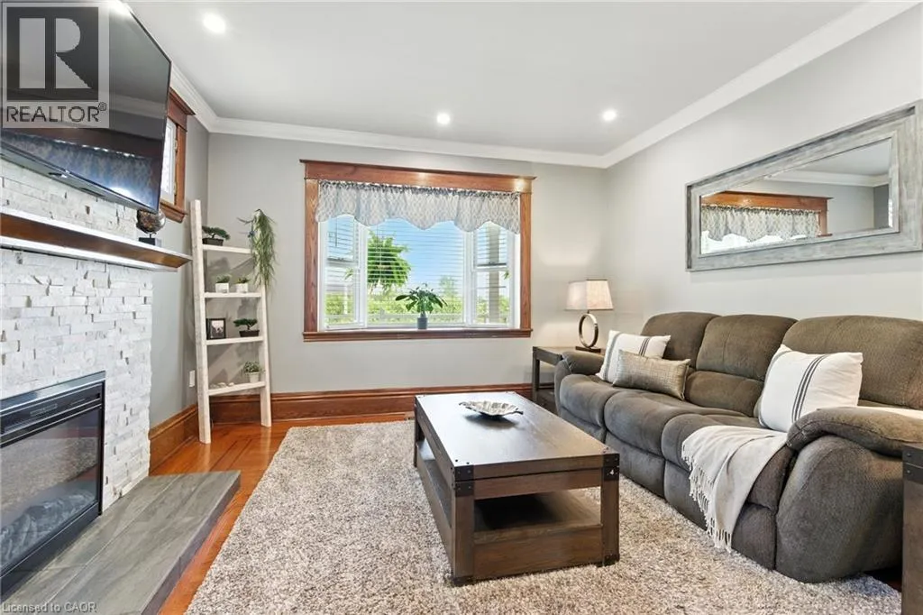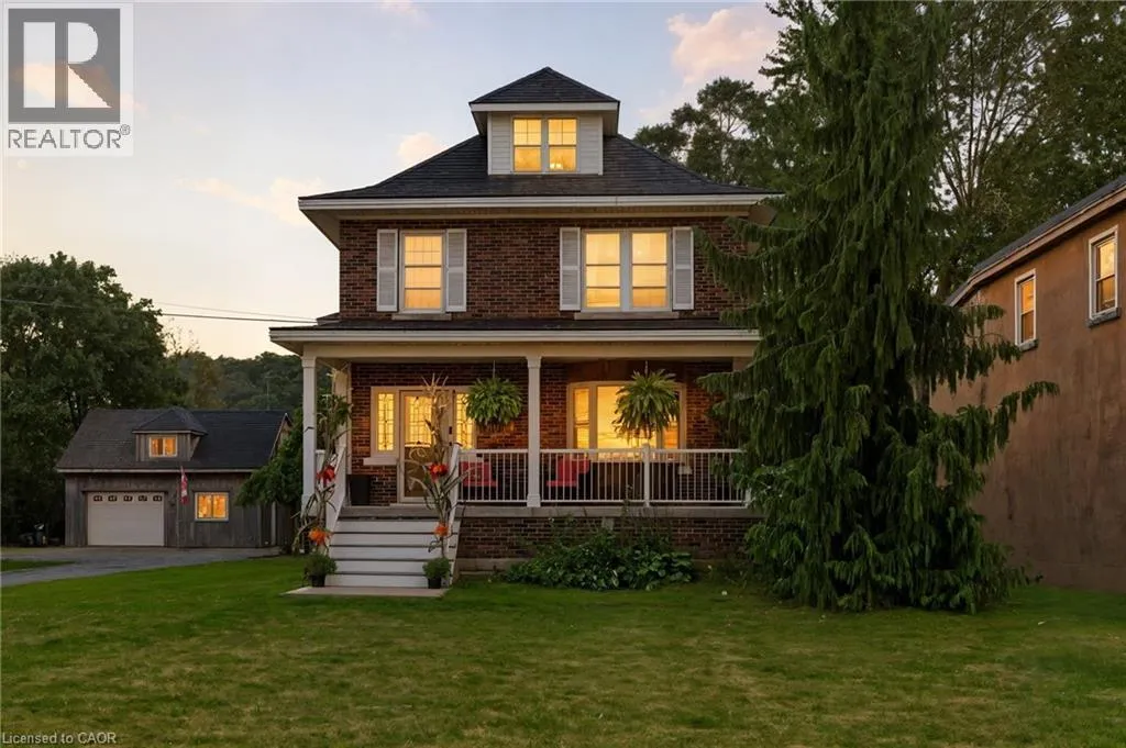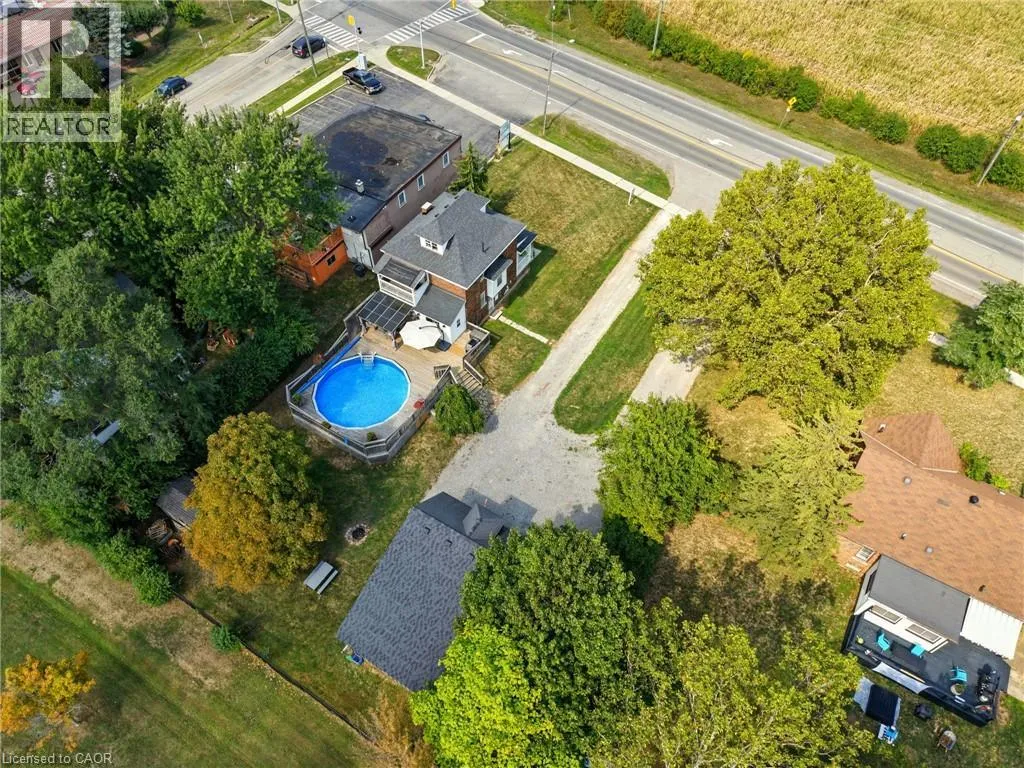 on Highway 8 at Glover Road Welcome to this charming 2.5-storey brick home in the heart of Winona! Set on a beautifully landscaped 0.36-acre lot this property offers a peaceful country vibe with all the conveniences of being close to major amenities. Enjoy summers in your private backyard oasis complete with an above-ground pool, lounge area, and outdoor entertainment zoneâperfect for watching the game or a movie under the stars. The detached double garage/workshop is ideal for hobbyists or extra storage, fully equipped with propane heat, hydro, and a loft. Inside, vintage character meets modern comfort with rich wood trim, stained glass accents, vintage doorknobs and a stately staircase. The cozy living room features an electric fireplace, and the recently finished lower level includes a stylish 3-piece bathâgreat for guests or extra living space. The partially finished attic offers endless possibilities as a bright home office or fun kidsâ playroom. Steps to an elementary school and minutes to the highway, this location will make everyone's daily commute hassle free! Stroll next door for farm-fresh produce each day and soak in the relaxed charm of country living where a simpler way of life meets everyday comfort. (id:27476)