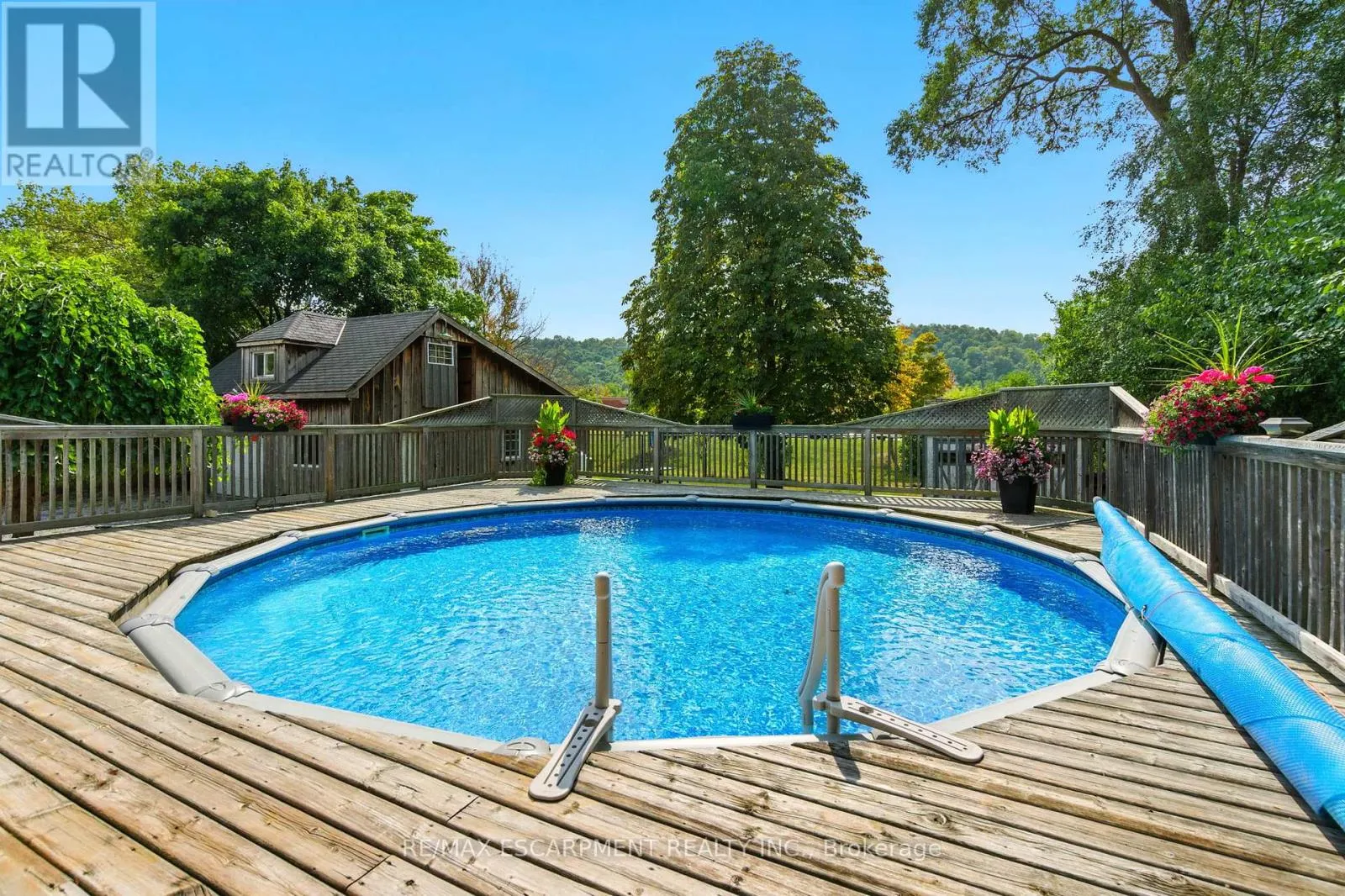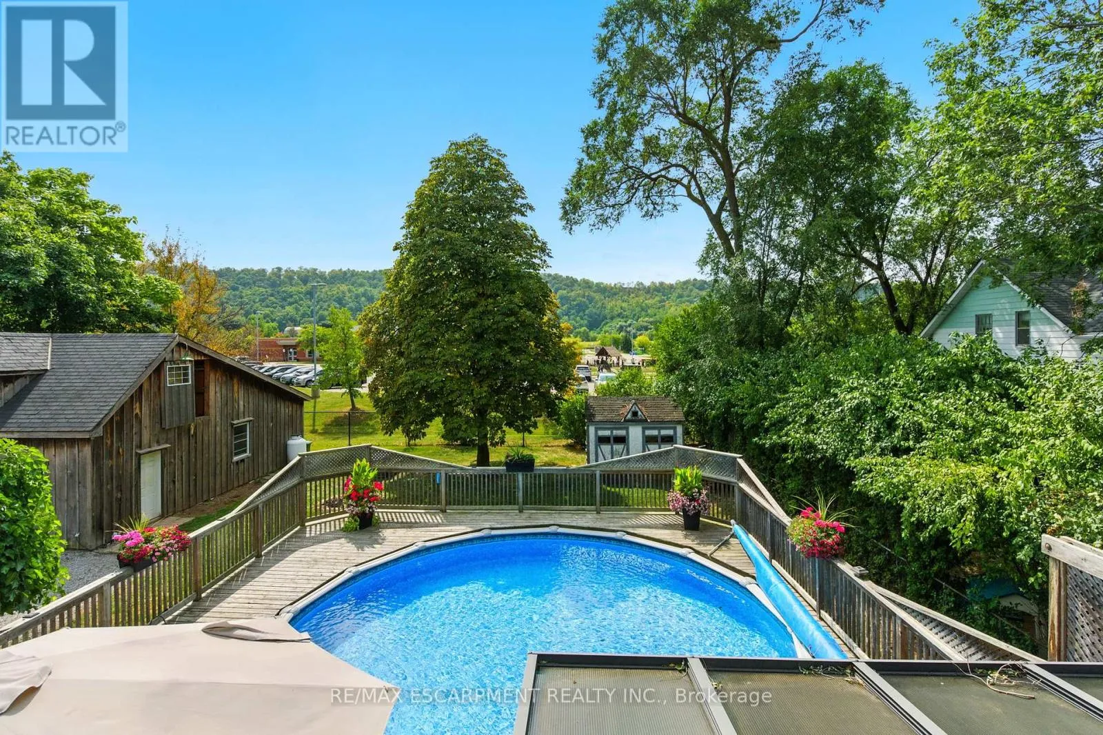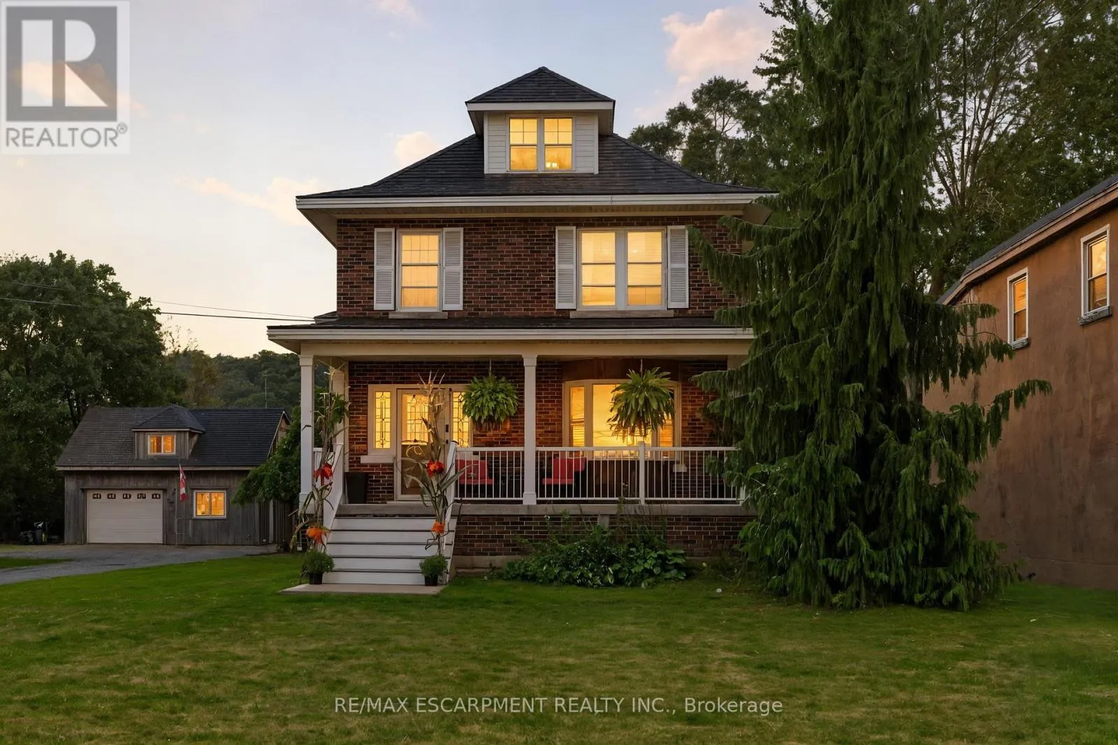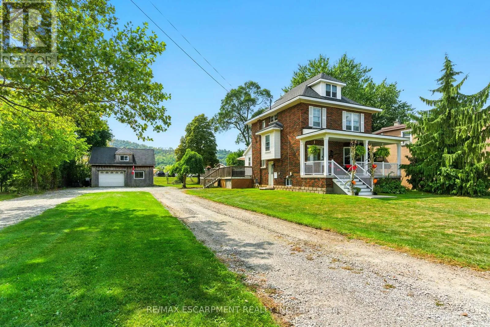 Cross Streets: Hwy 8 and Glover Road. ** Directions: Highway 8 and Glover Road. Welcome to this charming 2.5-storey brick home in the heart of Winona! Set on a beautifully landscaped 0.36-acre lot this property offers a peaceful country vibe with all the conveniences of being close to major amenities. Enjoy summers in your private backyard oasis complete with an above-ground pool, lounge area, and outdoor entertainment zone perfect for watching the game or a movie under the stars. The detached double garage/workshop is ideal for hobbyists or extra storage, fully equipped with propane heat, hydro, and a loft. Inside, vintage character meets modern comfort with rich wood trim, stained glass accents, vintage doorknobs and a stately staircase. The cozy living room features an electric fireplace, and the recently finished lower level includes a stylish 3-piece bath great for guests or extra living space. The partially finished attic offers endless possibilities as a bright home office or fun kids playroom. Steps to an elementary school and minutes to the highway, this location will make everyone's daily commute hassle free! Stroll next door for farm-fresh produce each day and soak in the relaxed charm of country living where a simpler way of life meets everyday comfort. (id:27476)