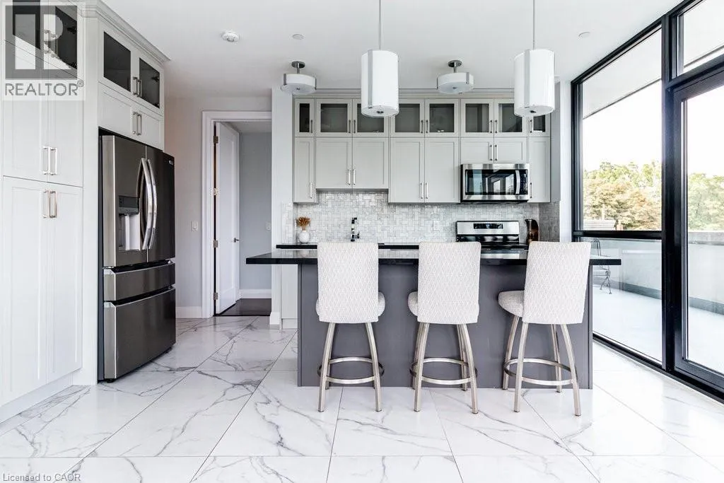 Locke Street between Main & Aberdeen. Welcome to The Martin, one of 101 Locke's Largest Floor Plans with 918 sq. ft. of Luxury Living Space, with an additional 545 sq. ft. of Personal, Private Outdoor Space, the largest balcony in the entire building! This 2 Bedroom, 2 Full Bathroom unit includes 1 Underground Parking spot & a large Storage Locker. With N/E Exposure and Floor to Ceiling windows, you get the perfect amount of natural light. Upgraded with matte large format tiles, ceiling height kitchen cupboards with glass display cabinets & a large island, quartz countertops, coffered bedroom ceilings with hardwood floors, custom shower glass door, and upgraded trim & door package, you can feel the quality of finishings through-out. Both Bedrooms and livingroom have access to your large, wrap-around balcony, with loads of space for multiple seating areas. Skirted with a gorgeous concrete railing, you'll have privacy from the street and beautiful sunsrise views. The building's amenities are just an added bonus to this unit, with a gorgeous rooftop lounge and bar with panoramic city views, TV's, ping-pong table, fully-equipped gym, sauna, outdoor pilates deck, and a large outdoor patio with gas fireplace, BBQ's, high tops, dining tables and plenty of comfy seating options. Main floor amenities include a secured bicycle room and yes, a dog wash! Make Unit 312 Your Home Today! (id:27476)