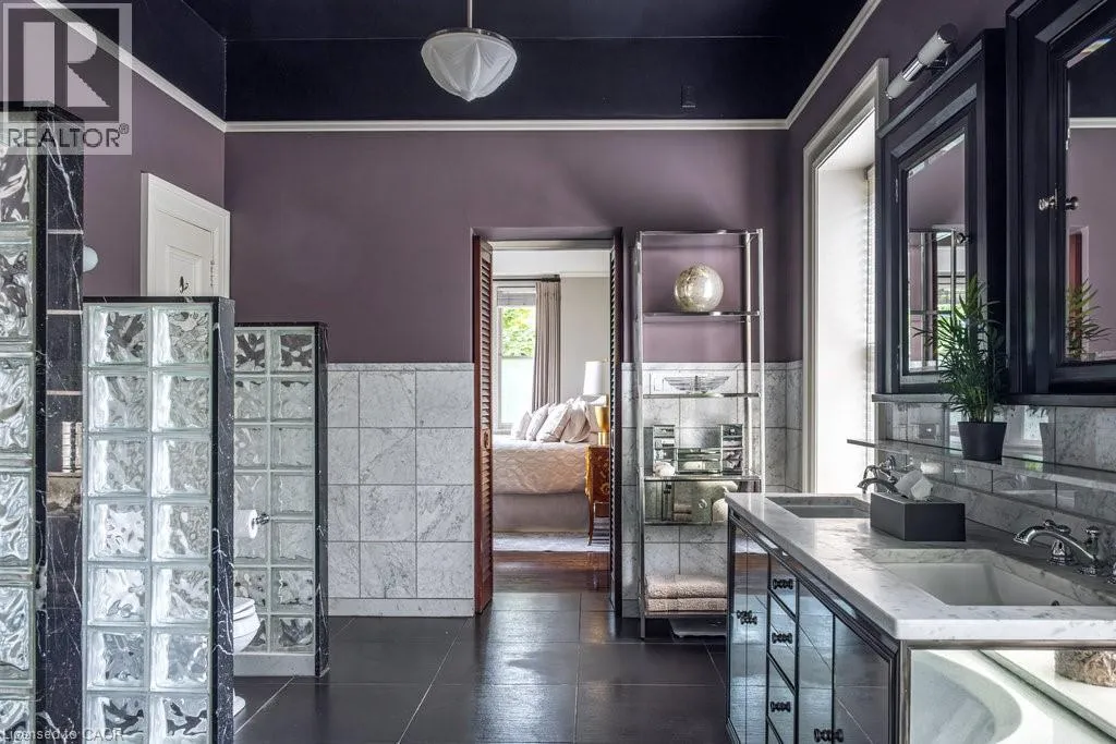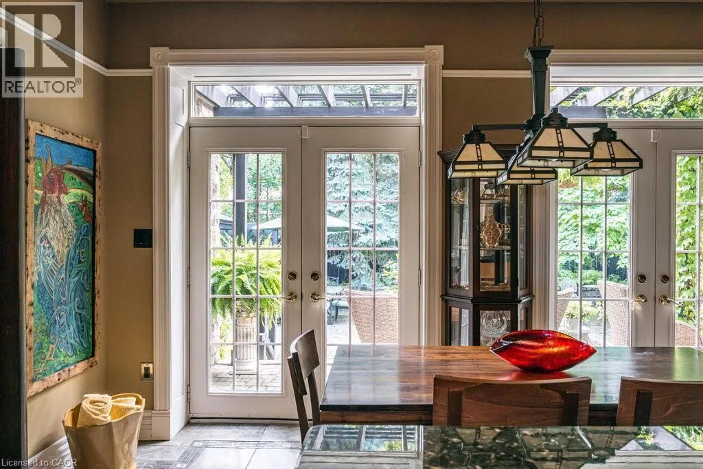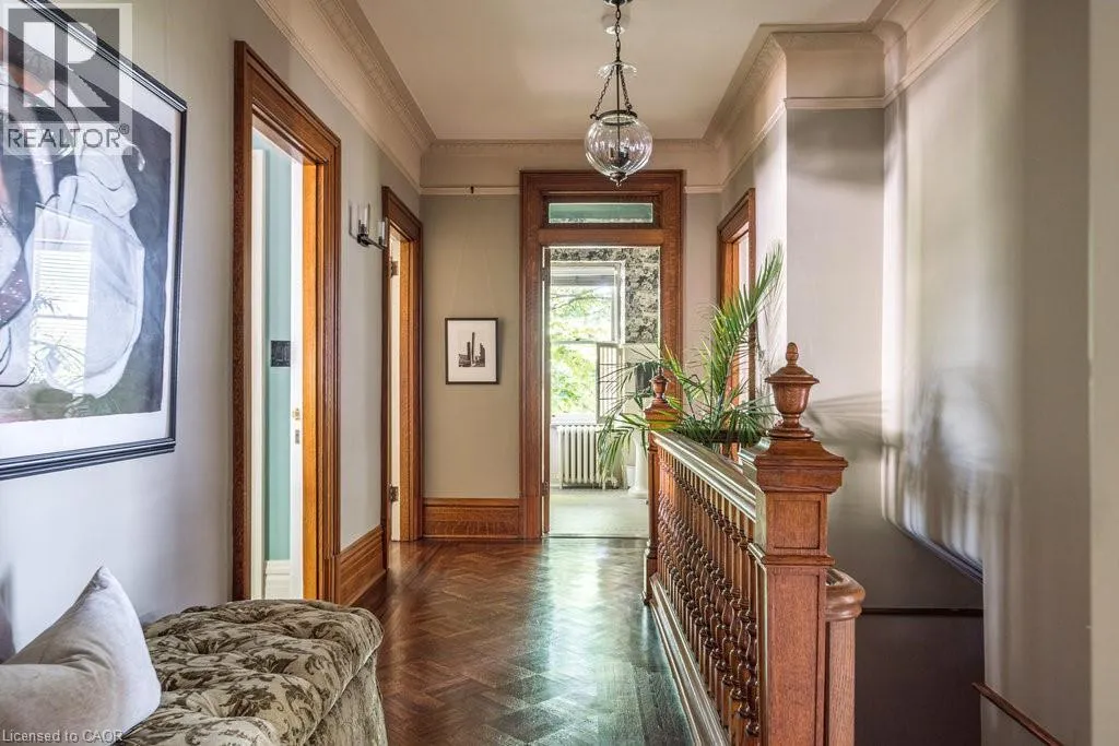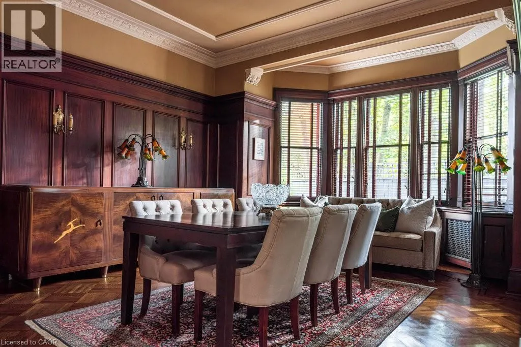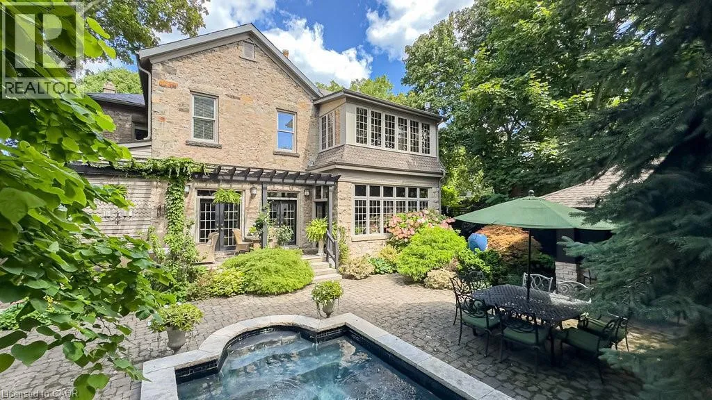 Inverness West to Arcade Cres to Claremont Dr An exceptional opportunity to own a piece of history, Claremont Manor (circa 1880), built of limestone and nestled in the escarpment with a magnificent view of the city skyline and Lake Ontario. This home seamlessly blends timeless elegance with comfort, featuring soaring ceilings and large windows that flood the rooms with natural light. Meticulous craftsmanship is evident throughout, from the parquet and inlaid oak floors to the mahogany-paneled dining room and bespoke fireplace mantels. The interior design beautifully incorporates Art Deco and Arts and Crafts elements, creating a unique and inviting atmosphere. Step out to a private backyard oasis, showcasing mature landscaping, a raised terrace, a plunge pool, a wet bar, a sauna, and tranquil spaces perfect for both entertaining and peaceful moments. This property embodies heritage, character, and lasting valueâa true gem for those seeking a residence that celebrates both the past and the present. More than just a home, it represents a rare opportunity to own a piece of history, thoughtfully reimagined for modern living. (id:27476)