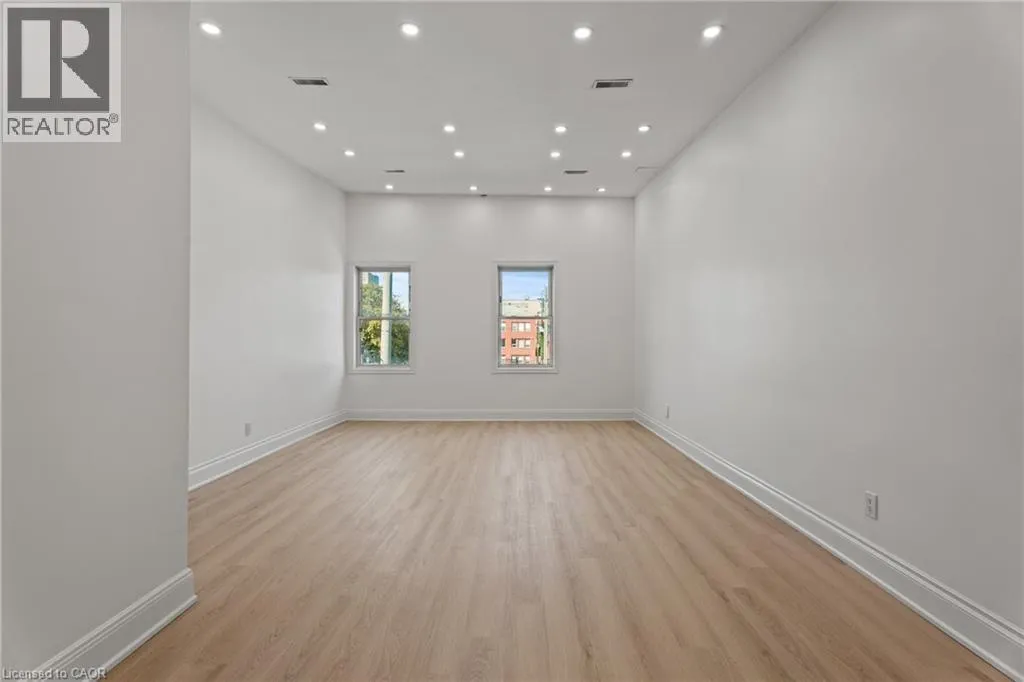 GO SOUTH ON JOHN ST FROM MAIN ST E, BUILDING IS ON THE EAST SIDE, BETWEEN TWO ALLEYWAYS Prime investment opportunity in the heart of downtown Hamilton. This fully renovated mixed-use property features a street-level storefront with excellent visibility, plus two additional floors and a functional basement. Offering a cap rate of 6.2% at asking, this property provides strong potential for steady passive income. With nearly 3,000 sq. ft. of commercial space, the main floor impresses with soaring 11-foot ceilings and modern pot lighting throughout. The building is well-equipped with two furnaces (one installed in 2020), two A/C units, 400-amp service, and two separate panels. Its unbeatable location, just steps from the Hamilton GO Station, ensures convenience and accessibility for both tenants and customers. (id:27476)
