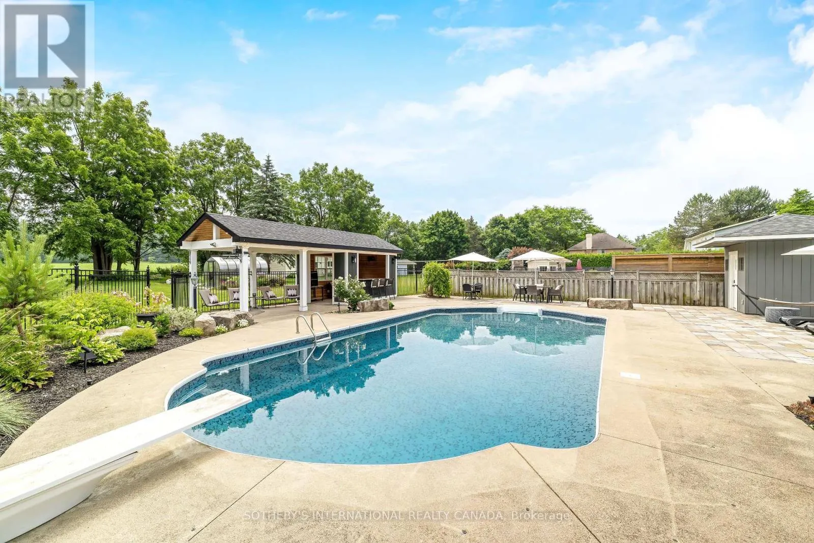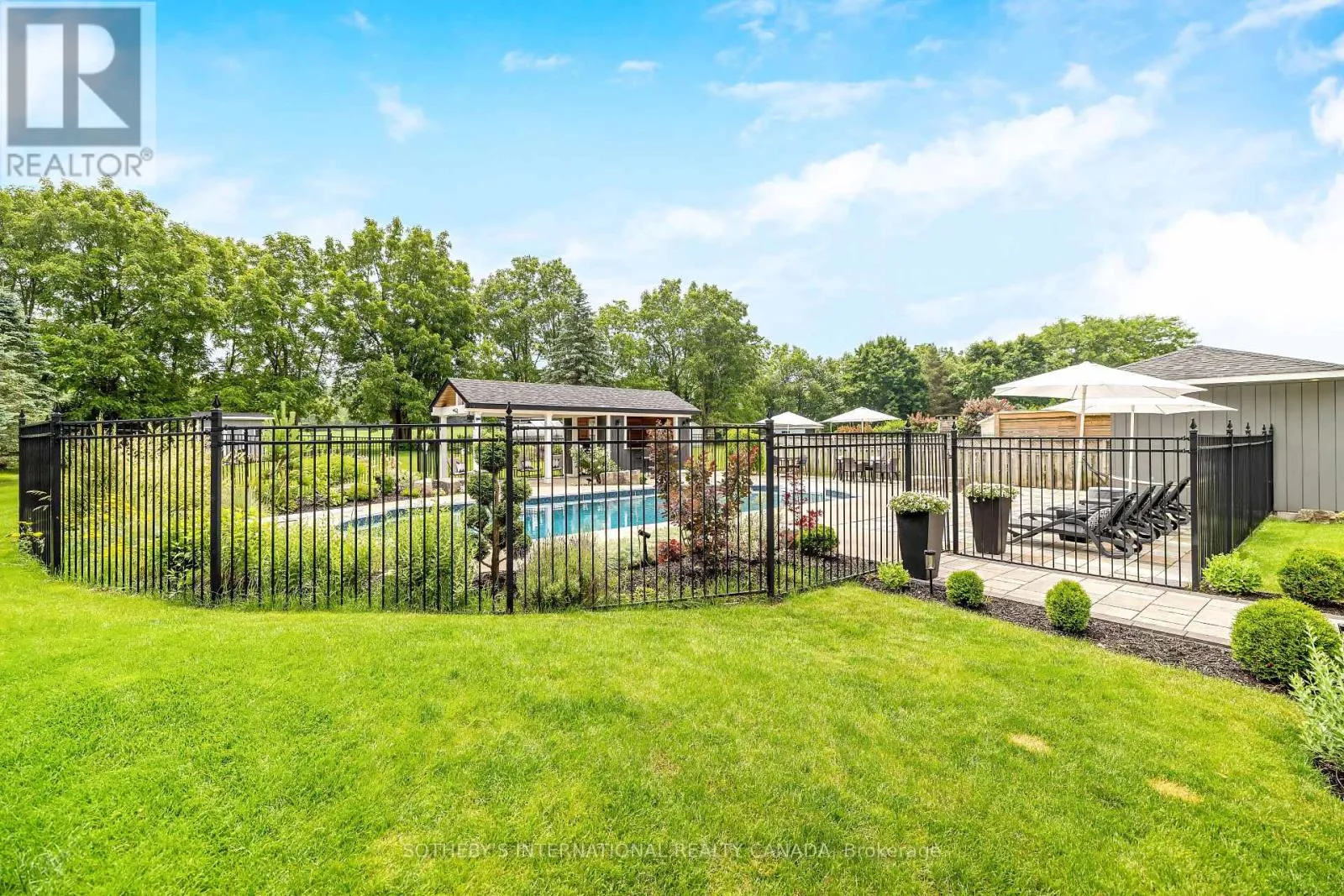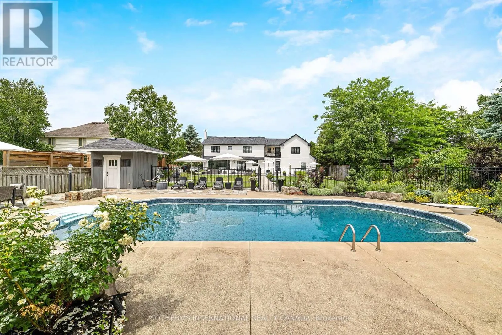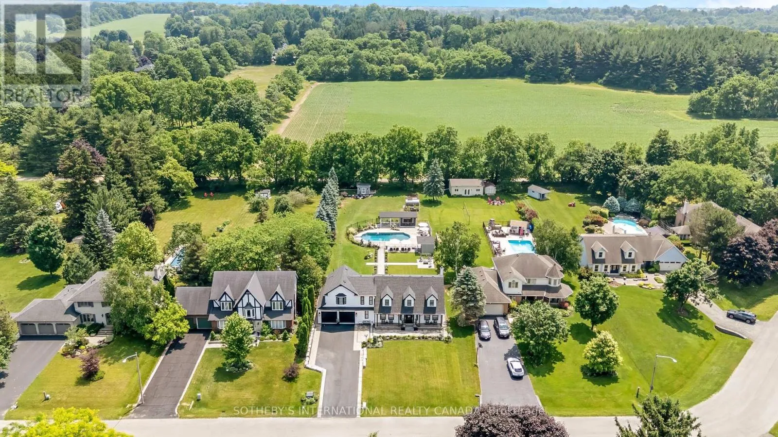 Cross Streets: Meander/Centre. ** Directions: Centre Rd to Meander Close. Your dream home awaits. Welcome to 10 Meander Close, a luxurious cape cod style home set in an exclusive enclave of estate homes in the charming community of Carlisle. Featuring over 4000 square feet of impeccably designed, finished living space, 6 total bedrooms, 5 bathrooms, & incredible backyard oasis with in-ground pool, hot tub, cabana, gazebo, fire-fit, & greenhouse. White oak hardwood flooring on the main & second level, with matching wood staircase with wrought iron spindles, sophisticated designated office, romantic formal dining room, & sunken living room with focal brick wood fireplace & custom built shelving. The stunning white kitchen features black accents, gold hardware, granite counter tops, 10 ft centre island, 10 ft long walk-in pantry, & high-end appliances. Large mudroom off the kitchen, ideal for family storage with garage entry. Upstairs, 5 large bedrooms, 4 share 2 resort like bathrooms, & the primary has an expansive 5 piece ensuite. Large dressing room in the primary with built-in shelving with glass doors. Convenient upper level laundry room & hallway balcony overlooking the stunning backyard. This home has been tastefully renovated with gorgeous feature walls, wainscotting, crown moulding, upgraded lighting, built-in cabinetry & so much more. The finished basement features a glass encased theatre room, extra bedroom with access to 4 piece bath, & plenty of storage space. Take the back sliding doors to the backyard retreat with incredible hardscape, gardens, & outdoor lighting. Jump into the hot tub on those cold winter nights, or walk the path to the pool area with plenty of space for lounging, dining, & entertaining. Custom cabana, fire-pit, gazebo, & state of the art greenhouse to keep the whole family entertained throughout the summer. The curb appeal is remarkable, with hundreds of thousands spent on hardscape & lush gardens both in the front & back of the home. Full irrigation system with 15 zones. Shows 10++. (id:27476)