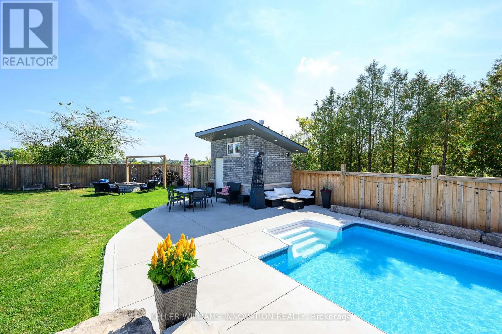 Cross Streets: Old Hwy 8 at Sheffield Rd. ** Directions: SETTLERS ROAD TO OLD HIGHWAY 8 TURN LEFT ONTO SHEFFIELD RD. Stunning in Sheffield Country Retreat with Pool, In-Law Suite & Workshop. Welcome to your dream country retreat in the heart of Sheffield! This updated 4+1 bedroom, 4-bath home offers the perfect blend of space, style, and versatility-complete with a separate in-law apartment, Heated saltwater pool, and private workshop with hydro. Enter through a covered porch into a bright 2-storey foyer. The main level features a modern eat-in kitchen with quartz counter tops and a walkout to the patio and views of fields, a spacious living room, and a cozy den with gas fireplace, plus inside access to the garage. Upstairs, the primary suite includes a walk-in closet and ensuite. Three more bedrooms and an updated 4-piece bath provide room for family. Best of all - a 800 sq ft rooftop patio for unforgettable gatherings. The finished lower level offers a self-contained in-law suite with its own walkout, kitchen, bedroom + office, bathroom, and laundry. A custom Cantina/Wine Room adds a unique bonus. Enjoy your fenced backyard oasis with a heated saltwater pool (2020), pool shed with water and hydro, and green space. New pump for 100ft well. The detached workshop with hydro and private laneway is perfect for hobbies, storage, or a home business. All this just 13 minutes to Cambridge and 25 minutes to Hamilton, combining country calm with city convenience. With its in-law suite, rooftop patio, pool, and workshop, this Sheffield property is more than a home - its a lifestyle! (id:27476)