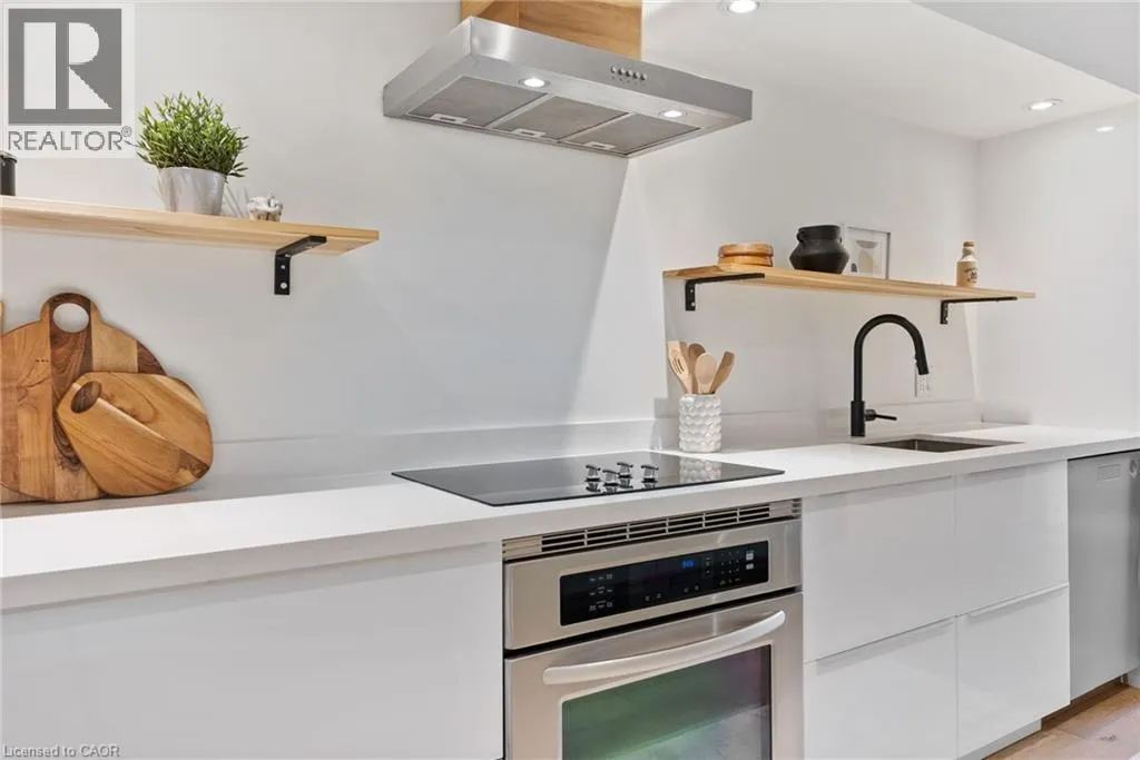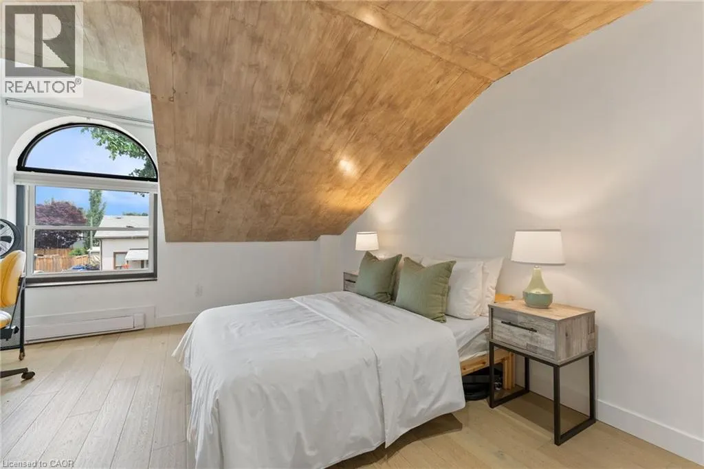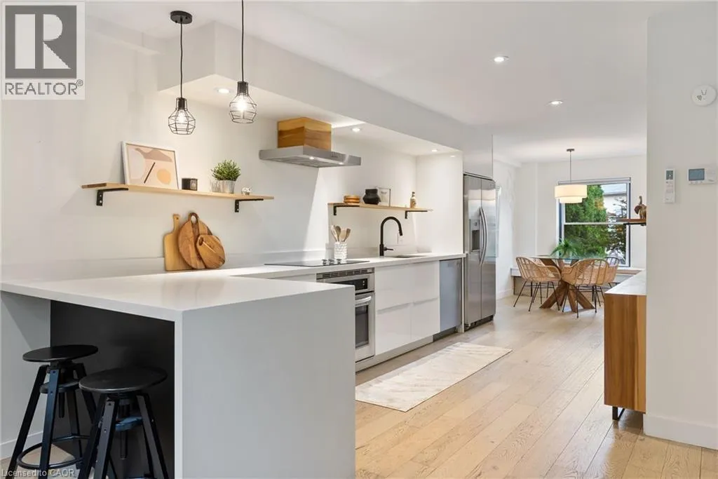 James St N, Past Strachan St E to MaCaulay St W Tucked between the lively pulse of James Street North and the breezy waterfront of Bayfront Park, this townhome offers instant wow-factor livingâwith no waitlist. Bright, stylish, and surprisingly spacious, this 2-bedroom condo at 23 Macaulay St W marries modern design with the character of Hamiltonâs beloved North End. Soaring cathedral ceilings and a skylight fill the main living space with natural light, while whitewashed oak hardwood floors add warmth and charm. The open-concept kitchen gleams with quartz counters, creating the perfect hub for weeknight meals or entertaining friends. Upstairs, two generously sized bedrooms await, including a loft-style retreat with walkout access to your private rooftop terrace. Morning coffee, sunset cocktails, or stargazingâitâs all yours. The spa-inspired bathroom elevates daily routines with a double vanity and a sleek, curb-less walk-in shower. Practical perks include one owned parking spot, ample visitor parking, low condo fees, and a well-managed, self-run community that keeps things simple and stress-free. And then, of course, the location: steps from the West Harbour GO, Pier 4, waterfront trails, patios, and Hamiltonâs thriving food and arts scene. Commute with ease, explore endlessly, and come home to a space that feels like a retreat. Whether youâre a first-time buyer, downsizer, or savvy investor, this home checks all the boxes. With its proximity to hospitals, transit, and the waterfront, it also stands out as a smart choice for long- or short-term rental potential. At 23 Macaulay St W, youâre not just buying a homeâyouâre upgrading your lifestyle. (id:27476)