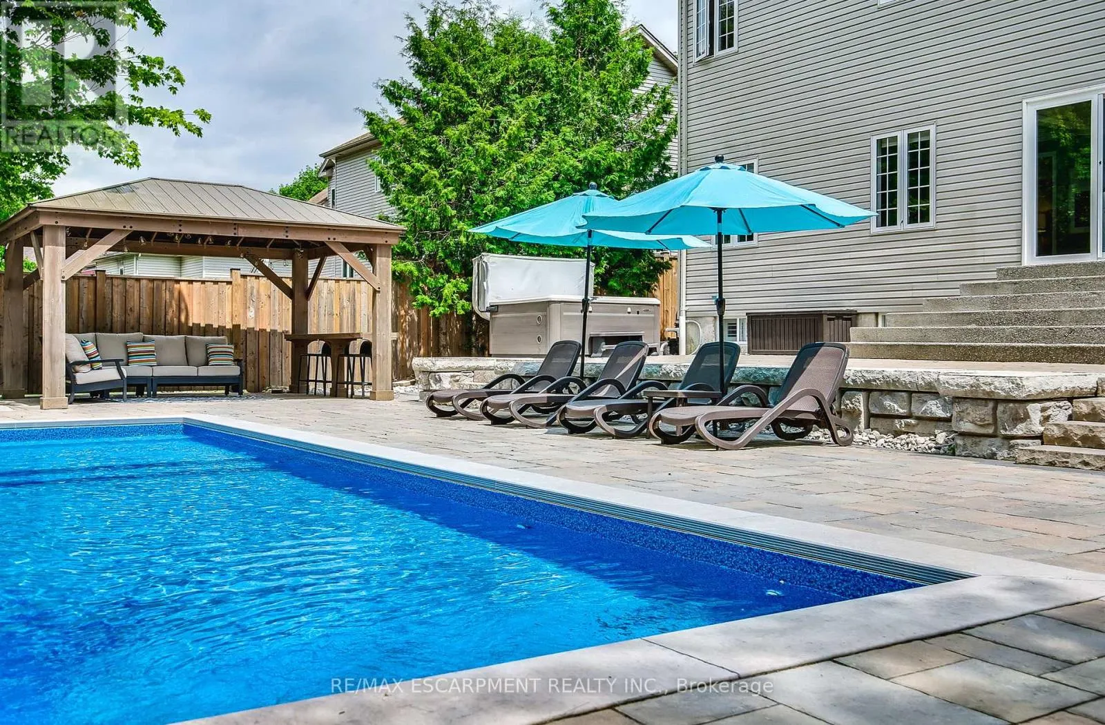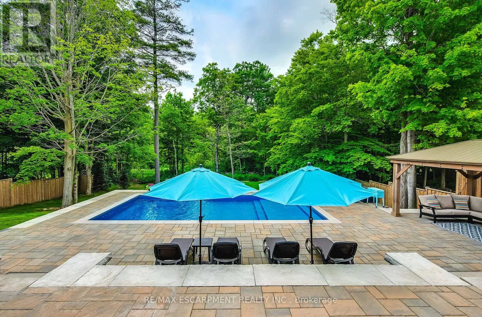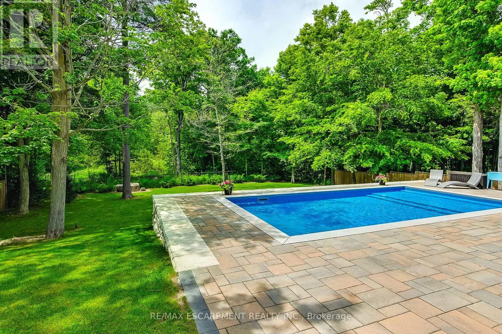 Cross Streets: Centre Rd / Conc 12. ** Directions: CONC 12 TO NEEDLEPINE DR TO VALLEY RIDGE LN. Tranquility Meets Luxury in Prestigious Stonebrook Estates! Welcome to peaceful, refined living in the exclusive enclave of Stonebrook Estates. This stunning 5+1 bedroom residence offers over - sq ft of beautifully designed living space, perfect for families who value comfort, space, and elegance. The heart of the home is a stylish kitchen complete with a walk-in pantry and central island, seamlessly overlooking a warm and inviting family room with custom built-ins. A dedicated main floor office, ideally positioned near the front entrance, provides a quiet and professional space for working from home. Upstairs, the expansive primary retreat features a luxurious ensuite and a generous walk-in closet. Four additional bedrooms and a well-appointed main bath complete the upper level, offering plenty of room for family and guests. The professionally finished lower level is ideal for entertaining, showcasing a fabulous recreation space with a wet bar, an additional bedroom, and a full bathroom - perfect for overnight visitors or multigenerational living. Step outside to your private backyard oasis and prepare to be captivated. Backing onto protected conservation land and Bronte Creek, this stunning outdoor retreat features extensive stonework, a beautiful in-ground pool, lush gardens, and a covered pergola - bringing the feeling of Muskoka right to your doorstep. Additional highlights include hardwood flooring, an oversized garage, and a brand-new front door. This exceptional home offers a rare blend of luxury, privacy, and natural beauty. Lets get you home. (id:27476)
