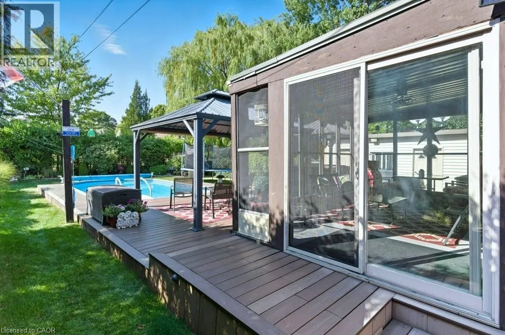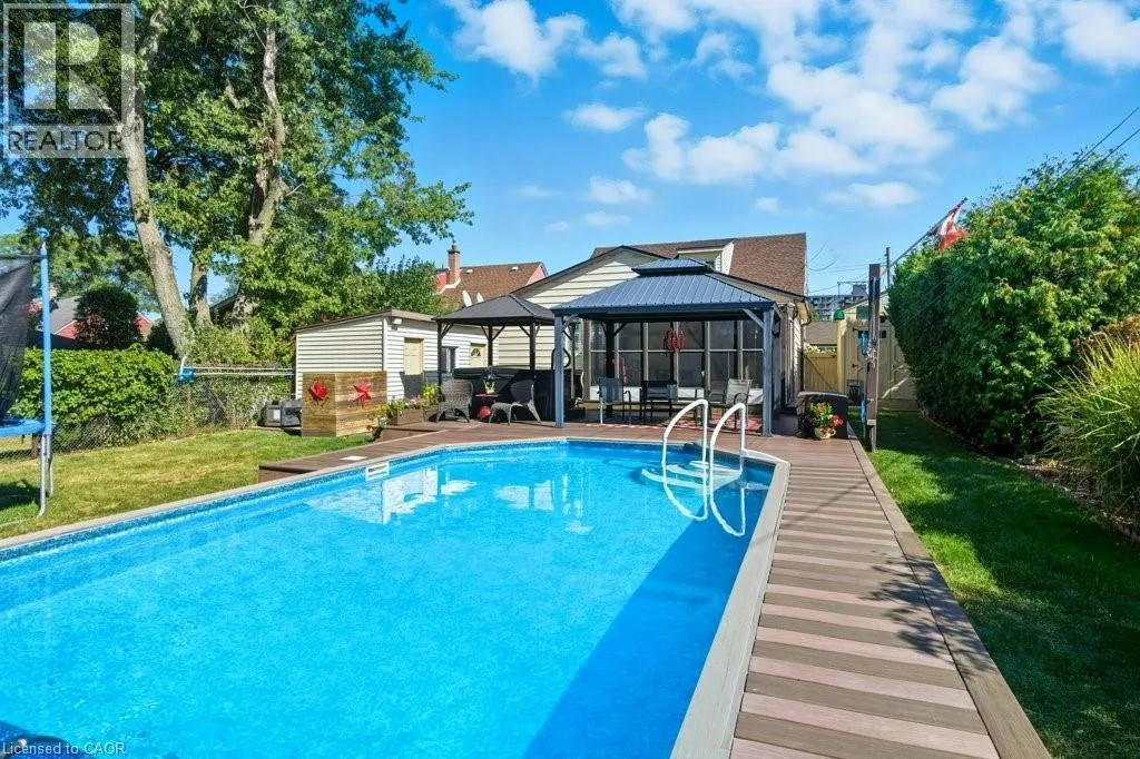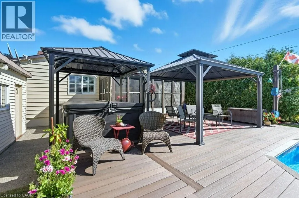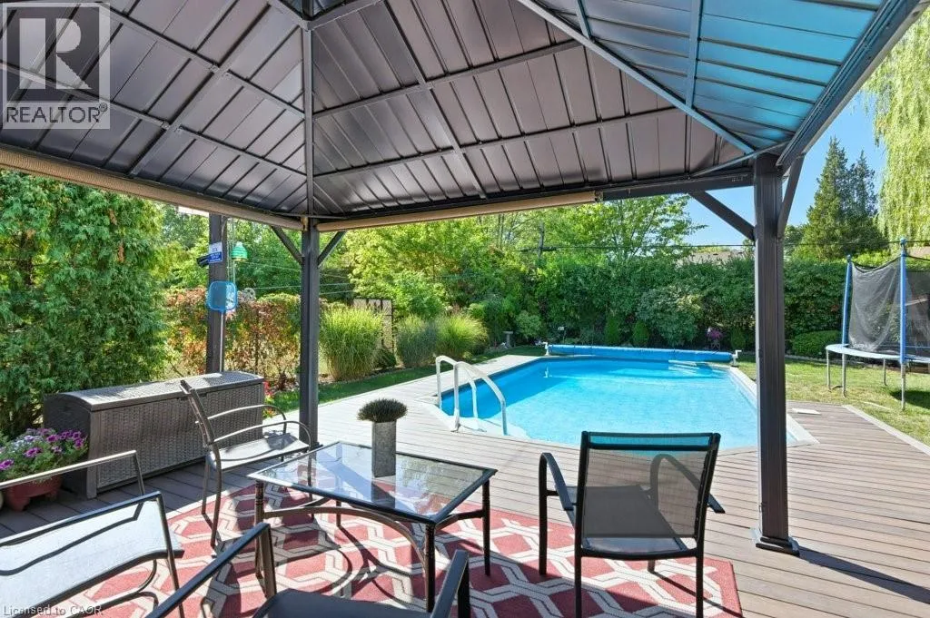 Mohawk Road to East 37th and drive towards Fennell. Home is on the left. Welcome to this charming and deceptively spacious 1.5 storey home, ideally situated on a generous 51' x 150' lot in the heart of Hamilton Mountain, in the highly sought-after Macassa neighbourhood! Lovingly cared for and meticulously maintained by the same owner for the past 43 years, this home is a rare gem offering timeless character, thoughtful updates, and room for the whole family! Step inside to discover an oversized dining room perfect for hosting family gatherings and a beautifully updated kitchen featuring granite countertops, stainless steel appliances, and a stylish breakfast bar. The main floor also boasts an expansive primary bedroom with a cozy sitting area, complemented by a modern main 4-piece bathroom. The true showstopper of this home is the stunning family room addition, complete with a warm gas fireplace, pot lights, and an exposed brick feature wall that brings both warmth and character. From here, walk out to the fabulous 3-season sunroom an ideal spot for relaxing or entertaining which then leads to your private backyard oasis. Enjoy maintenance-free composite decking, a fabulous gazebo, three storage sheds, a hot tub, and a sparkling onground pool all surrounded by meticulously landscaped gardens that create a peaceful and picture-perfect retreat. There is a basement under the original home offers full ceiling height and features a finished rec room, home office, and an additional 3-piece bathroom. Located just minutes from all amenities, schools, parks, public transit, and with easy access to the Linc, Red Hill, and Highway 403! This incredible family home truly has it all! Don't miss your chance to own this exceptional property! Book your private showing today! (id:27476)
