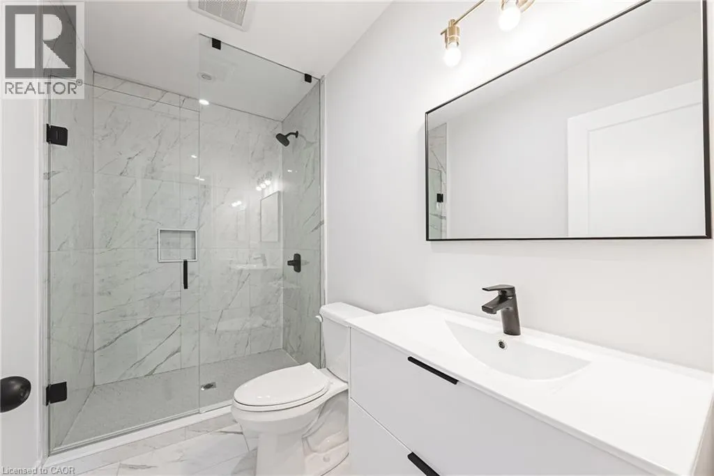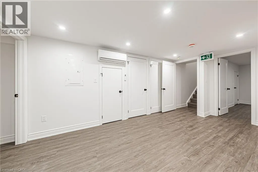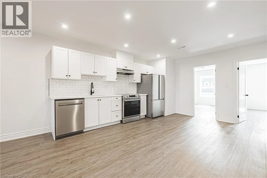 Turn left on Rosslyn Avenue North. Prime Opportunity on Hamilton's Future LRT Route! Discover this professionally renovated mixed-use gem in a high-traffic hotspot, perfectly positioned for growth along Hamilton's upcoming LRT line. This 2-storey building blends commercial versatility with residential appeal, offering 3 levels of turnkey potential for investors or owner-occupiers. Over $100k spent on electrical UPGRADES! **Commercial Space (Main Floor & Basement):** The 1,000 sq ft main floor is a blank canvas for retail, perfect for ice cream shop, bar, office, art gallery, coffee shop featuring forced air HVAC with 3 tons of AC, HRV for fresh air, and plumbing rough-ins for flexible layouts. Electrical is install-ready for your needs. Descend to the expansive basement with tall ceilings, ductless heat pump, 2 public washrooms, a staff area or potential suite with kitchen rough-ins, and a full 4-piece bathâpotential for additional income via separate entrance. New gas/electric HVAC, HRV, and 2 hot water tanks. **Residential Upper Unit:** Bright and open-concept 1,000 sq ft 2-bedroom suite boasts its own forced air furnace, AC, HRV, and tankless hot water heater for efficiency. Access via new staircase and balcony, with separate street entrance for privacy. **Upgrades & Utilities:** Fully modernized with new plumbing, electrical (200-amp service, option for 346/600-volt equipment), insulation in walls/ceilings, exterior doors, and storefront glass windows. Fire-rated construction, interconnected smoke alarms. 2 gas meters (1 main/basement, 1 upper), 1 water meter, 1 electrical meter with separate panels and smart monitoring. New everything ensures low maintenance. **Parking & Access:** Space for 2 cars (1 main, 1 upper) plus nearby lot options. Separate entrances enhance functionalityâstorefront for commercial, street for residential. Priced for savvy buyers, this property promises strong ROI in a booming area. Don't miss outâschedule a viewing today! (id:27476)