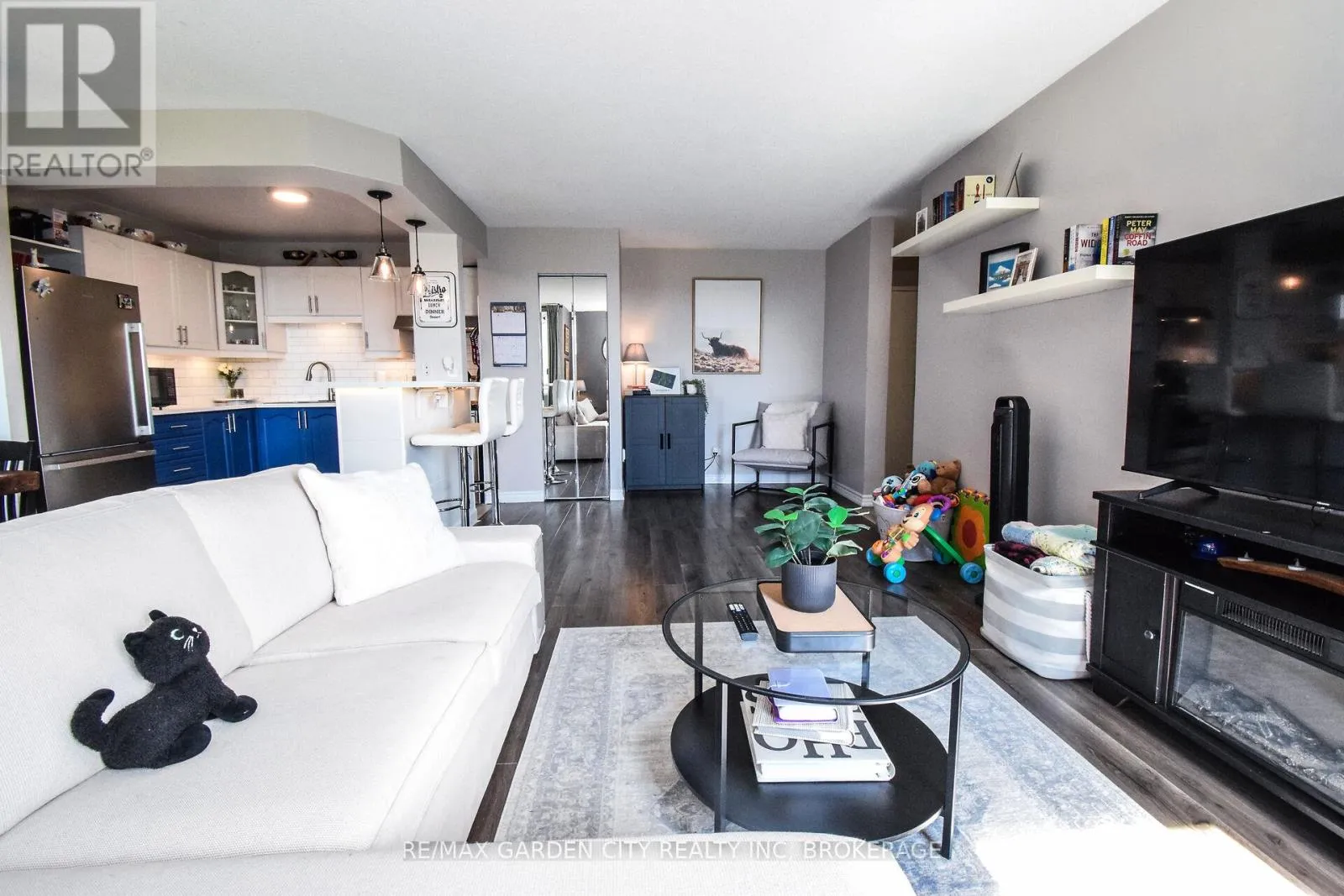 Cross Streets: Riverdale Dr. ** Directions: east onto Delawana Dr Right onto Riverdale left onto Glenburn. Welcome to this bright and spacious 2-bedroom condo, perfectly situated on the 8th floor with gorgeous views from your private balcony. This move-in-ready unit offers a seamless open-concept layout, featuring an oversized living room, dining area, and kitchen with plenty of space for entertaining. Both bedrooms are generously sized, complemented by the convenience of in-suite laundry and a dedicated locker for extra storage. Enjoy the comfort and ease of condo living with quick access to the QEW, public transportation, and nearby walking trails. Relax, unwind, and simply move in this condo is ready for you to call home. (id:27476)