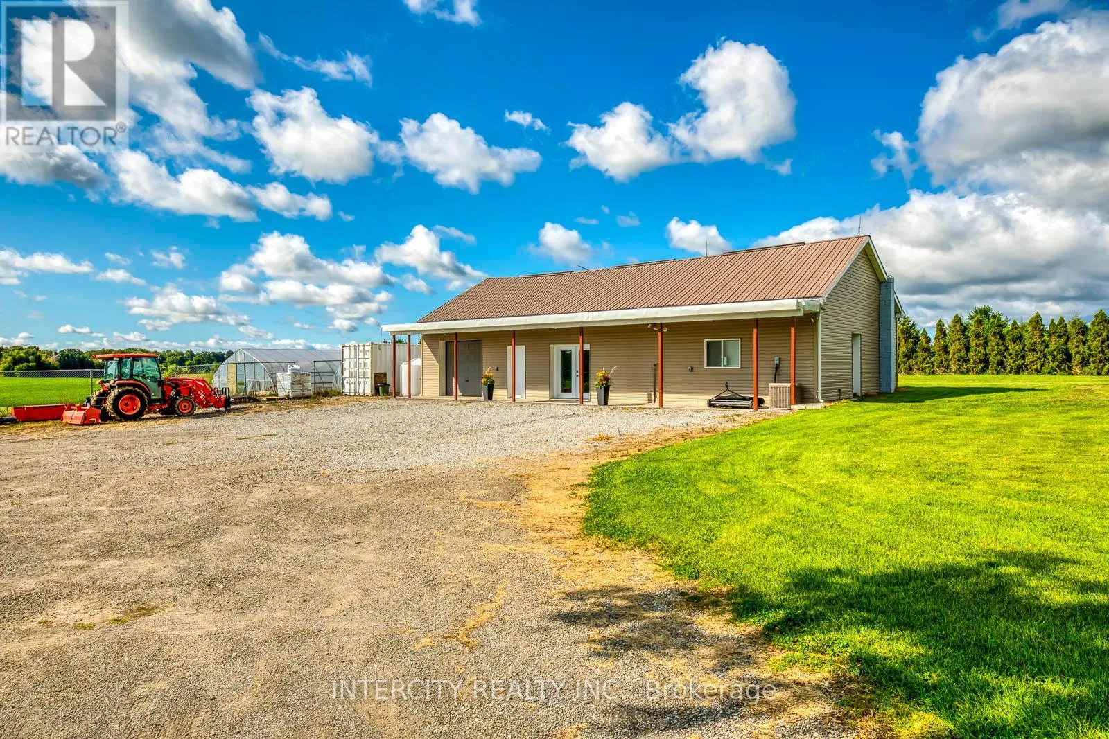 Cross Streets: Highway 403 & 52. ** Directions: Governors Rd & Oakney Rd. 2764 Governors Road Prime Mixed-Use Live/Work Property : Positioned along the highly visible main artery of Governors Road, this exceptional 2.486-acreproperty offers unmatched exposure and versatility. Combining a solid, high-quality residence with professional-grade commercial facilities, it presents a rare opportunity for live/work convenience, entrepreneurial ventures, or agricultural-related operations. Residential Highlights : 3 spacious bedrooms and 2 full bathrooms Family room, living room, office, and sunroom with large windows for abundant natural light Hardwood floors and stairs throughout, supported by a strong, durable foundation Modern kitchen with light quartz countertops Expansive patios overlooking beautifully landscaped gardens Natural gas utilities for efficient and reliable service . Commercial & Professional Facilities Warehouse: Approximately 3,200 sq. ft. with cooler, preparation room, office, reception area, washroom, and second-floor storage. Ideal for produce storage, fruit/vegetable processing, or other professional agricultural uses. Features include separate hydro meter, cistern, newer furnace, air-conditioning, and septic system for independent operation. Office Building: Approximately 1,600 sq. ft., fully insulated and recently renovated with new furnace, hot water tank, and air-conditioning. Includes cooler, storage, and restroom facilities, making it move-in ready for business use. Additional Amenities : Two 500 sq. ft. pull-up greenhouses, perfect for farming projects or hobby cultivation Fenced yard suitable for logistics, storage, or hosting events This unique property seamlessly blends residential comfort with commercial practicality. Whether for farming-related processing, entrepreneurial ventures, or those seeking a spacious live/work environment, 2764 Governors Road delivers flexibility, visibility, and long-term value. Additional Leasing Options: Clients may also choose to lease the entire property or part of property. (id:27476)