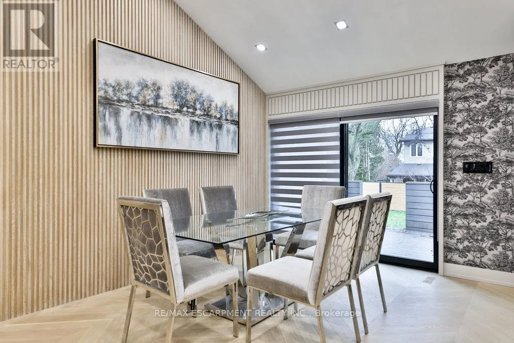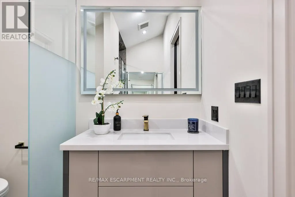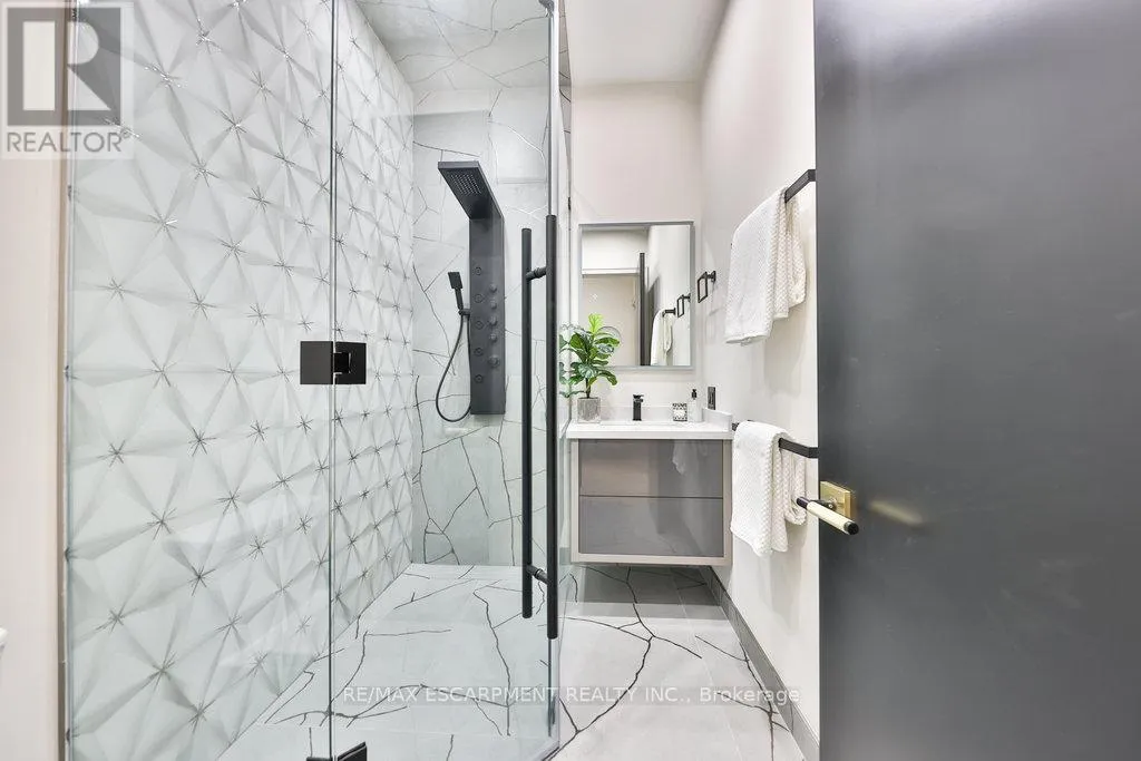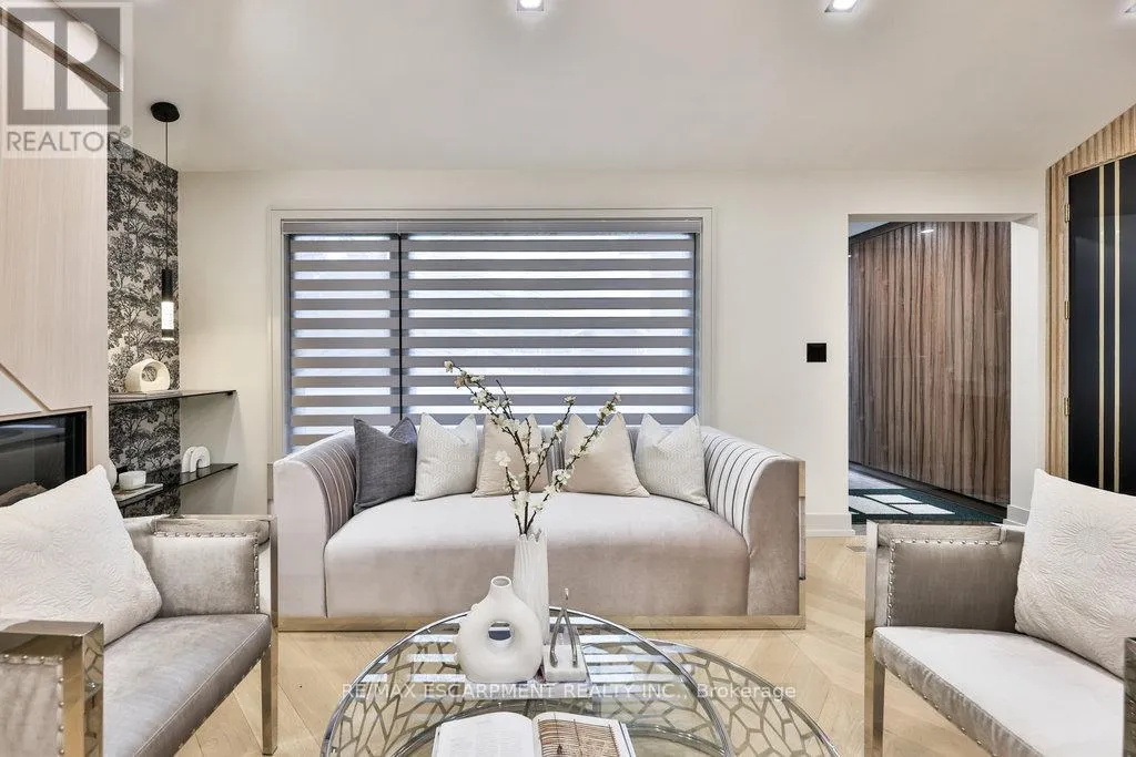 Cross Streets: Garth St. & Mohawk Rd. W. ** Directions: 22nd West St. & Sanitorium Rd. Experience elevated living in this beautifully designed upper-level home, offering 3 generous bedrooms and 2 elegant bathrooms. From the porcelain-tiled foyer with quartz detailing to the soaring vaulted ceilings, every element has been carefully crafted for style and comfort. The open-concept floor plan seamlessly connects the living, dining, and kitchen areas, all bathed in natural light and accented by chevron-patterned white oak hardwood floors. The chef-inspired kitchen showcases custom European walnut cabinetry, quartz countertops, and high-end appliances, including a Samsung refrigerator and a built-in Fisher & Paykel coffee machine. The spacious living room centers around a Valor electric fireplace set in rift-cut white oak, creating a warm, refined ambiance. Retreat to the luxurious primary suite featuring vaulted ceilings, a Napoleon electric fireplace, and a spa-like ensuite complete with dual fogless LED mirrors and a sleek glass-enclosed shower. With parking for up to 8 vehicles, this home combines contemporary elegance with everyday functionality. A six-month lease is available. (id:27476)
