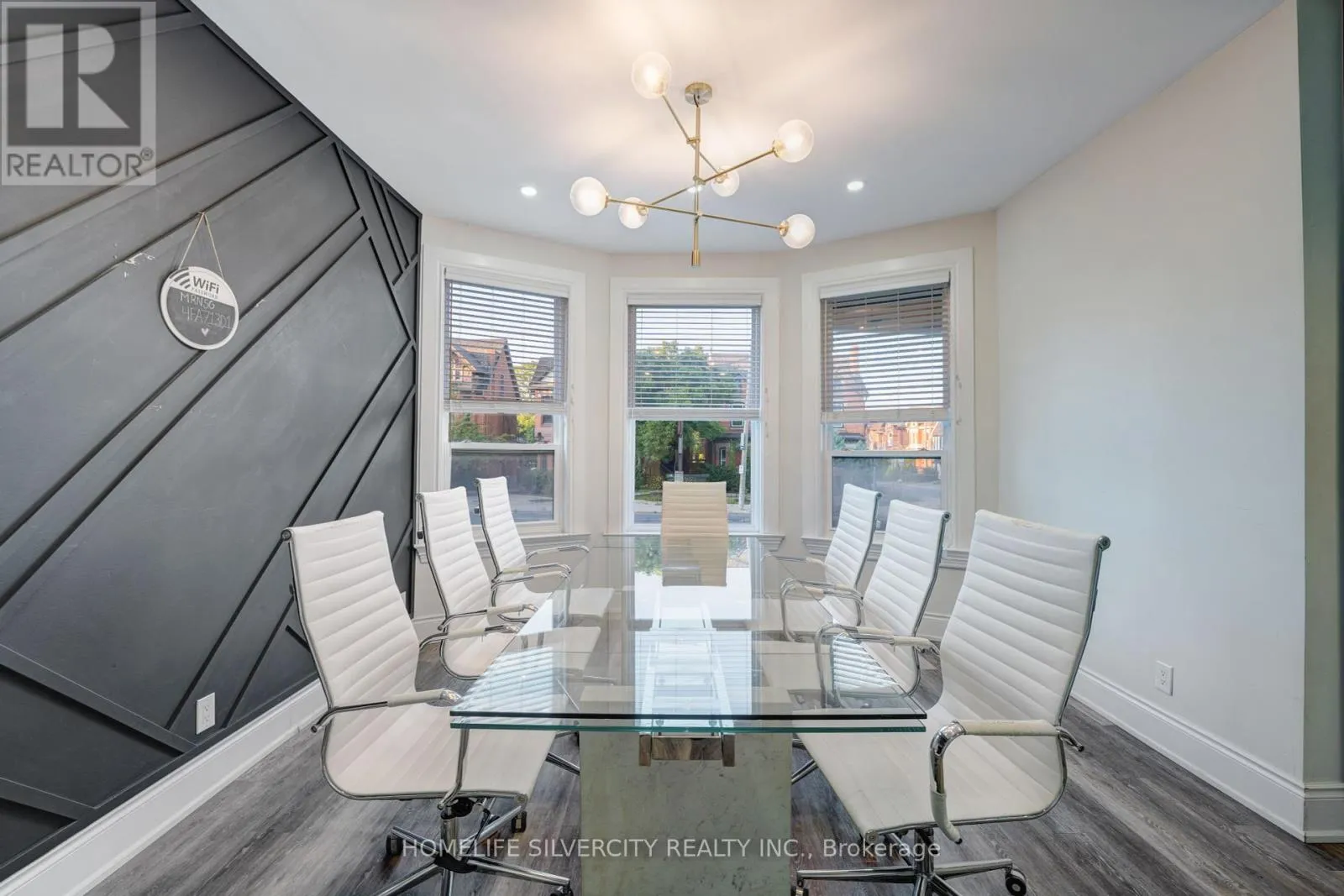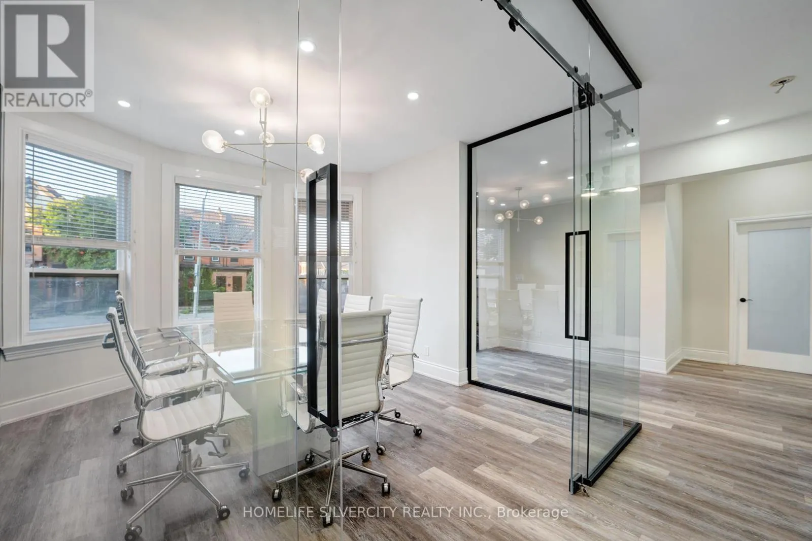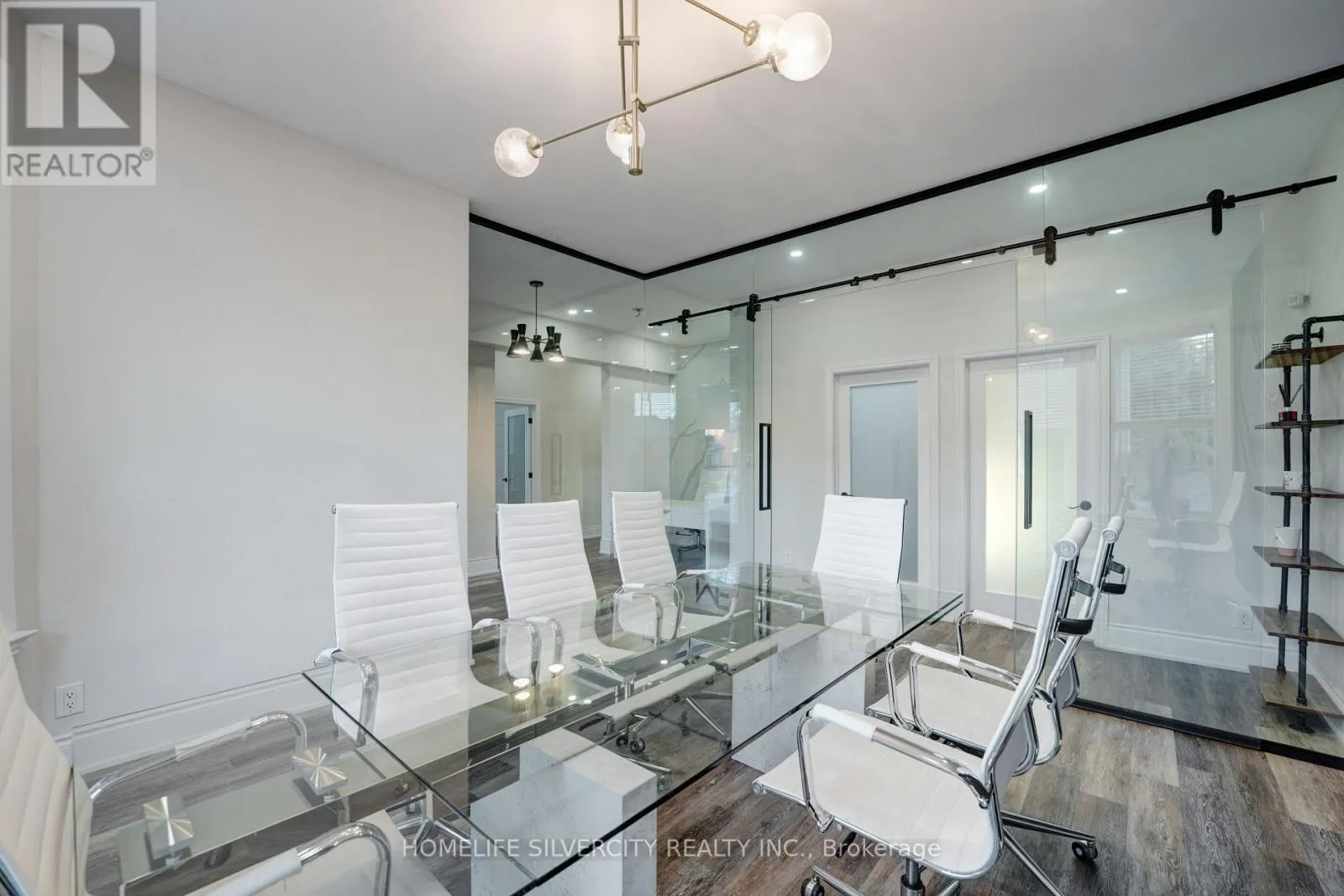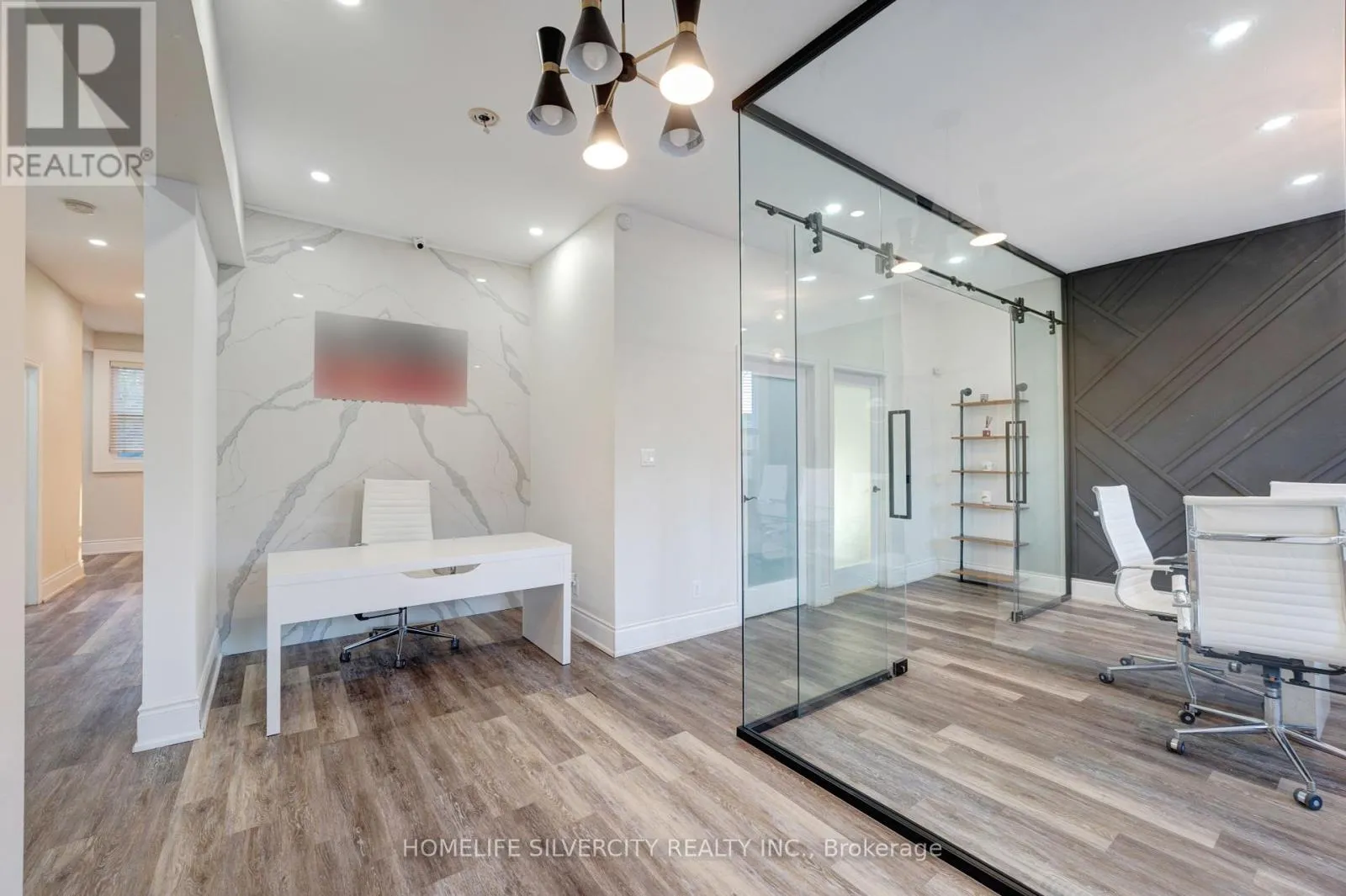 Cross Streets: Main St E & Wentworth St S. ** Directions: Located on the corner of Main St E and Grant Ave, Hamilton. Prime opportunity to lease 1,376 sq ft of C5-zoned commercial space in the heart of downtown Hamilton. This thoughtfully designed unit features seven private offices, a modern boardroom with expansive windows and street views, a welcoming lobby, 2-piece bathroom, and dual entrances. Enjoy four dedicated parking spots, complimentary internet, and high street visibility for maximum exposure. The flexible layout is ideal for a wide range of uses including professional services, medical/wellness, education, insurance, real estate, creative or artist studios, personal care, entertainment, and financial institutions..A prominent monument sign will significantly enhance your business visibility and street presence. (id:27476)