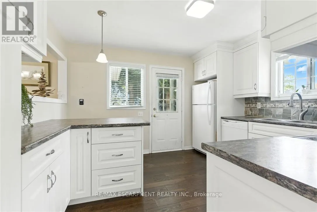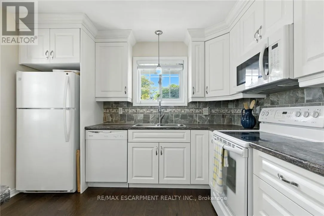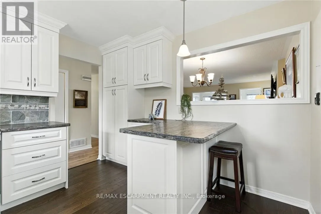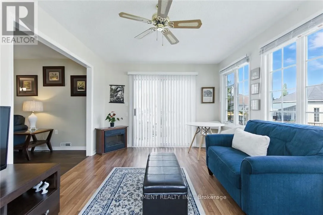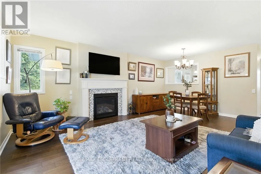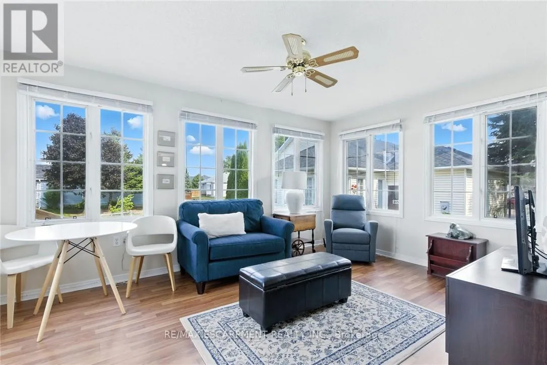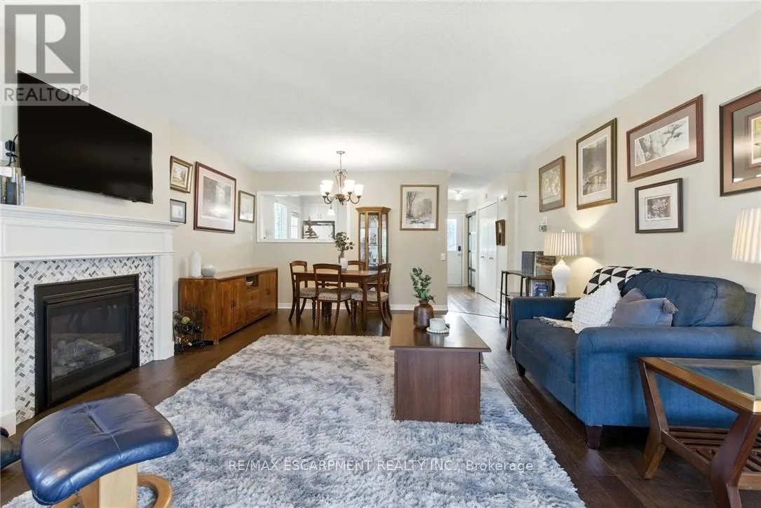Cross Streets: Twenty Road West. ** Directions: From Twenty Road W/Garth, W on Twenty Road W, N on Silverbirch, E at main building, N towards #360. Beautifully maintained 2-bedroom, 2-bath bungalow offering 1,308 sq. ft. of thoughtfully designed main-floor living in the sought-after Villages of Glancaster. Perfect for those seeking a relaxed, low-maintenance lifestyle in an active adult community. Enjoy inviting curb appeal with an interlock driveway, single-car garage with backyard access, and a charming covered front porch with sunshade. Inside, the bright kitchen features crisp white cabinetry, ample storage, and a breakfast bar. The dining room is ideal for entertaining, and the cozy living room offers a gas fireplace and upgraded flooring that flows throughout the main living areas. A sun-filled den overlooks greenery and opens to a private rear deck. The spacious primary bedroom features an oversized closet and 3-piece ensuite with walk-in shower. A second bedroom with a bay window and large closet is perfect for guests or a home office, with a 4-piece main bath nearby. Main-floor laundry adds convenience. The partially finished lower level includes a versatile office or hobby room plus excellent storage or workshop potential. Steps from the Glancaster Country Club, residents enjoy access to an indoor saltwater pool, fitness centre, library, billiards, tennis and pickleball courts, exercise classes, card games, and social events. Conveniently located near shopping, parks, transit, and major roadways. Don't miss this opportunity to embrace a vibrant, maintenance-free lifestyle in one of Hamilton's most desirable adult communities. (id:27476)