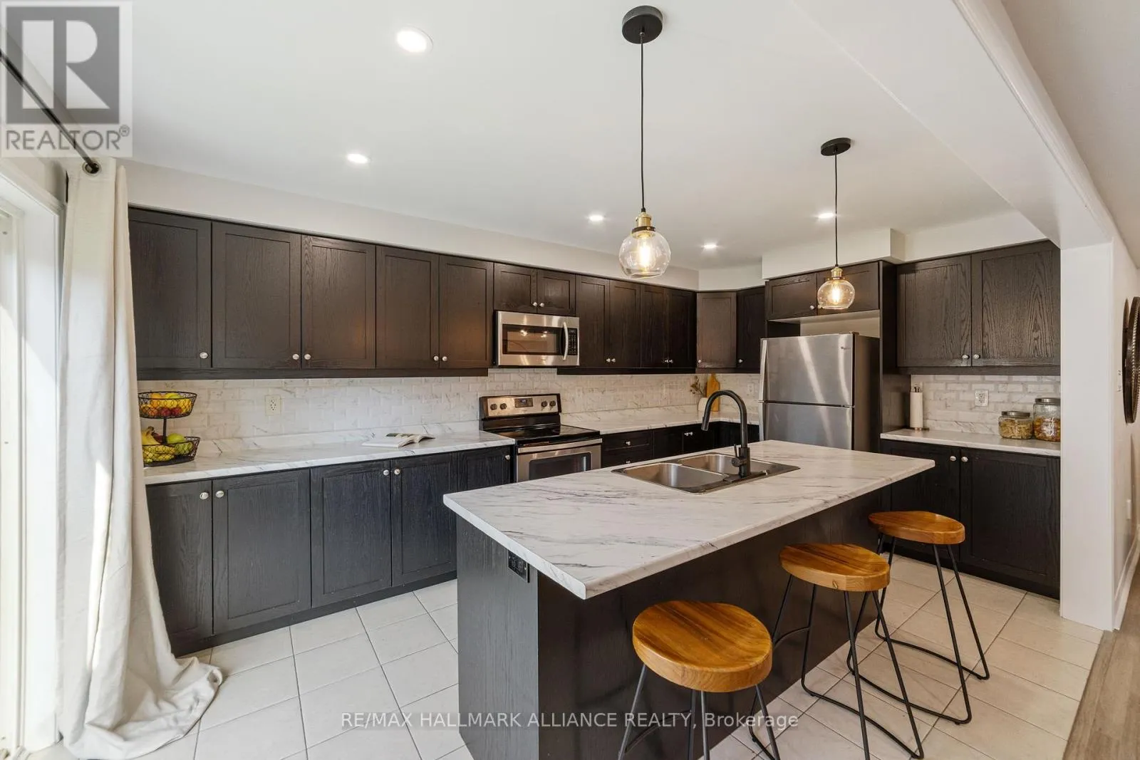 Cross Streets: Dundas/Spring Creek Drive. ** Directions: Turn in from Dundas Street E into Spring Creek Drive, take the first right turn into the complex. Welcome to this bright and spacious 2-storey freehold townhome in East Waterdown! This carpet-free home features 3 bedrooms plus a den, and 3 bathrooms. The main floor offers a sun-filled open-concept living and dining area, a dedicated front office, and an elegant oak staircase. The modern kitchen boasts stainless steel appliances, upgraded lighting, and a generous island. Upstairs includes a luxurious primary suite with an ensuite bath, two additional bedrooms, and a convenient second-floor laundry. Ideally located close to the GO Station, Hwy 407, trails, and parks, this home combines comfort, style, and convenience. (id:27476)