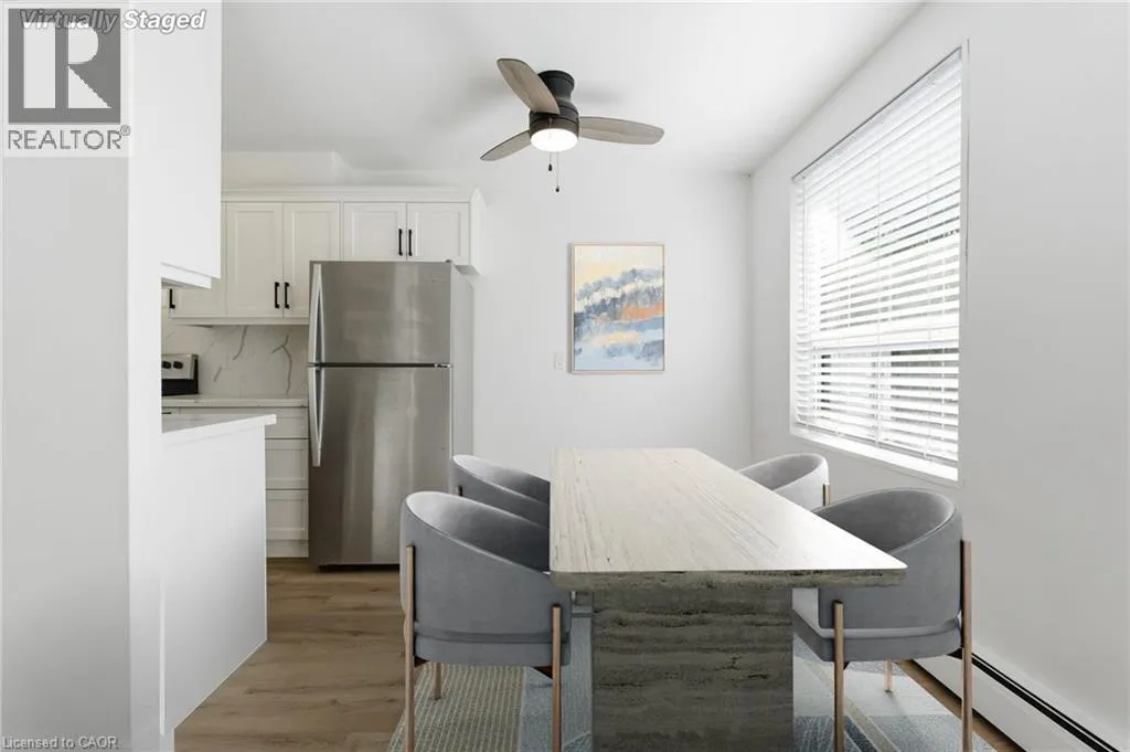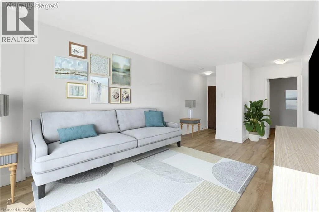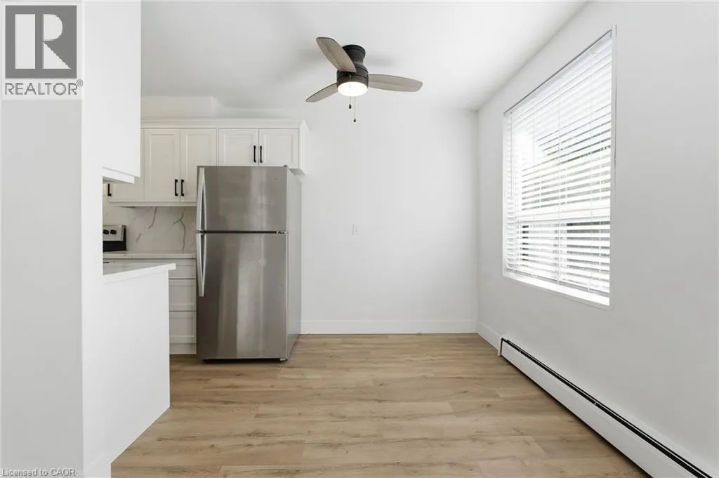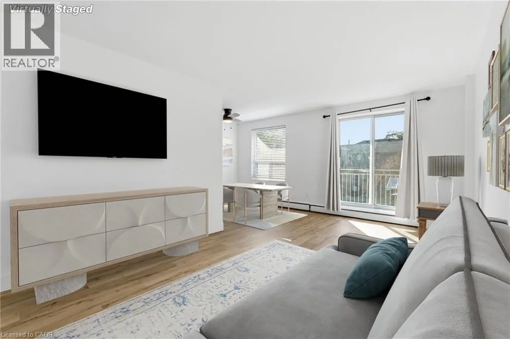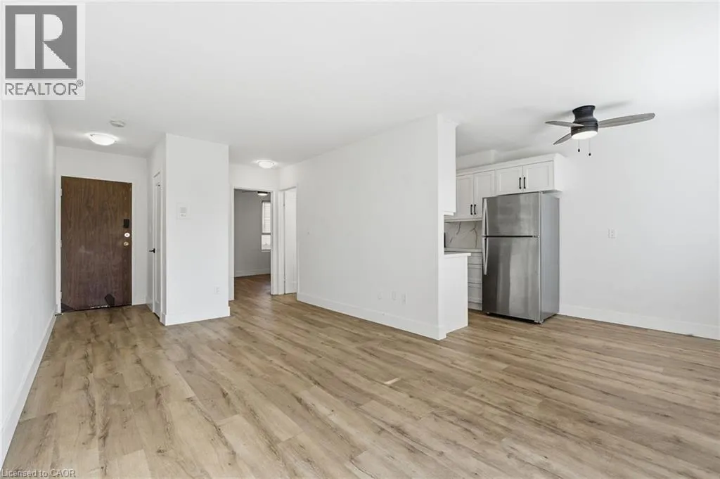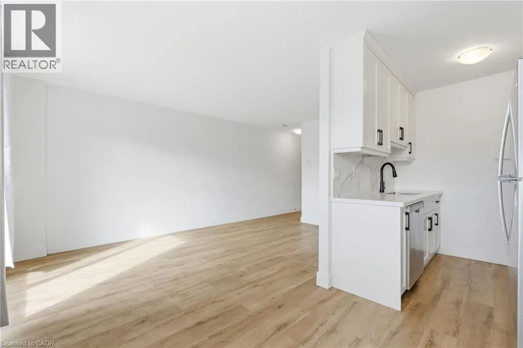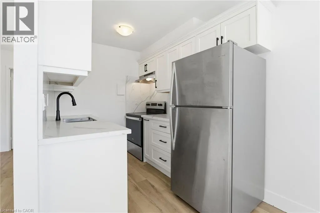 Red Hill Valley Parkway to King Street East Welcome to this beautifully updated 1-bedroom, 1-bathroom apartment in a prime King Street location. This bright and modern unit features newer flooring throughout and a stylish kitchen with white cabinetry, quartz countertops, and stainless steel appliances. The refreshed bathroom offers a clean, contemporary finish, making the space move-in ready. Convenience is at your doorstep with easy access to the Red Hill Valley Parkway, nearby shopping, dining, and public transit. The unit also includes one dedicated parking space. Perfect for professionals, couples, or anyone seeking a comfortable and modern place to call home. (id:27476)