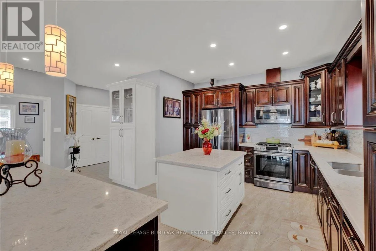 Stone Church Road East Welcome to 89 Eleanor Avenue in the sought after Eleanor community which is within close proximity to all major amenities such as schools, shopping, parks, and with quick access to the LINC which is ideal for commuters. This Four Bedroom home which has approximately 3,600 square feet of total living space, features numerous upgrades, including a custom-designed gourmet kitchen with high end appliances, solid wood cabinetry, granite counters, center island, and a large breakfast bar both offering plenty of storage. The Kitchen overlooks both the Living Room and Dining area which features sliding doors leading to the covered patio area. One of the focal points of this impressive home is the rear yard 'Oasis' featuring a custom built 18 ft x 13 ft Portico adorned with a ceiling fan, pot lights, double-sided gas fireplace and houses a 50' flat screen TV. The covered patio is also connected to an 'outdoor' Kitchen area which has a custom-built pizza oven and built-in BBQ perfect for entertaining family and friends. Another key focal point is the fully finished basement, which features a 2nd custom designed Kitchen and full washroom which is ideal for guests or can be used as a potential in-law suite. Other features and upgrades to this wonderful home are as follows: hardwood floors, porcelain tiles, upgraded trim package with 7" baseboards, California shutters, numerous pot lights on each level, Primary Suite with a large walk-in closet featuring custom built shelving, and a spa inspired ensuite perfect for relaxing after a hard days work. I can go on an on listing all of the numerous features that this home has to offer, however, the home is best experienced in person. Don't delay in making this your next Home/Investment. (id:27476)
