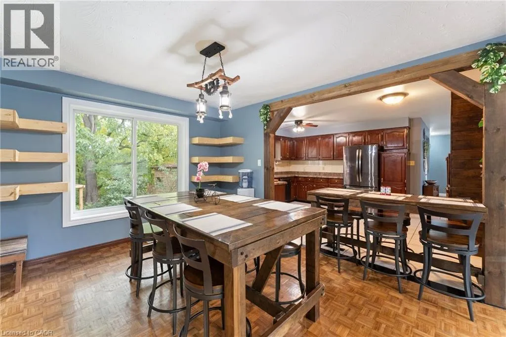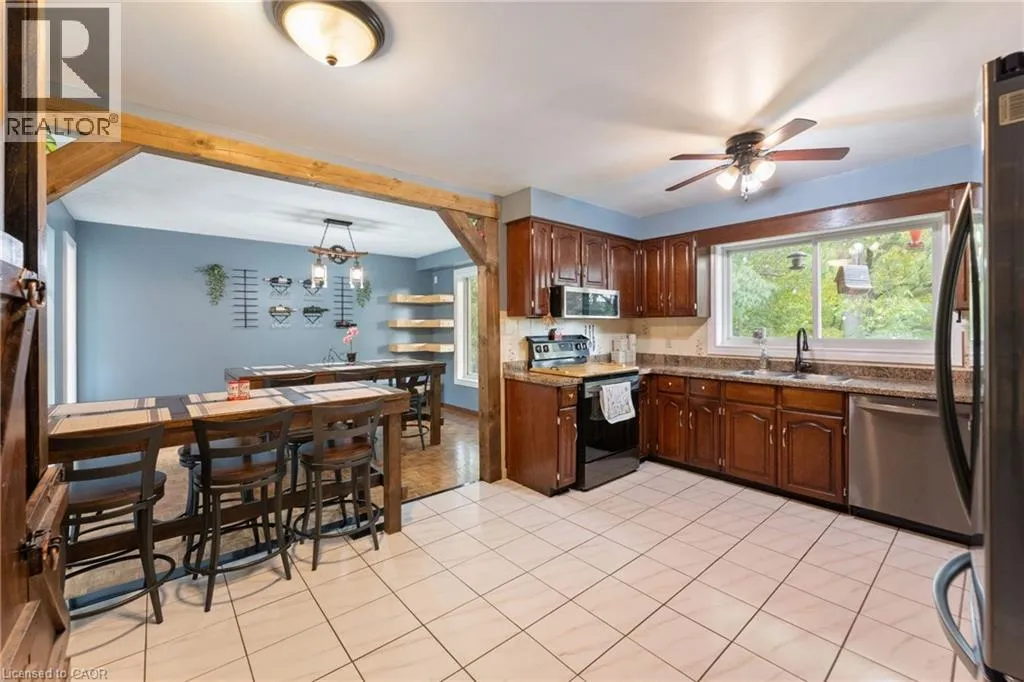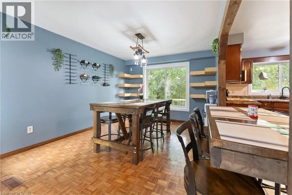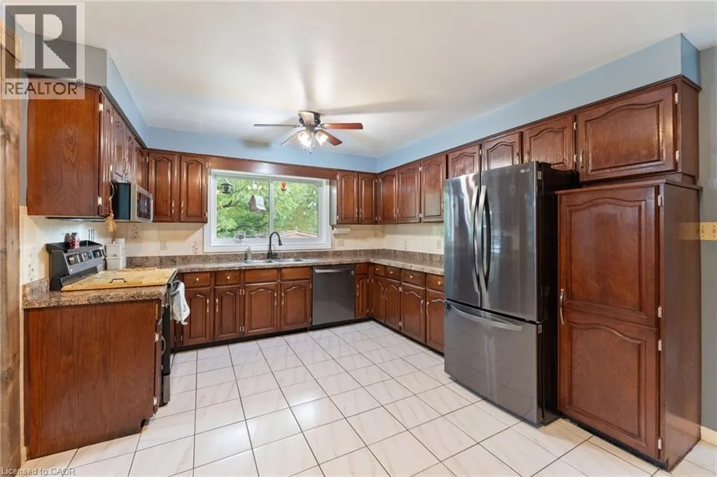 South on Greenhill from Red Hill Valley Parkway Spacious and versatile home on a ravine lot with incredible green space views. This unique property offers 6 bedrooms, 3.5 bathrooms, and multiple configurations to suit a variety of living arrangements. With two main floor kitchens, the home lends itself well to in-law potential or extended family living. Inside, skylights fill the home with natural light, creating a bright and welcoming feel. The layout is practical and flexible, with ample space to spread out across the bedrooms and common areas. Step outside and discover a backyard that feels like your own private retreat. Overlooking mature trees and wildlife, youâll often spot deer and foxes wandering by. Multiple rear decks provide plenty of options for outdoor dining, entertaining, or simply enjoying the view. Thereâs also a tree house, sure to be a favourite feature for kids and guests alike. Located in a family-friendly neighbourhood with access to schools, parks, and transit, this home combines privacy and convenience. With its size, setting, and potential, 425 Greenhill is a property where imagination and opportunity meet. (id:27476)