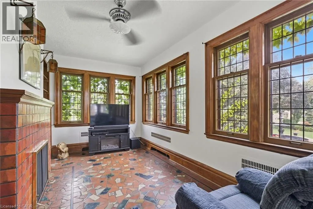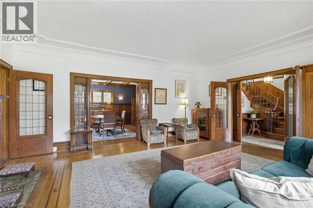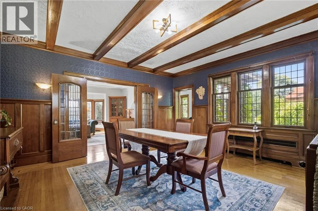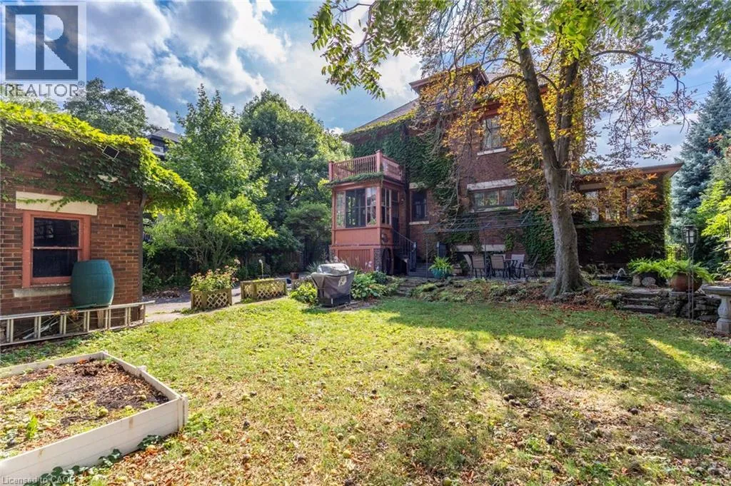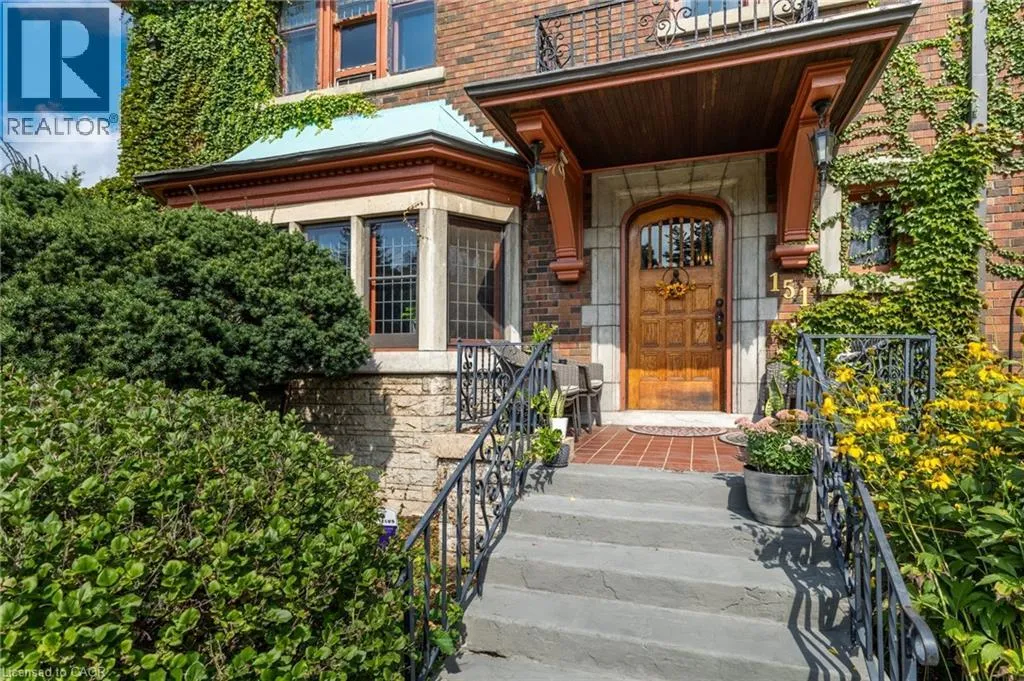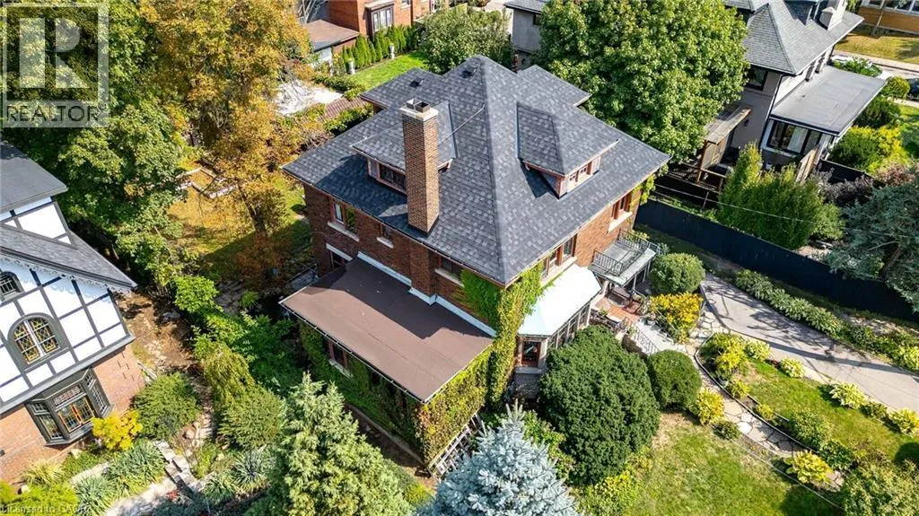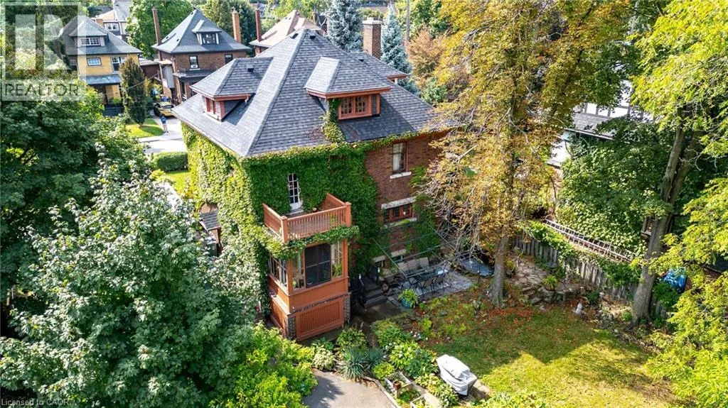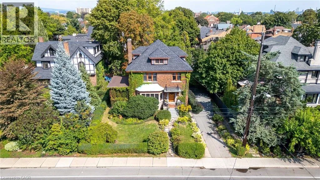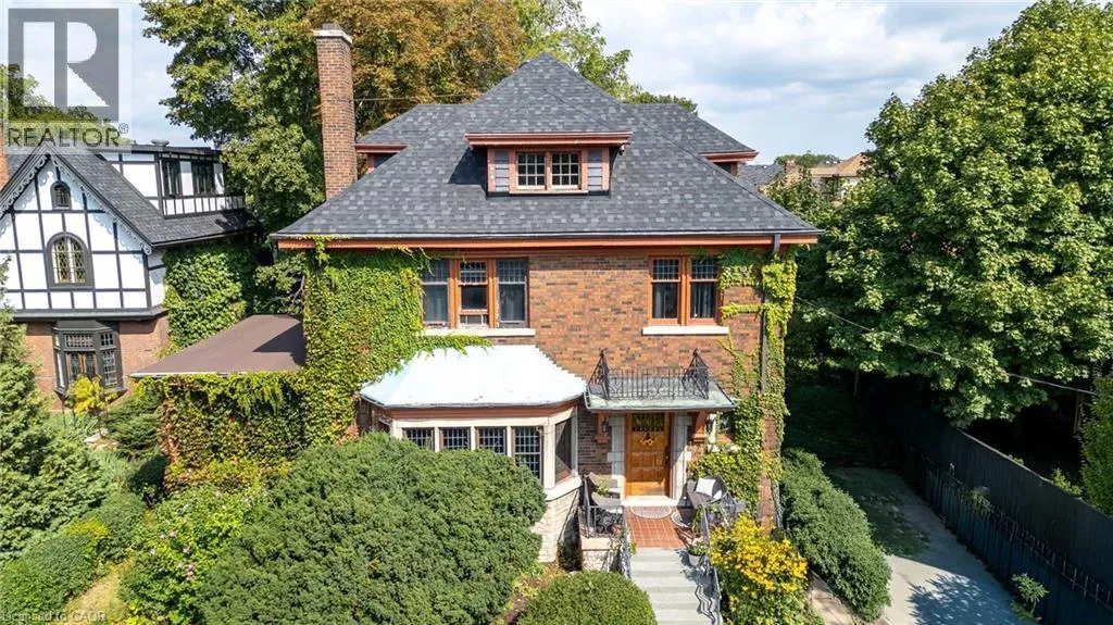 SHERMAN AVE S TO DELAWARE AVENUE Set among tree-lined streets this standout classic is more than a house â itâs a century home in one of Hamiltonâs most prestigious neighbourhoods, where original character and thoughtful preservation create a living piece of history. Built to last in 1931, this home retains its original charm and character, down to the original laundry chute! Step back in time into charming grand foyer that sets the tone for the heritage-rich home. Sweeping wood staircase with elegant iron rod spindles & stained glass windows make striking first impression. Enter formal living room with tons of natural light from the original leaded glass bay windows and be impressed with timeless marble wood burning fireplace, flowing through French double doors into a spacious dining room with original beamed ceiling & beautiful gumwood wainscoting. Kitchen opens into cozy sitting nook, while a charming solarium off the dining room adds to the homeâs character. Thoughtfully placed main floor bath sits off the foye. Walk up the grand staircase & take in the original wood trim and craftsmanship that carries through to a generous second-floor landing, spacious enough to feel like a room of its own, complete with two linen closets. From here, access a full washroom & four large bedrooms, including one with private balcony overlooking the backyard oasis. Crowning the home is a full-height third-floor attic, an expansive, light-filled space that once acted as a self-contained retreat. Below, the fully finished basement offers exceptional ceiling height & a separate entrance, ideal for extended family or future income potential. Home is set on a large, private lot, the beautifully landscaped grounds feature mature chestnut trees, peaceful pond, & long driveway with plenty of parking. Double garage, complements the homeâs timeless quality. With 54 original windows flooding the interiors with light & stunning escarpment views to enjoy, this exceptional property offers rare charm, scale & lasting appeal. (id:27476)