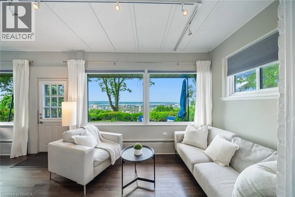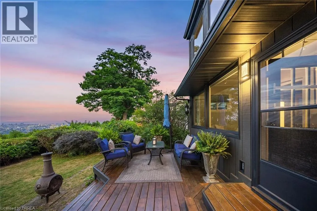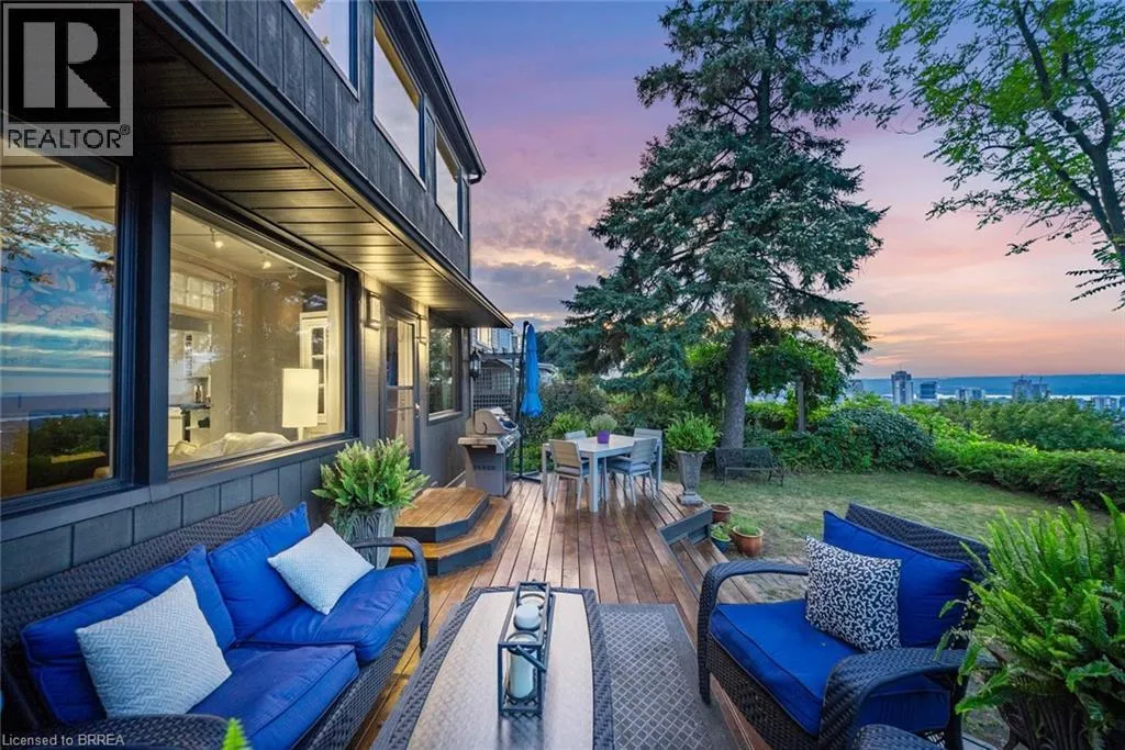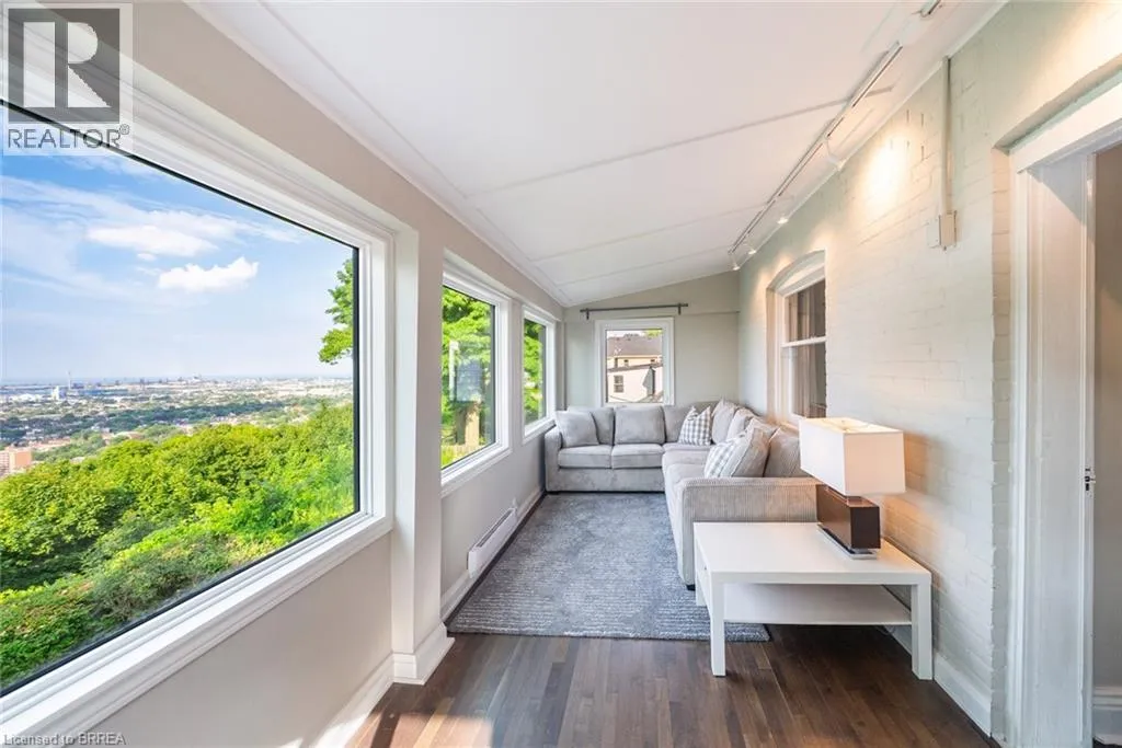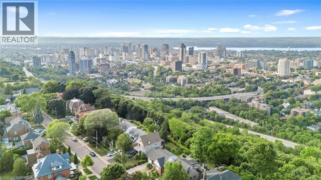 Concession to Belwood, Left onto Mountain Park If these walls could talk, theyâd have over 100 years of stories to tell. Perched on the edge of the Hamilton escarpment, this grand old soul has stood as a quiet witness to the unfolding of a cityâwatching the skyline stretch, the lights multiply, & Lake Ontario shimmer through every season. The views are nothing short of breathtaking, shifting in mood & colour with the time of day & weatherâsunrises that set the city aglow, misty mornings cloaked in fog, & glittering nights under the stars. Step inside & the magic continues. Ontario black walnut flooring runs underfoot in many principal rooms, offering warmth & elegance in equal measure. The main floor is rich with charm & function: a formal living room off the entry, a grand dining room made for conversation, & a peaceful sitting room/four-season sunroom at the back where the world seems to fall away in favour of sky & cityscape. The kitchen is timeless with crisp white cabinetry, & a thoughtfully placed 3pc bathroom with walk-in tiled shower adds flexibility. Upstairs, the front bedroom is a sanctuary of light, with bay window framing the view & double closets. Two additional bedrooms serve as a home office & workout space, though the possibilities are endless. The upper-level bathroom is a statementâfeminine, luxurious, with white chandeliers, soaker tub, & double vanity sinks that speak to slow mornings & self-care. Then thereâs the third floor: a true bonus level filled with creativity & light. The rear roomâwith its commanding viewâis now a music studio, but could be a Primary Retreat, teen hangout, or artistâs space. A full bath with tub/shower combo & a kitchenette complete this level, ideal for multi-generational living or long-term guests. Outside, the street is quiet & inviting, a blend of historic charm & tasteful new builds. But make no mistakeâthis home is unlike any other. Itâs not just a place to live, itâs a place that has lived. And now, itâs ready for its next chapter. Will it be yours? (id:27476)