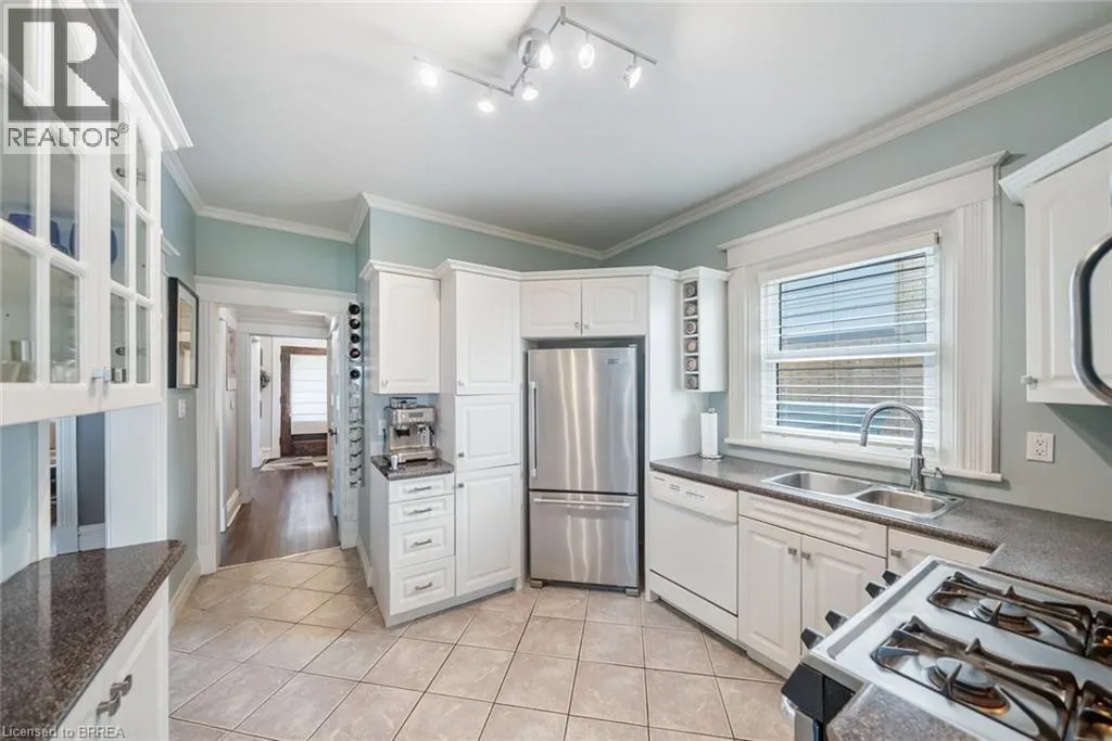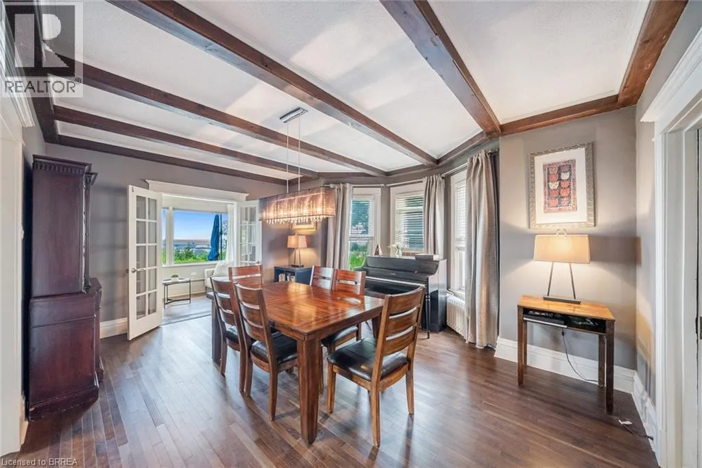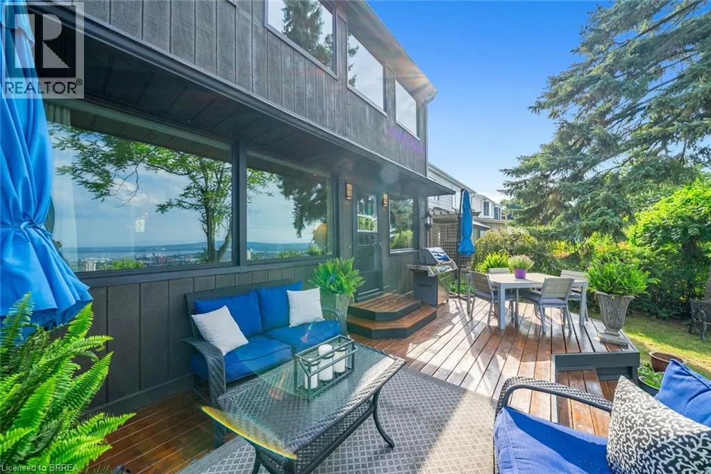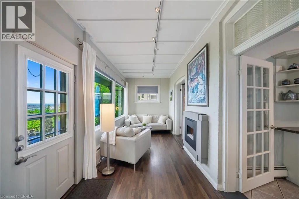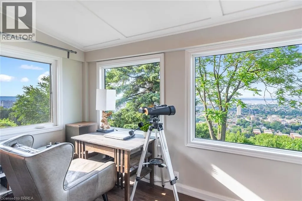 Concession to Belwood, Left onto Mountain Park If these walls could talk, theyâd have over 100 years of stories to tell. Perched on the edge of the Hamilton escarpment, this grand old soul has stood as a quiet witness to the unfolding of a cityâwatching the skyline stretch, the lights multiply, & Lake Ontario shimmer through every season. The views are nothing short of breathtaking, shifting in mood & colour with the time of day & weatherâsunrises that set the city aglow, misty mornings cloaked in fog, & glittering nights under the stars. Step inside & the magic continues. Ontario black walnut flooring runs underfoot in many principal rooms, offering warmth & elegance in equal measure. The main floor is rich with charm & function: a formal living room off the entry, a grand dining room made for conversation, & a peaceful sitting room/four-season sunroom at the back where the world seems to fall away in favour of sky & cityscape. The kitchen is timeless with crisp white cabinetry, & a thoughtfully placed 3pc bathroom with walk-in tiled shower adds flexibility. Upstairs, the front bedroom is a sanctuary of light, with bay window framing the view & double closets. Two additional bedrooms serve as a home office & workout space, though the possibilities are endless. The upper-level bathroom is a statementâfeminine, luxurious, with white chandeliers, soaker tub, & double vanity sinks that speak to slow mornings & self-care. Then thereâs the third floor: a true bonus level filled with creativity & light. The rear roomâwith its commanding viewâis now a music studio, but could be a Primary Retreat, teen hangout, or artistâs space. A full bath with tub/shower combo & a kitchenette complete this level, ideal for multi-generational living or long-term guests. Outside, the street is quiet & inviting, a blend of historic charm & tasteful new builds. But make no mistakeâthis home is unlike any other. Itâs not just a place to live, itâs a place that has lived. And now, itâs ready for its next chapter. Will it be yours? (id:27476)